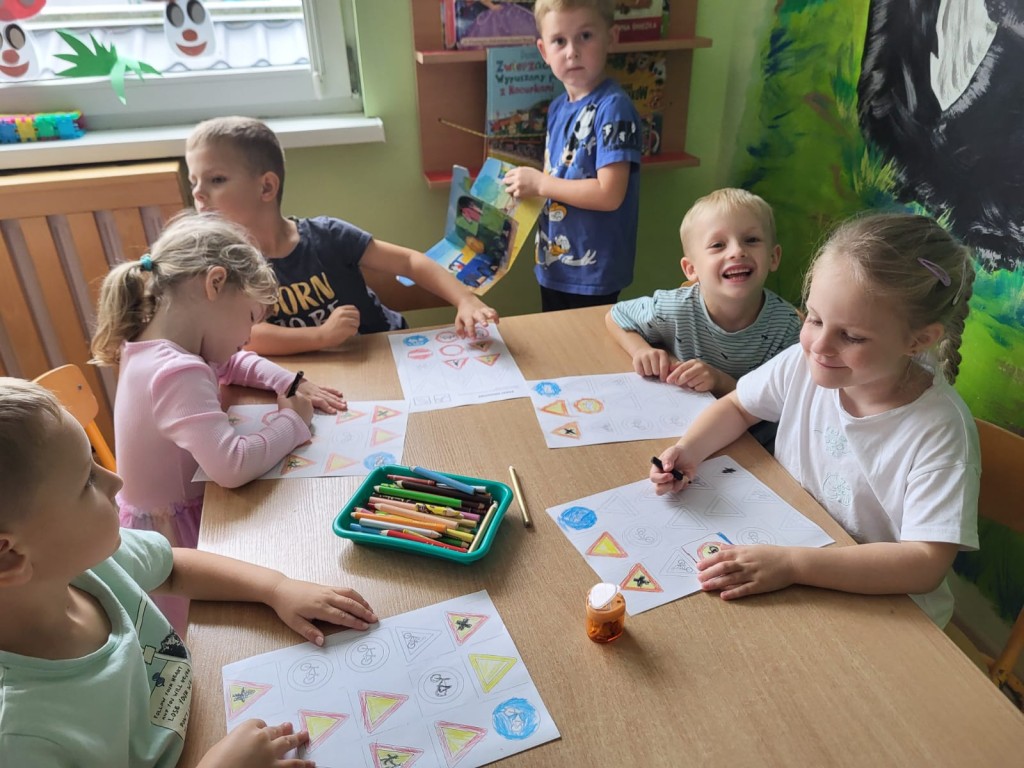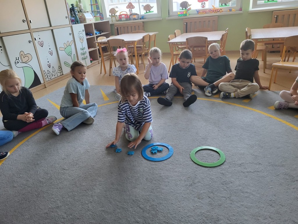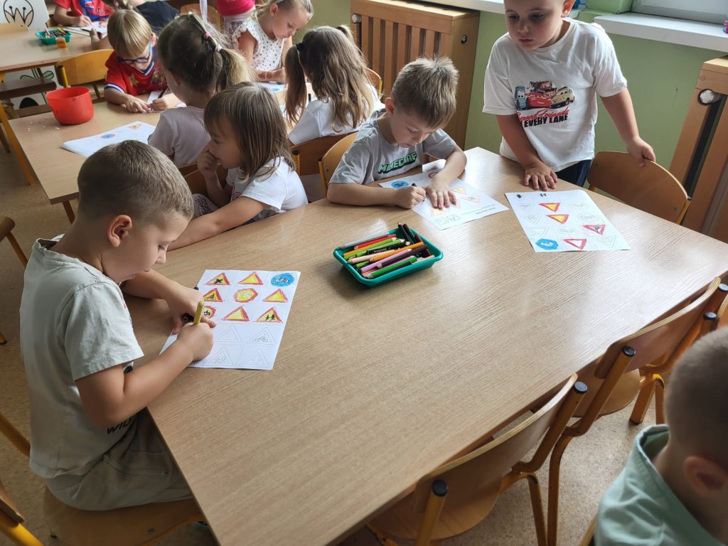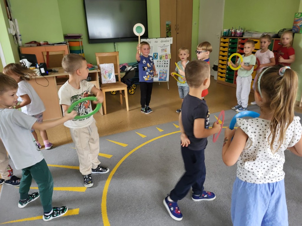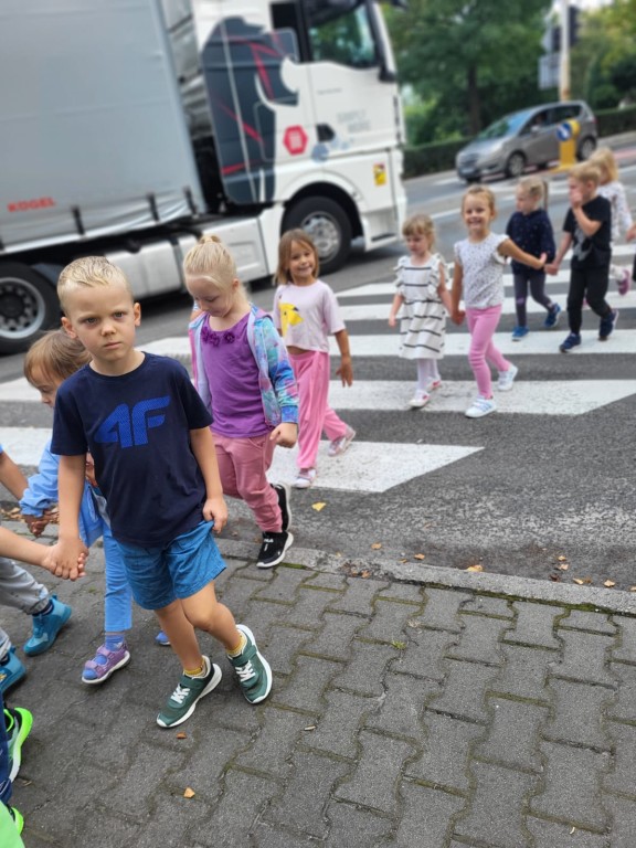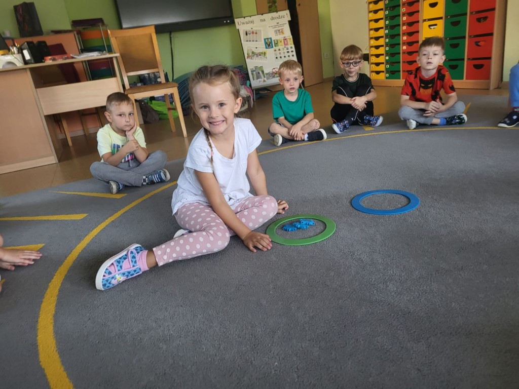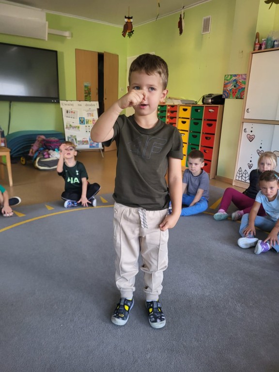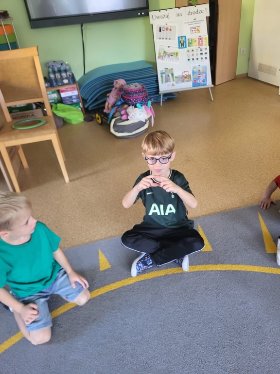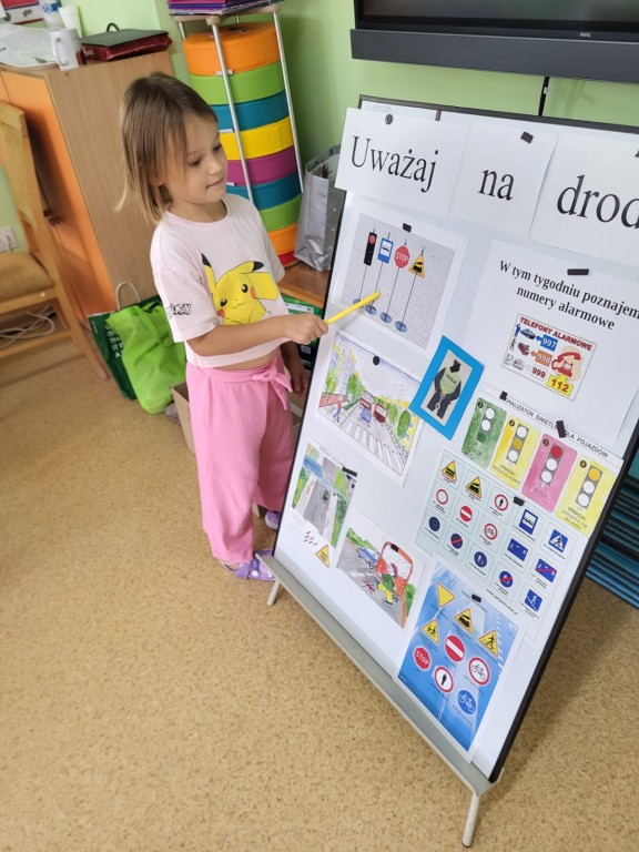 W minionym tygodniu dzieci poznawały zasady ruchu drogowego. Będąc na spacerze uczyły się, jak bezpiecznie poruszać się po drodze, wiedząc że zawsze przechodzimy przez jezdnię po pasach lub czekamy na zielone światło, a także uważamy na samochody, rowery i hulajnogi. Słoneczka utrwalały wiedzę poprzez zabawy ruchowe, historyjki obrazkowe i krótkie ćwiczenia praktyczne. Wykonały pracę plastyczną- ,,Sygnalizator świetlny”, kolorowały znaki drogowe. Poznawały cyfrę 0 ,wykorzystując części ciała oraz literkę O.
