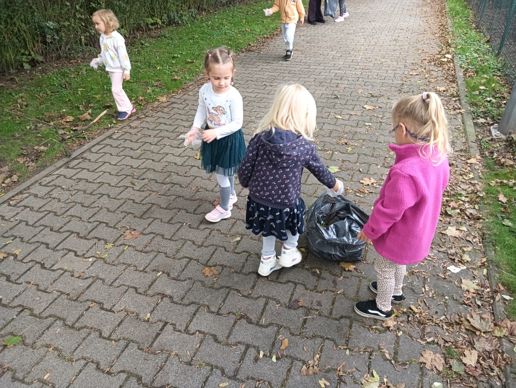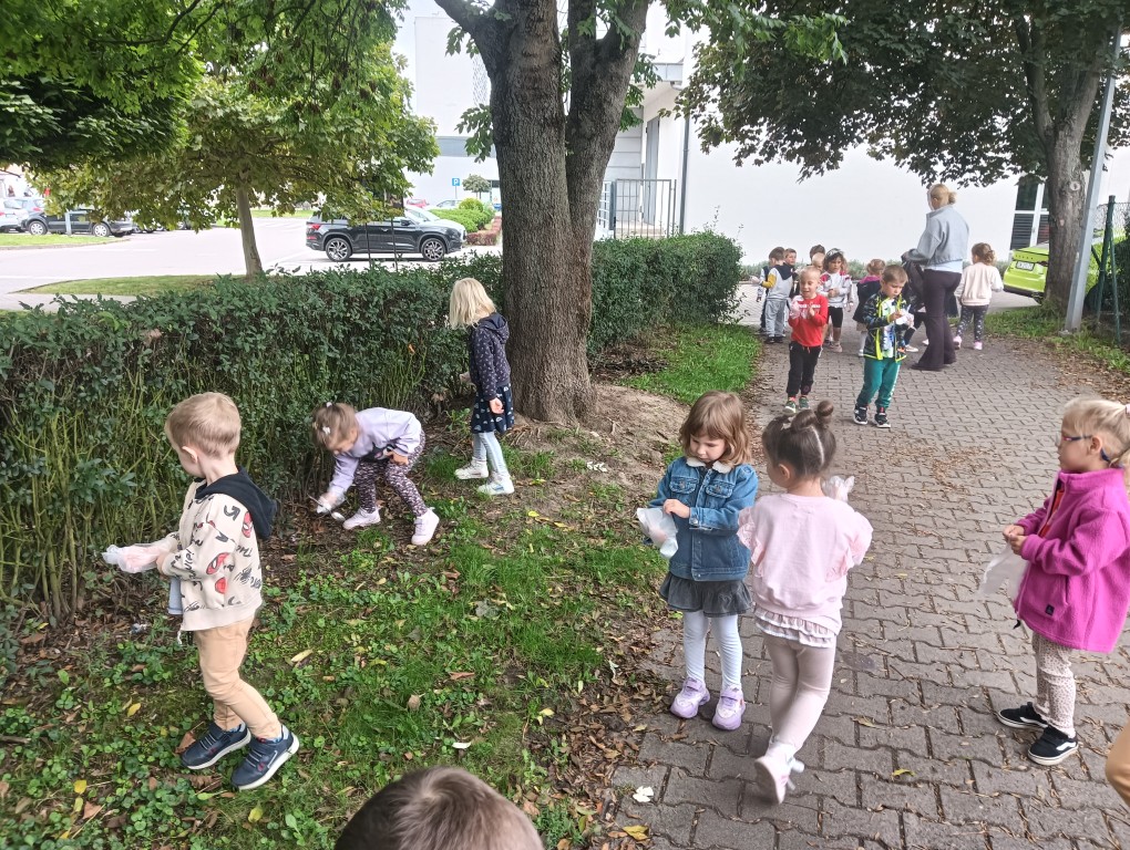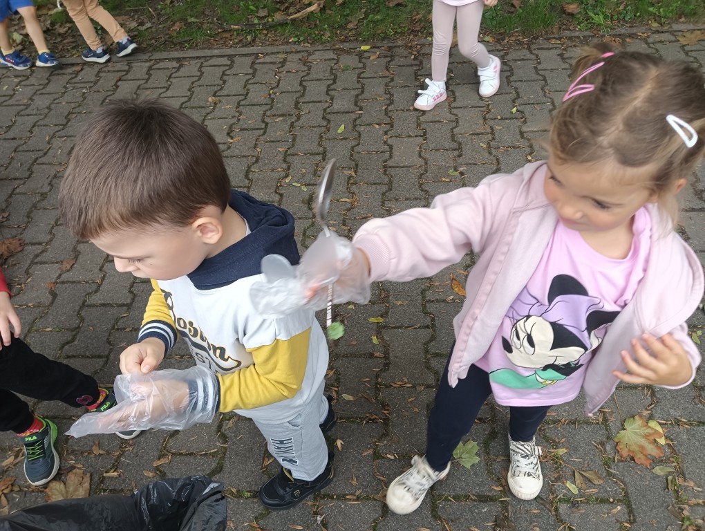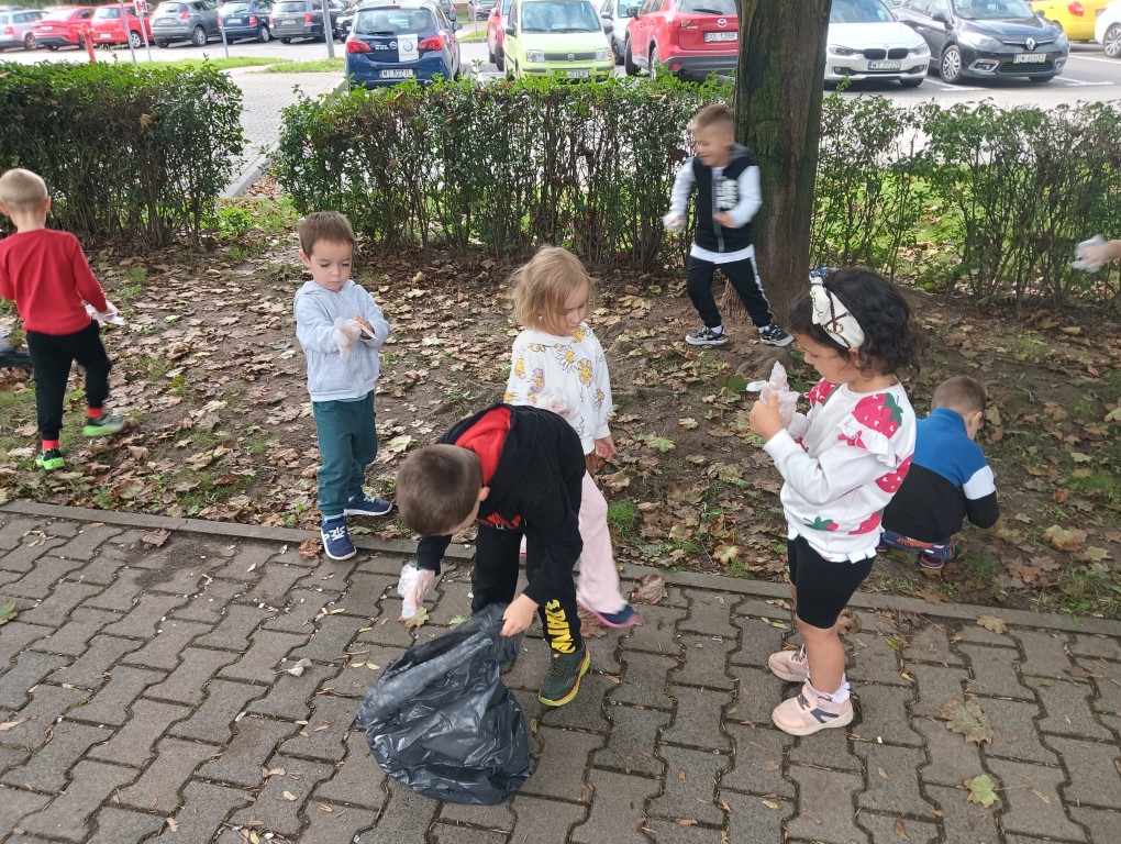 W minionym tygodniu Pszczółki zdobywały wiadomości związane z zasadami ruchu drogowego. Omawialiśmy zasady bezpiecznego i właściwego poruszania się pieszych po ulicy i chodniku oraz zagrożenia, jakie mogą nas spotkać na jezdni. Dzieci nauczyły się znaczenia kolorów sygnalizacji świetlnej, poznały podstawowe znaki drogowe i sposób prawidłowego przechodzenia przez jezdnię. Następnie swoje zdobyte wiadomości mogły sprawdzić w zabawie i podczas wycieczki na skrzyżowanie. W poniedziałek obchodziliśmy Międzynarodowy Dzień Kropki. Był to dzień odwagi i zabawy. W naszej grupie odbyła się krótka pogadanka na temat książki The Dot, którą napisał Peter Reynolds (opowiada ona o kropce, która zmieniła świat małej Vashti i dziewczynka uwierzyła w siebie). W piątek zaopatrzeni w rękawiczki i worki na śmieci wybraliśmy się sprzątać okolicę wokół naszego przedszkola. Coroczna akcja Sprzątania Świata jest świetną okazją, aby uświadomić dzieciom jak wiele dobrego człowiek może zrobić dla środowiska poprzez właściwe zachowanie.