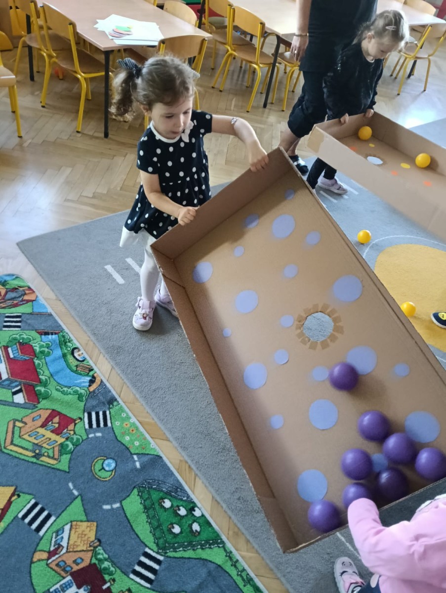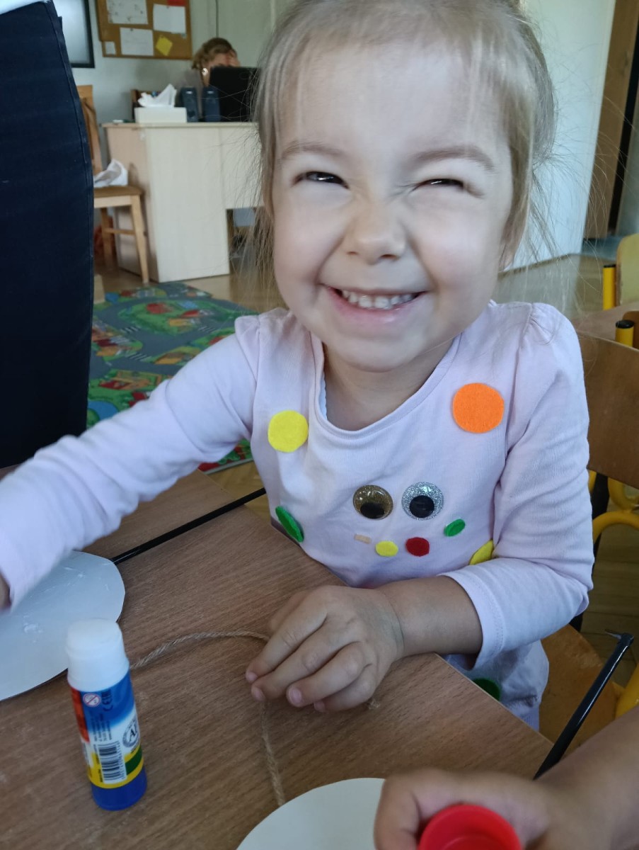 Już od rana dzieci przyszły ubrane „w kropeczki” co wprowadziło nas w wyjątkowy nastrój i pobudziło wyobraźnię. Dzieci bawiły się przy tematycznych piosenkach, wykonały kolorowe kropeczki a także uczestniczyły w wielu wesołych zabawach.