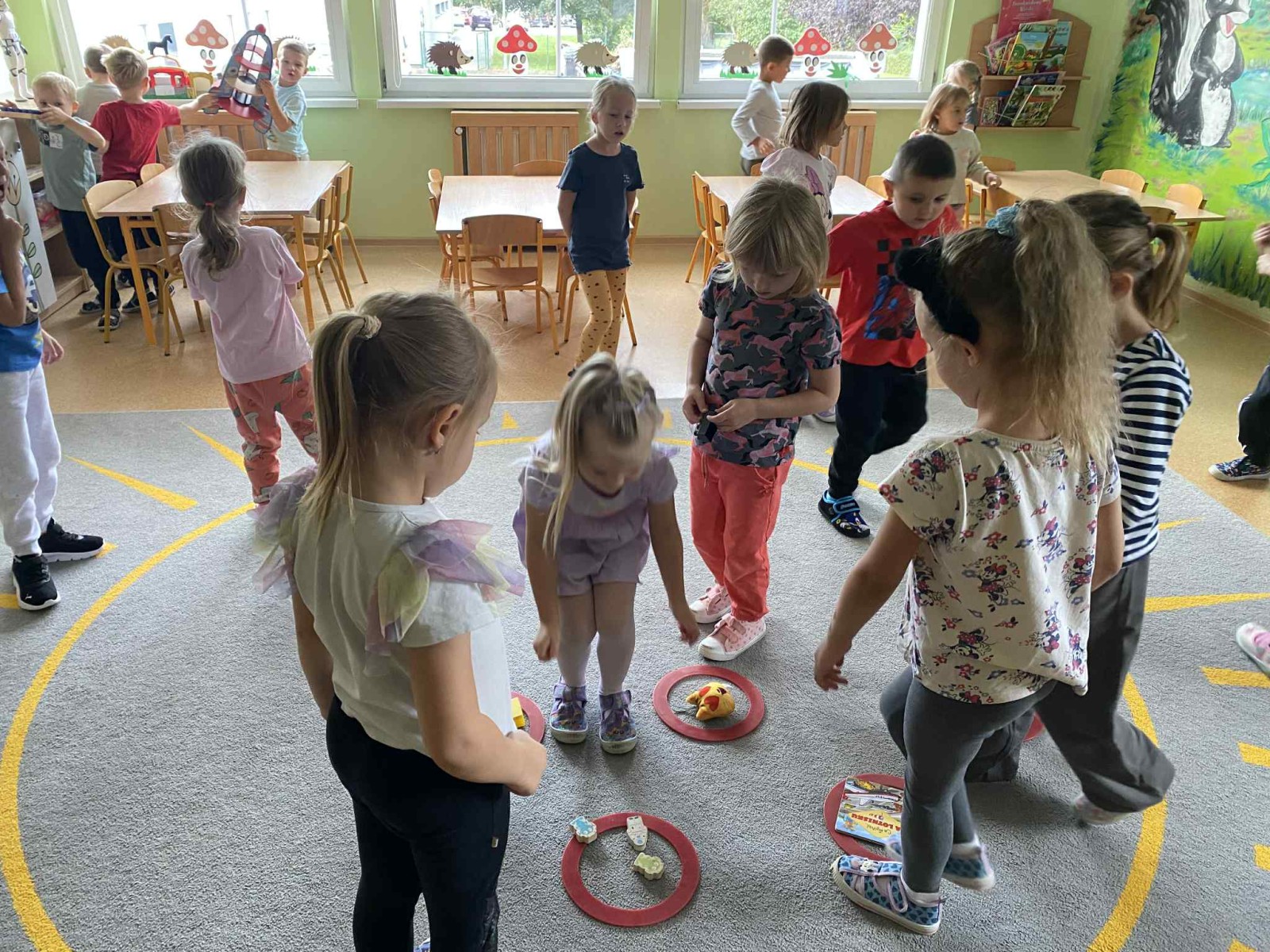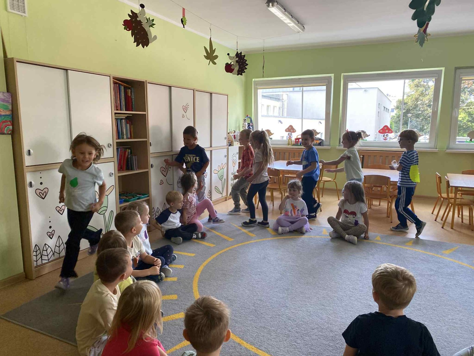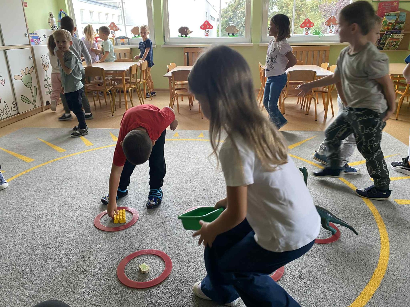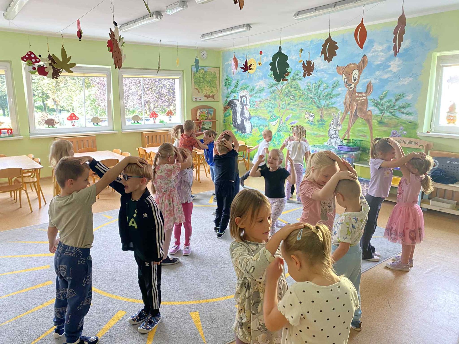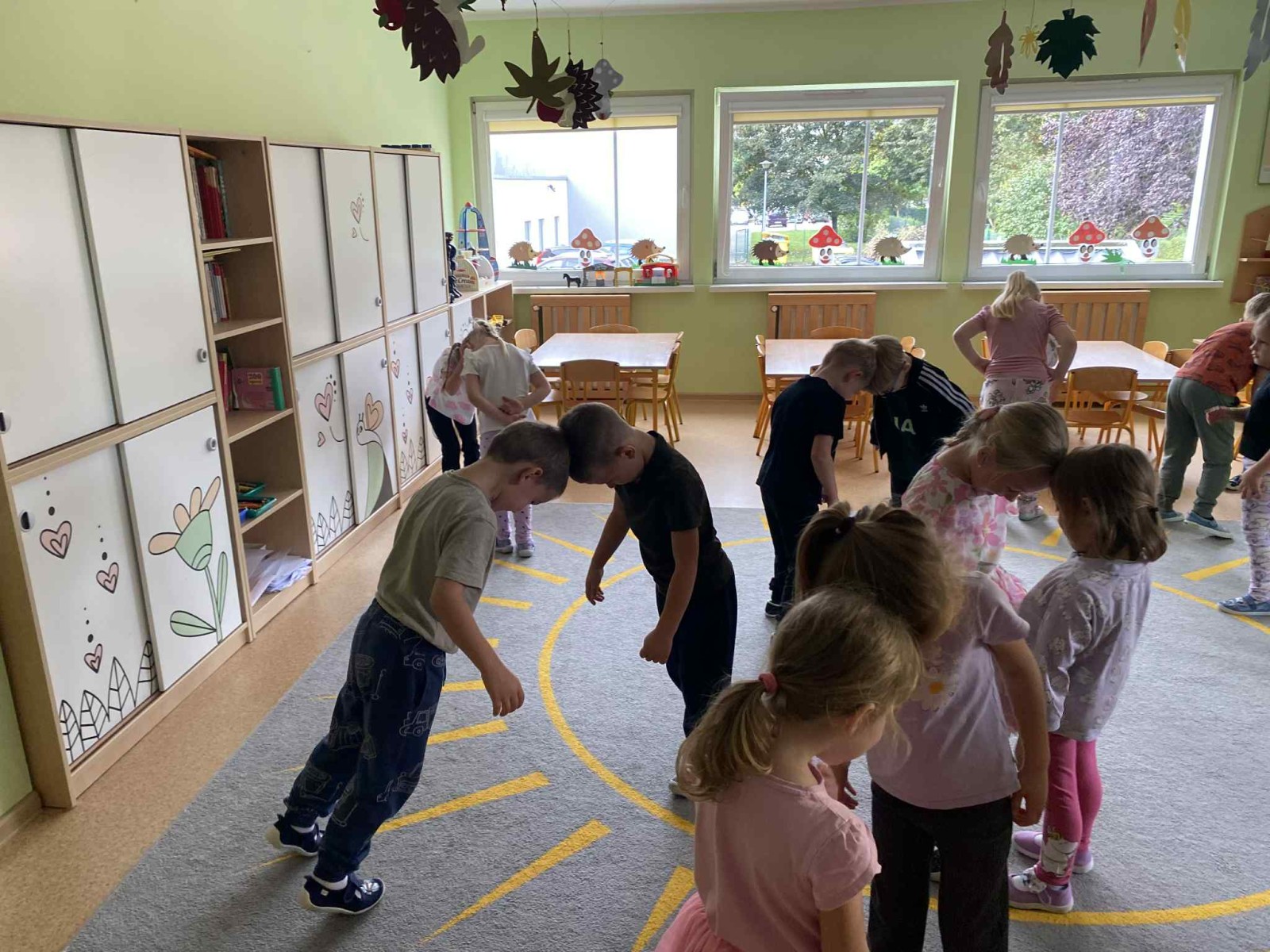 W minionym tygodniu Słoneczka uczestniczyły w wielu ciekawych i rozwijających zajęciach. Rozpoczęliśmy od zabaw dydaktycznych, podczas których przedszkolaki uczyły się rozpoznawać kolory oraz części ciała, a także przypominały sobie zasady higieny. Nie zabrakło również radosnych zabaw ruchowych przy muzyce. Podczas rozmów o jesieni dzieci poznawały barwy charakterystyczne dla tej pory roku. W czasie spaceru do parku zwracały uwagę na zapachy, dźwięki i kolory otaczającej przyrody. Nazbierane liście podczas spaceru posłużyły nam w przedszkolu do twórczych działań plastycznych. Był to tydzień pełen odkryć, doświadczeń i świetnej zabawy!