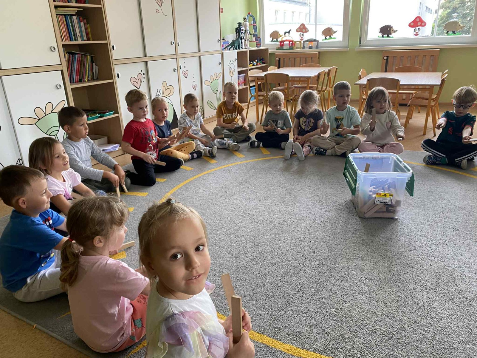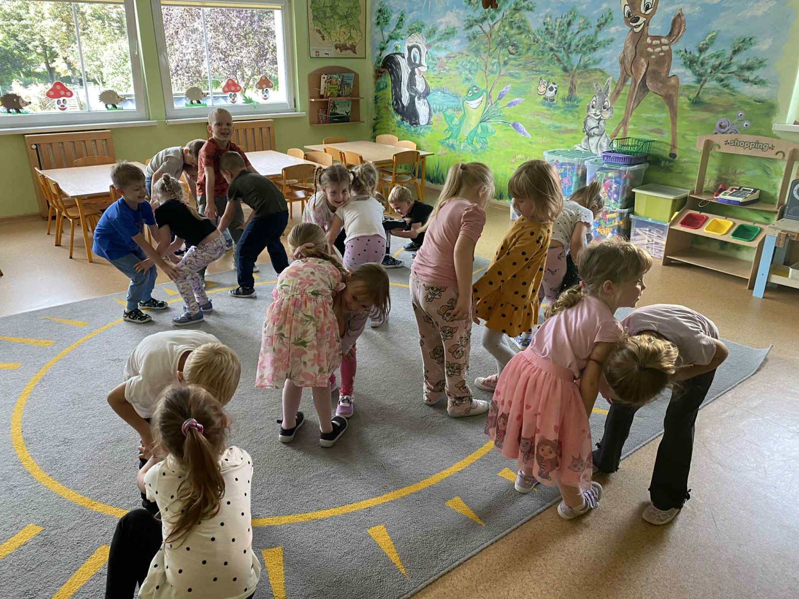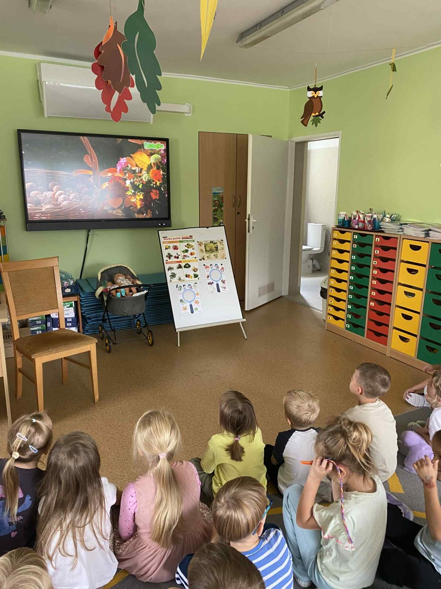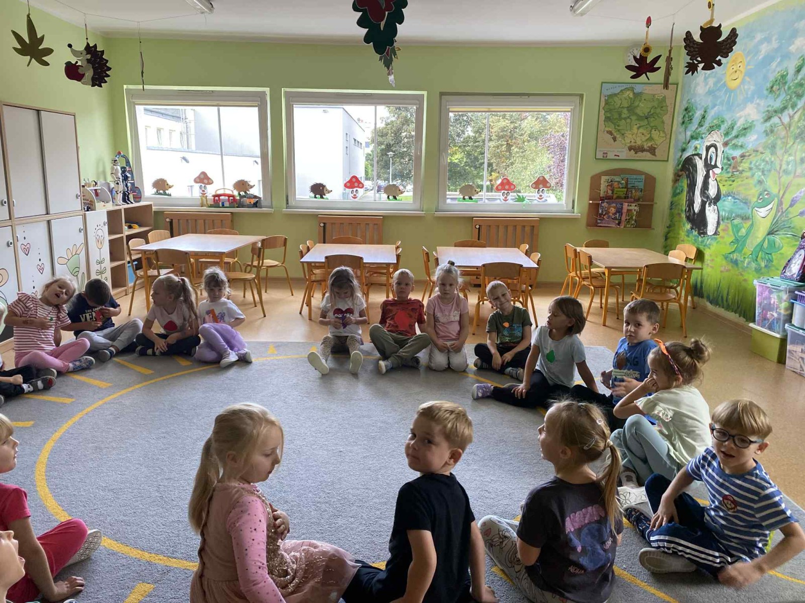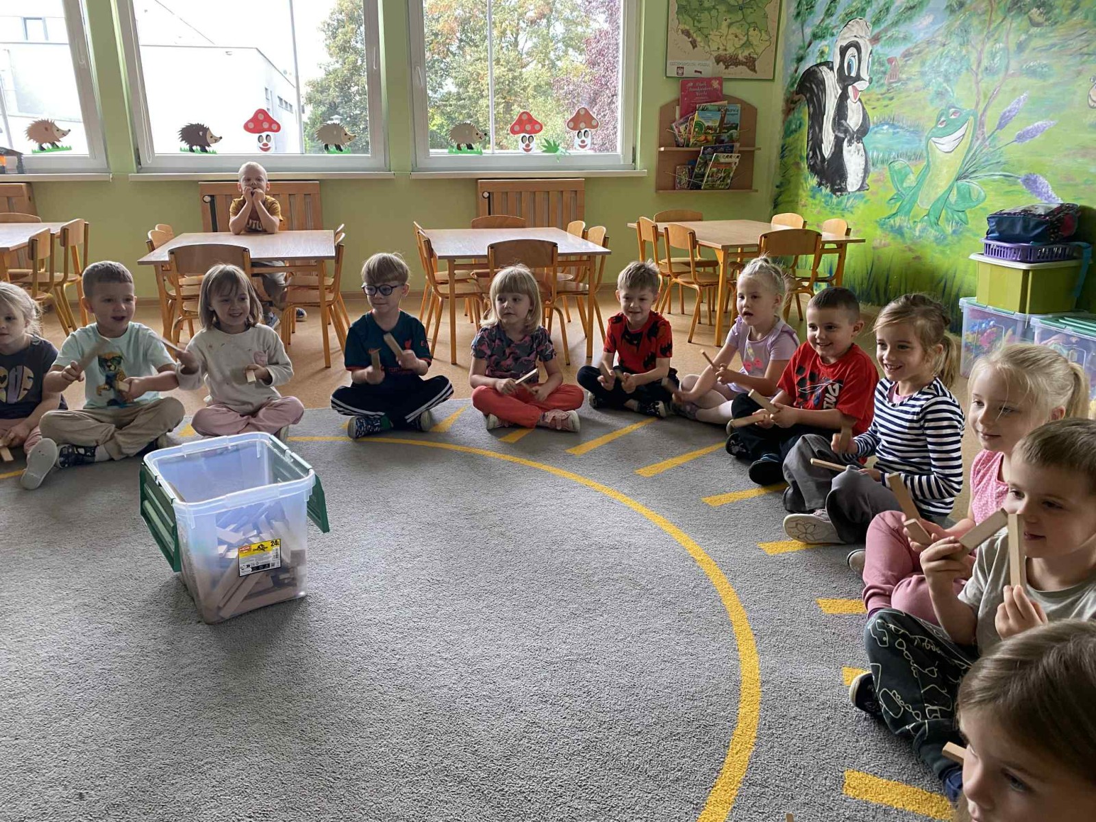 W minionym tygodniu Słoneczka uczestniczyły w wielu ciekawych i rozwijających zajęciach. Rozpoczęliśmy od zabaw dydaktycznych, podczas których przedszkolaki uczyły się rozpoznawać kolory oraz części ciała, a także przypominały sobie zasady higieny. Nie zabrakło również radosnych zabaw ruchowych przy muzyce. Podczas rozmów o jesieni dzieci poznawały barwy charakterystyczne dla tej pory roku. W czasie spaceru do parku zwracały uwagę na zapachy, dźwięki i kolory otaczającej przyrody. Nazbierane liście podczas spaceru posłużyły nam w przedszkolu do twórczych działań plastycznych. Był to tydzień pełen odkryć, doświadczeń i świetnej zabawy!
