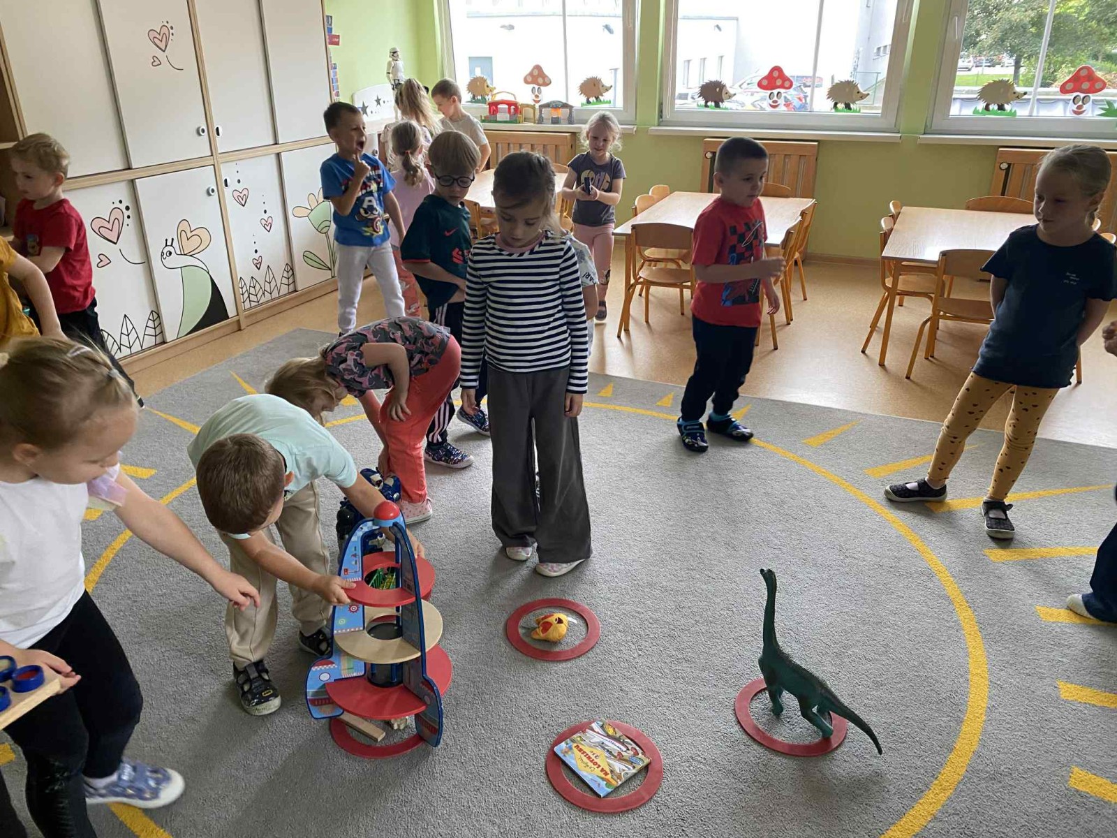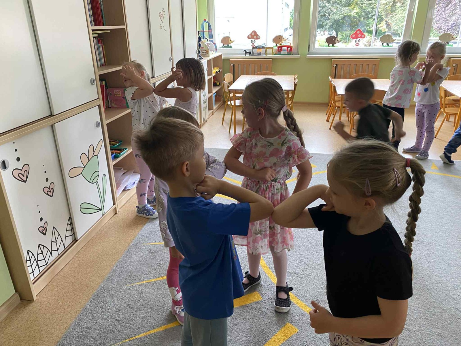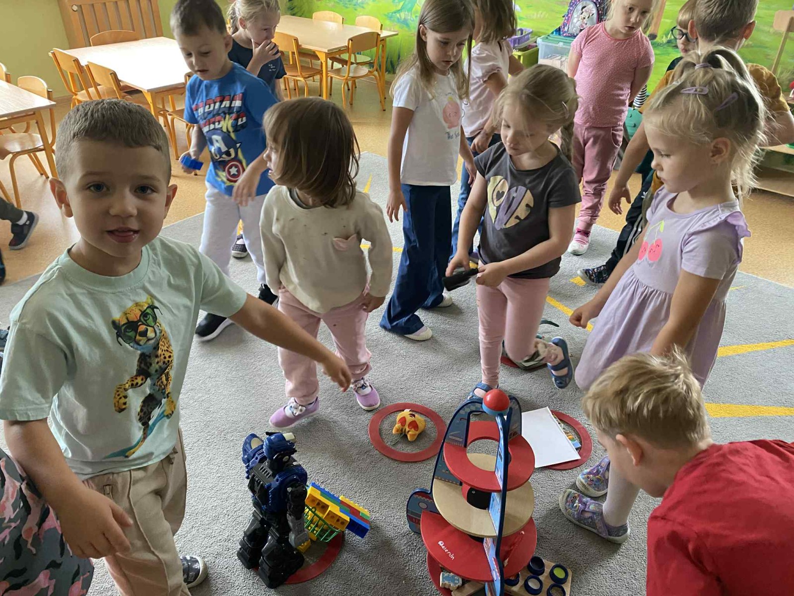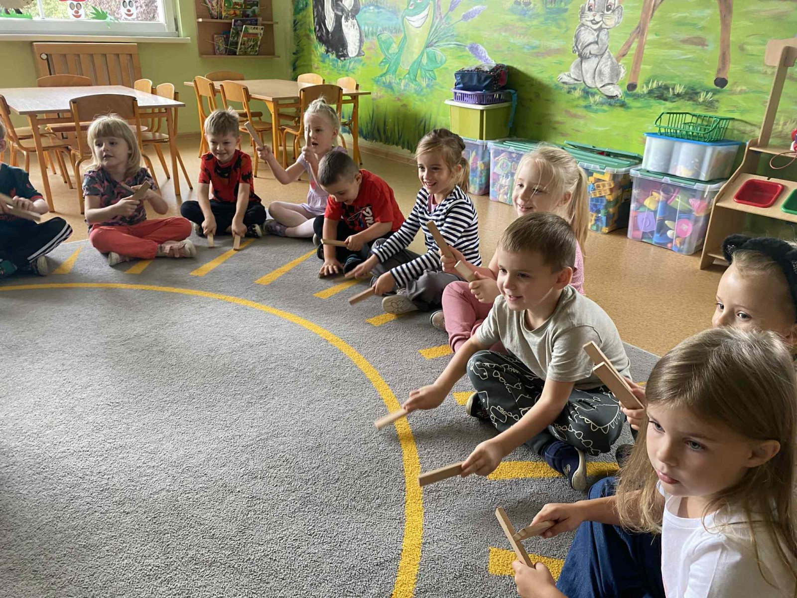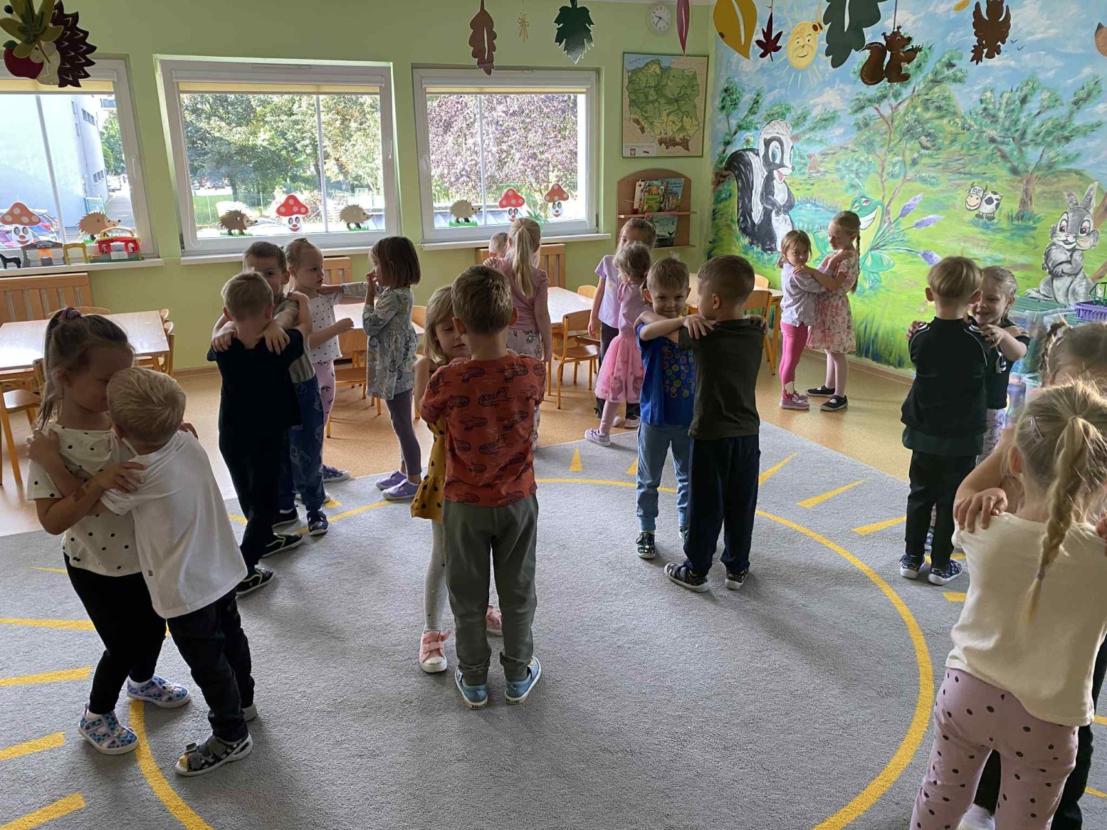 W minionym tygodniu Słoneczka uczestniczyły w wielu ciekawych i rozwijających zajęciach. Rozpoczęliśmy od zabaw dydaktycznych, podczas których przedszkolaki uczyły się rozpoznawać kolory oraz części ciała, a także przypominały sobie zasady higieny. Nie zabrakło również radosnych zabaw ruchowych przy muzyce. Podczas rozmów o jesieni dzieci poznawały barwy charakterystyczne dla tej pory roku. W czasie spaceru do parku zwracały uwagę na zapachy, dźwięki i kolory otaczającej przyrody. Nazbierane liście podczas spaceru posłużyły nam w przedszkolu do twórczych działań plastycznych. Był to tydzień pełen odkryć, doświadczeń i świetnej zabawy!