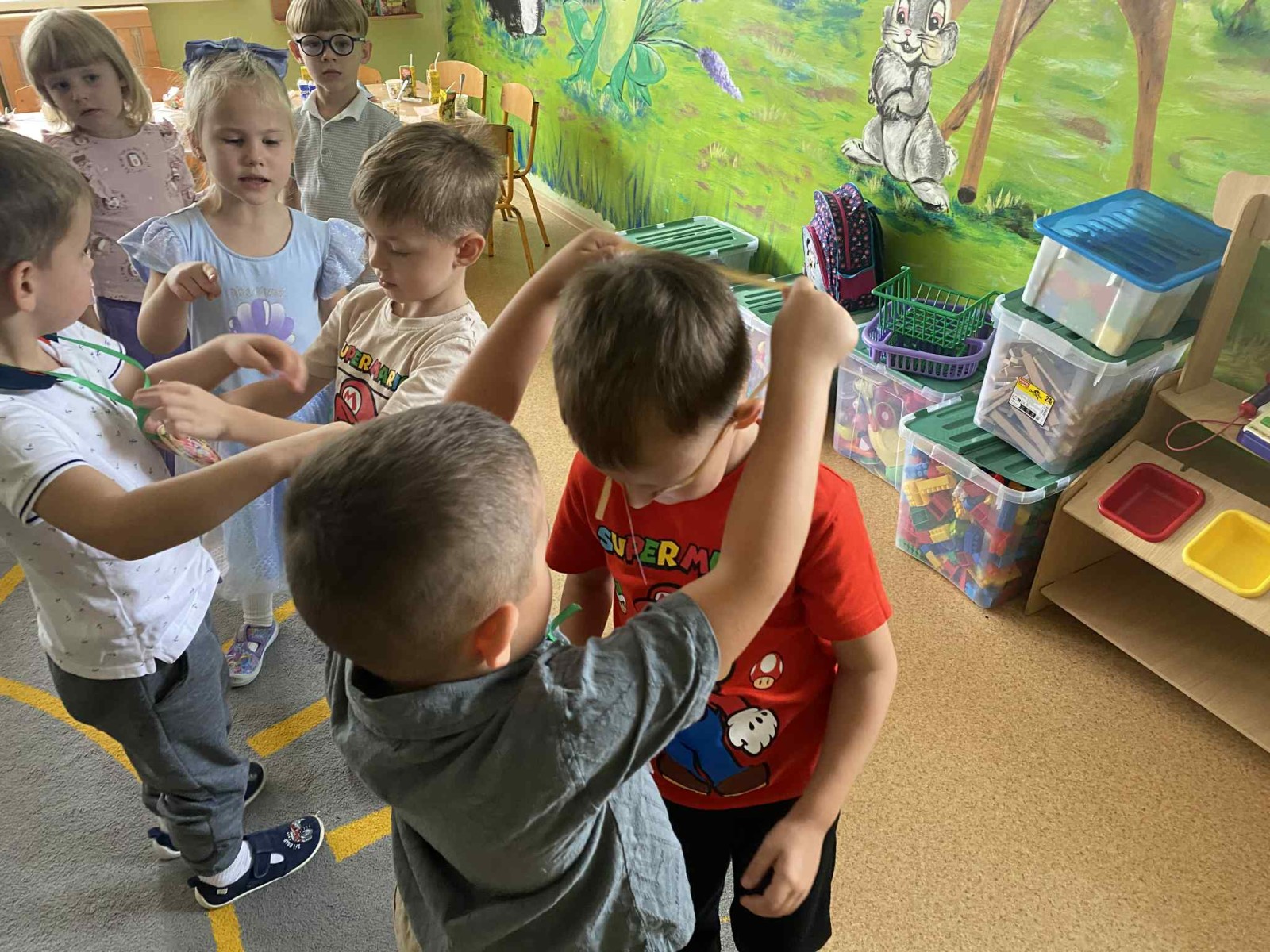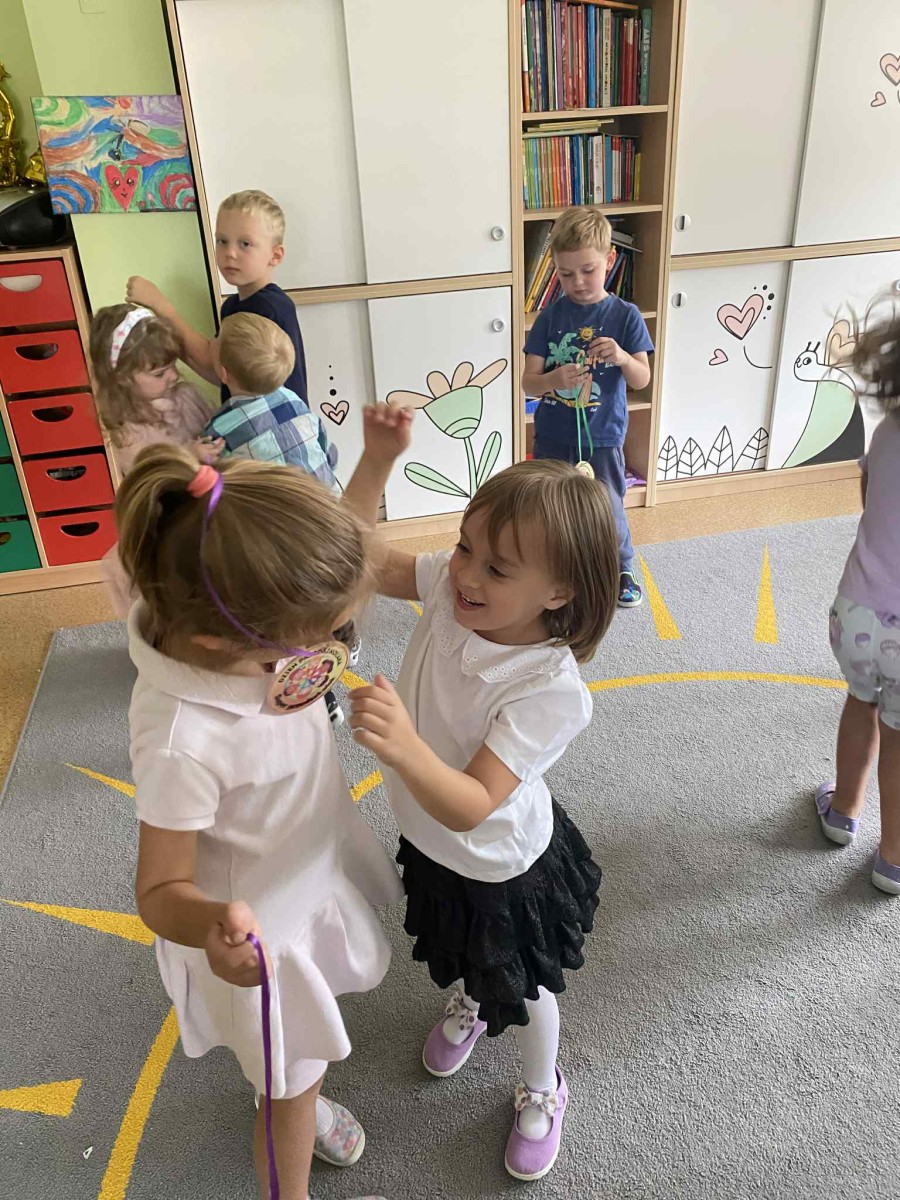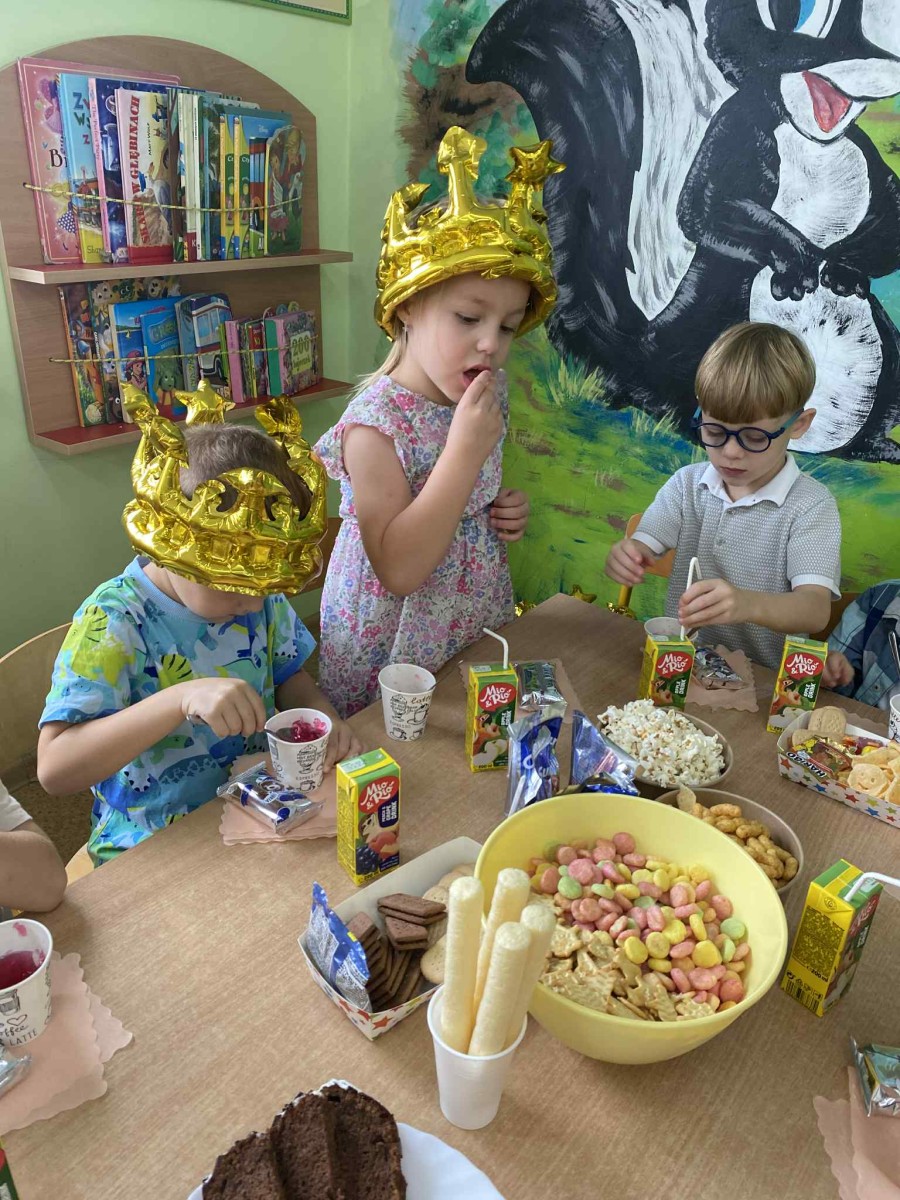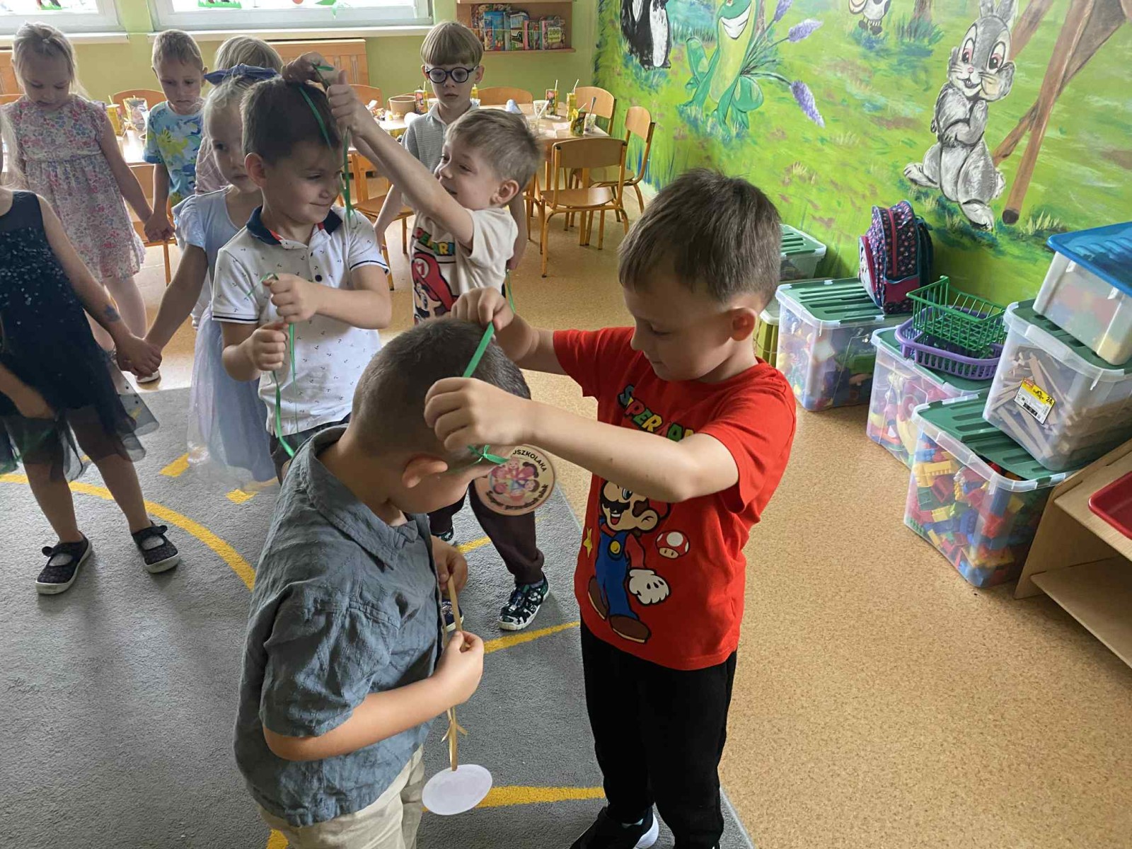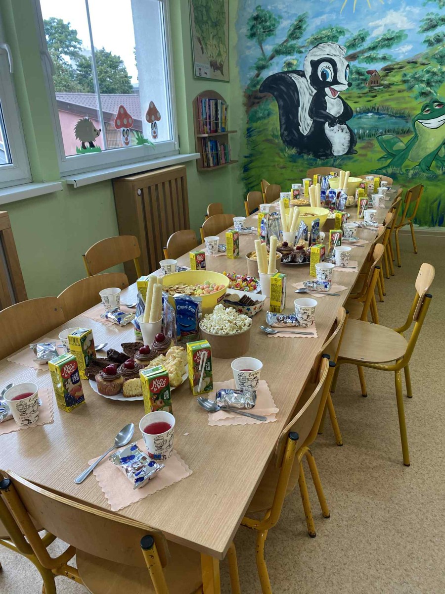 Dzień Przedszkolaka w grupie Słoneczka. Od samego rana dzieci świętowały ten wspaniały dzień. Na samym początku czekało królewskie śniadanie, a każdy przedszkolak otrzymał koronę, by poczuć się jak prawdziwy król i królowa. Nie zabrakło oczywiście tańców przy ulubionych piosenkach, wspólnych gier i zabaw oraz słodkiego poczęstunku. Atmosfera była radosna, pełna śmiechu i dobrej zabawy. Na zakończenie tego niezwykłego dnia każde dziecko zabrało do domu pamiątkowy medal Super Przedszkolaka, koronę oraz balon. Serdecznie dziękujemy Rodzicom za ogromny wkład i zaangażowanie w przygotowanie tej uroczystości – za pomoc, przyniesione smakołyki, ogromny wkład w ten wyjątkowy dzień, za chęć upieczenia ciast i wspólne stworzenie tak wspaniałej atmosfery. Dzięki Wam ten dzień na długo pozostanie w pamięci dzieci!