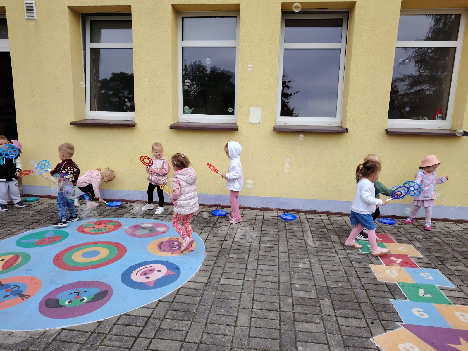 20 września przedszkolaki obchodziły swoje święto. Dla trzylatków był to dzień pełen uśmiechu, ruchu i niespodzianek. Dzieci z ogromnym entuzjazmem brały udział w zabawach z kolorową chustą animacyjną, pokonywały tor przeszkód, a także z zachwytem puszczały bańki mydlane. Radość, śmiech i wspólna zabawa towarzyszyły im przez cały dzień. Na zakończenie każdy przedszkolak otrzymał drobny upominek, niespodzianka sprawiła dzieciom wiele radości. To był wyjątkowy dzień, pełen pozytywnych emocji i niezapomnianych chwil.