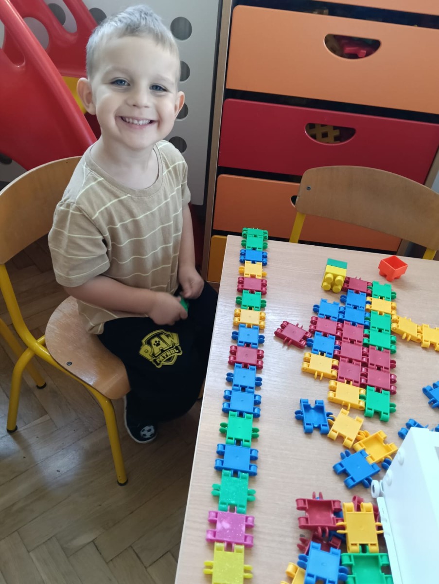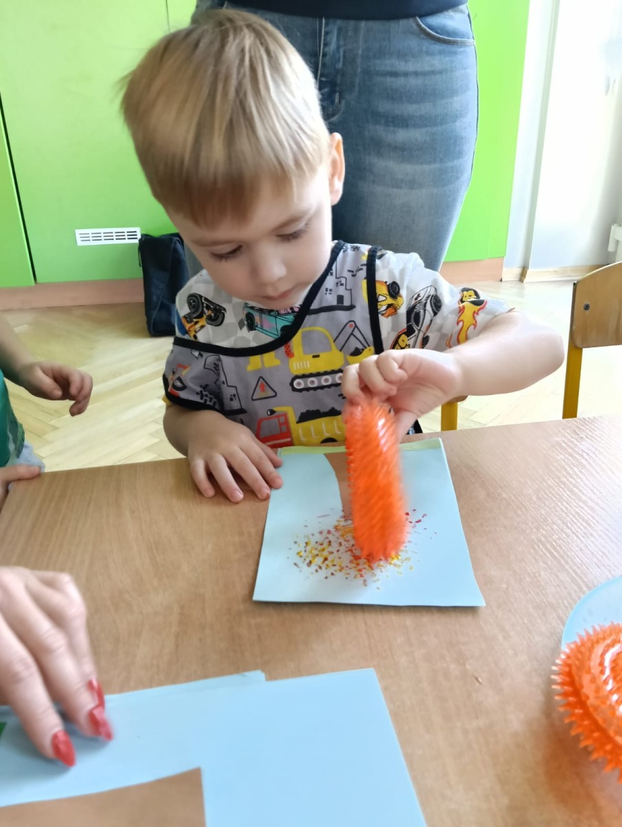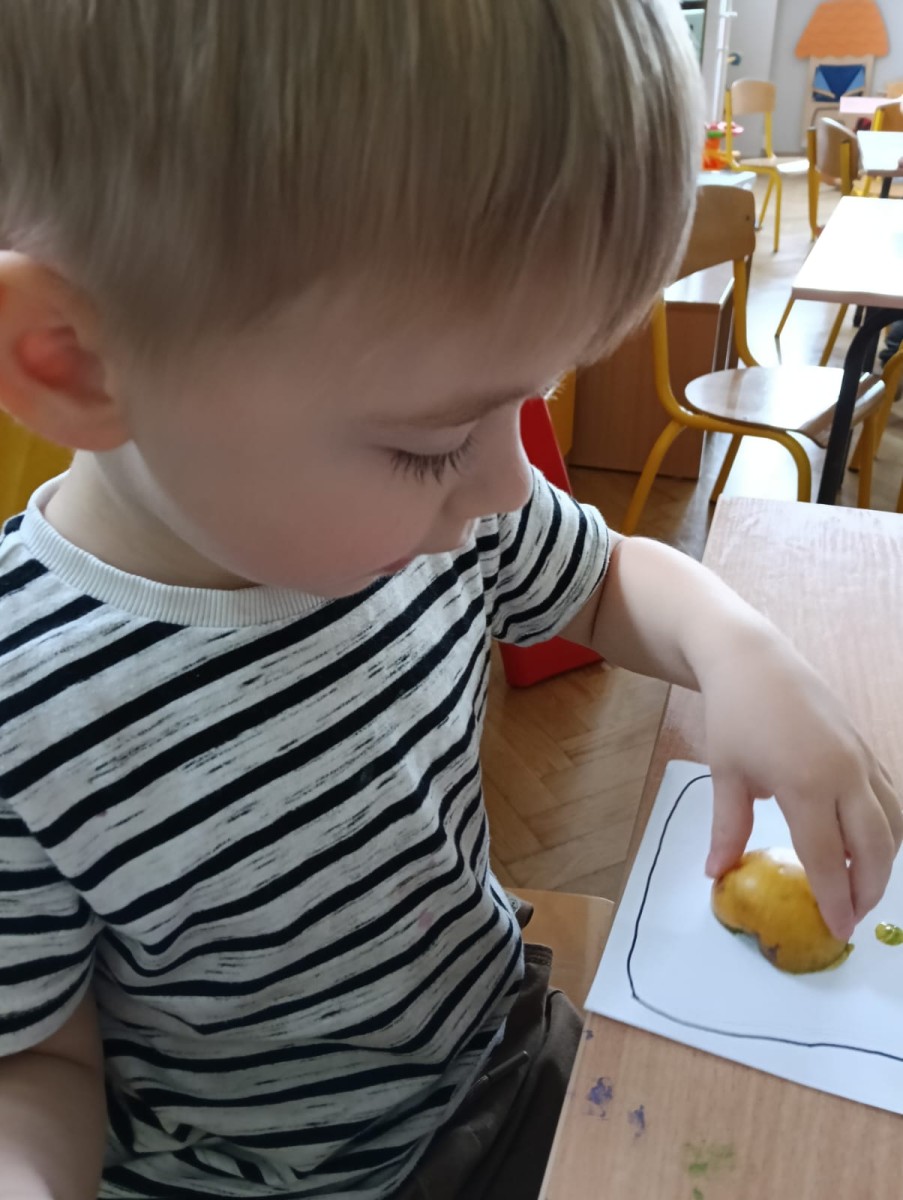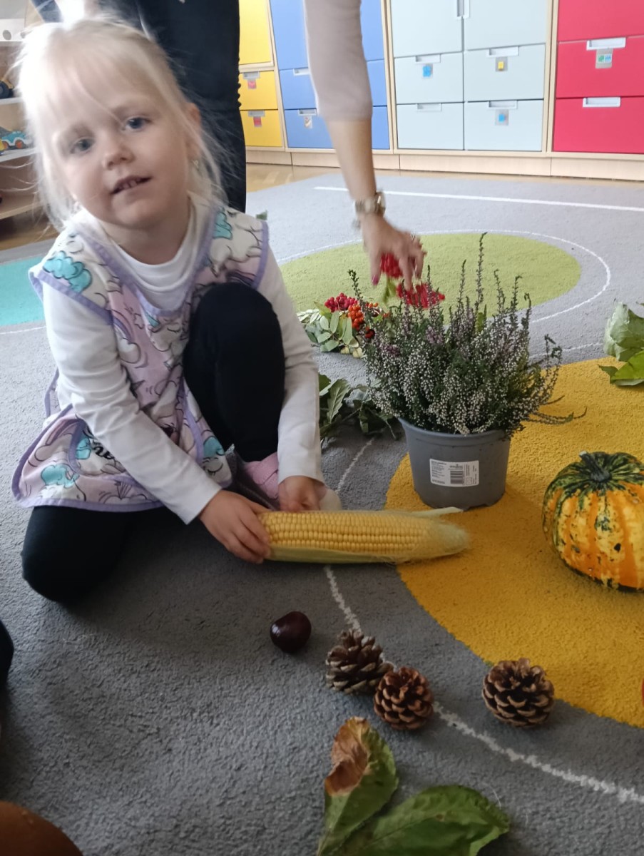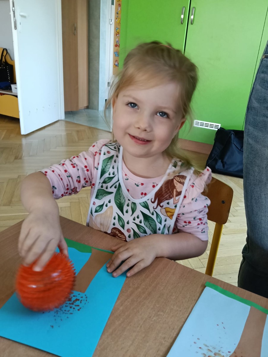 Nasze najmłodsze przedszkolaki ucieszyły się z nadejścia jesieni oraz z darów jakie przyniosła. Krasnale uczestniczyły w grze terenowej Zadania Pani Jesieni, a w czasie spacerów zbierały kasztany. Te jesienne skarby posłużyły nam w zabawach kreatywnych i matematycznych. Jesień to także wiele możliwości na pracę twórczą z wykorzystaniem materiału przyrodniczego, na przykład wykorzystanie owoców jako pieczątki. Ta aktywność szczególnie spodobała się dzieciom . W oststnich dniach obchodziliśmy także Dzień Chłopaka. Rodzice przygotowali dla dzieci pyszne babeczki i wspaniałe upominki dla naszych małych kawalerów, a dziewczynki odśpiewały sto lat na cześć chłopców.