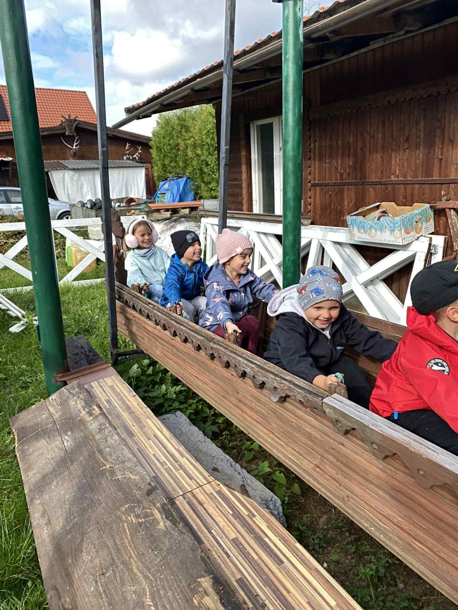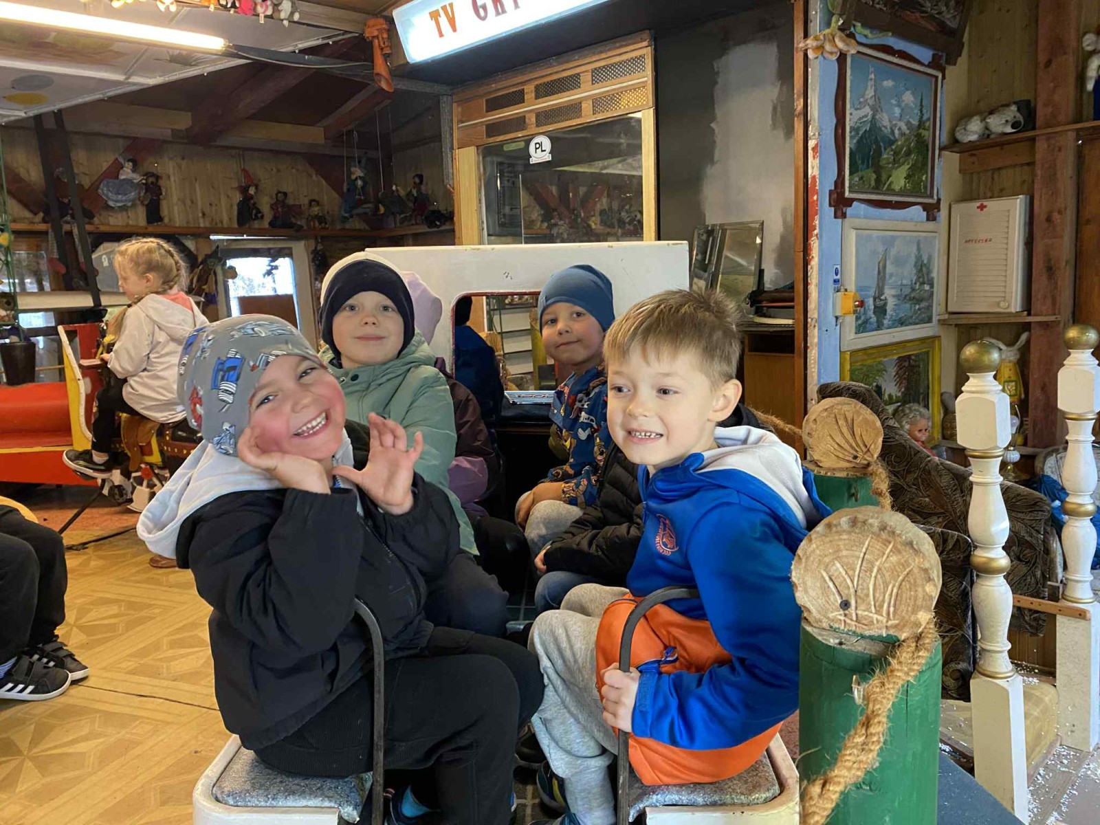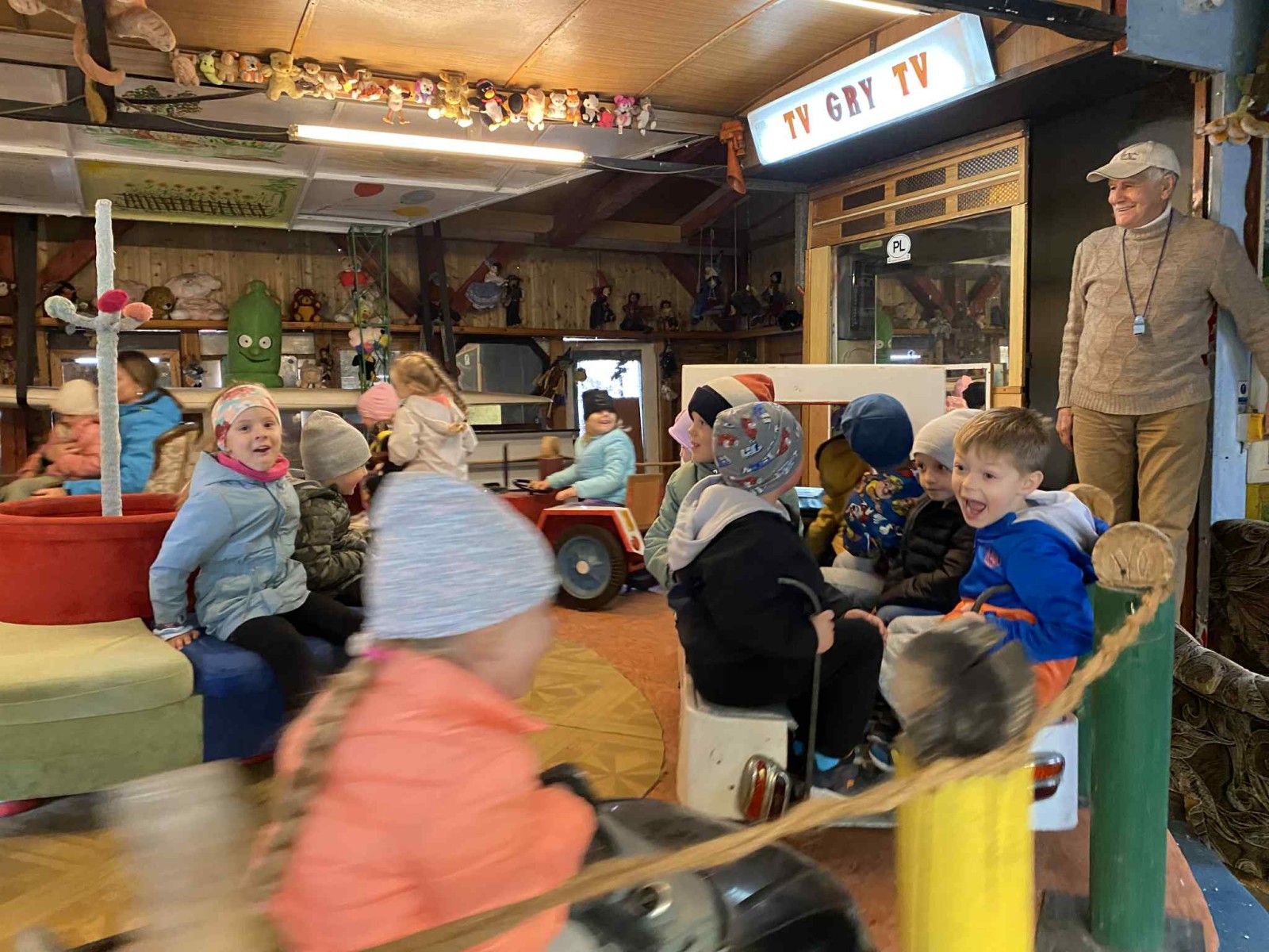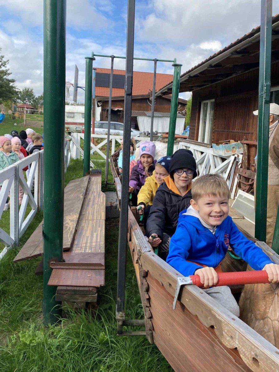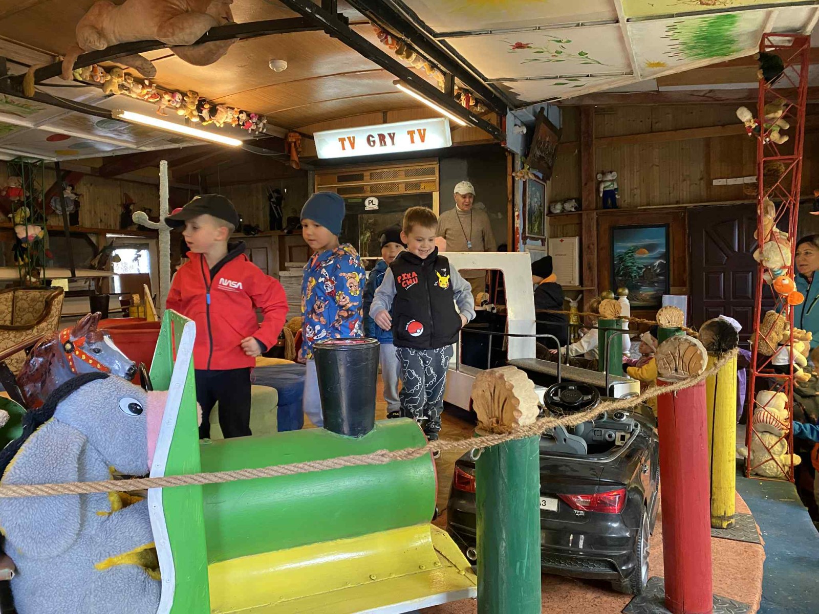 W poniedziałek dzieci z grupy Słoneczka i Zuchy wybrały się na wyjątkową wycieczkę do Małego Muzeum Ludowego w Marcinowie. Już od pierwszych chwil przedszkolaki z ciekawością oglądały dawne przedmioty codziennego użytku, sprzęty domowe, narzędzia rolnicze oraz różne pamiątki, które opowiadały historię życia na wsi sprzed lat. To była wspaniała lekcja tradycji i kultury ludowej, dzięki której mali odkrywcy mogli przekonać się, jak wiele zmieniło się na przestrzeni czasu. Po zwiedzaniu na dzieci czekała równie radosna część dnia - wspólne zabawy na świeżym powietrzu. Największą atrakcją była kolorowa karuzela, która wywoływała mnóstwo uśmiechów i radości oraz łódź wikingów. Dodatkowo dzieci mogły posłuchać gry na perkusji i akordeonie oraz wspólnie zaśpiewać piosenki z repertuaru przedszkolnego. Nie zabrakło też smacznego poczęstunku, wszyscy z apetytem zajadali się kiełbaskami z ogniska, odpoczywając i rozmawiając w przyjaznej atmosferze. Był to czas pełen nowych doświadczeń, wspólnej zabawy i niezapomnianych chwil, które na długo zostaną w pamięci dzieci.