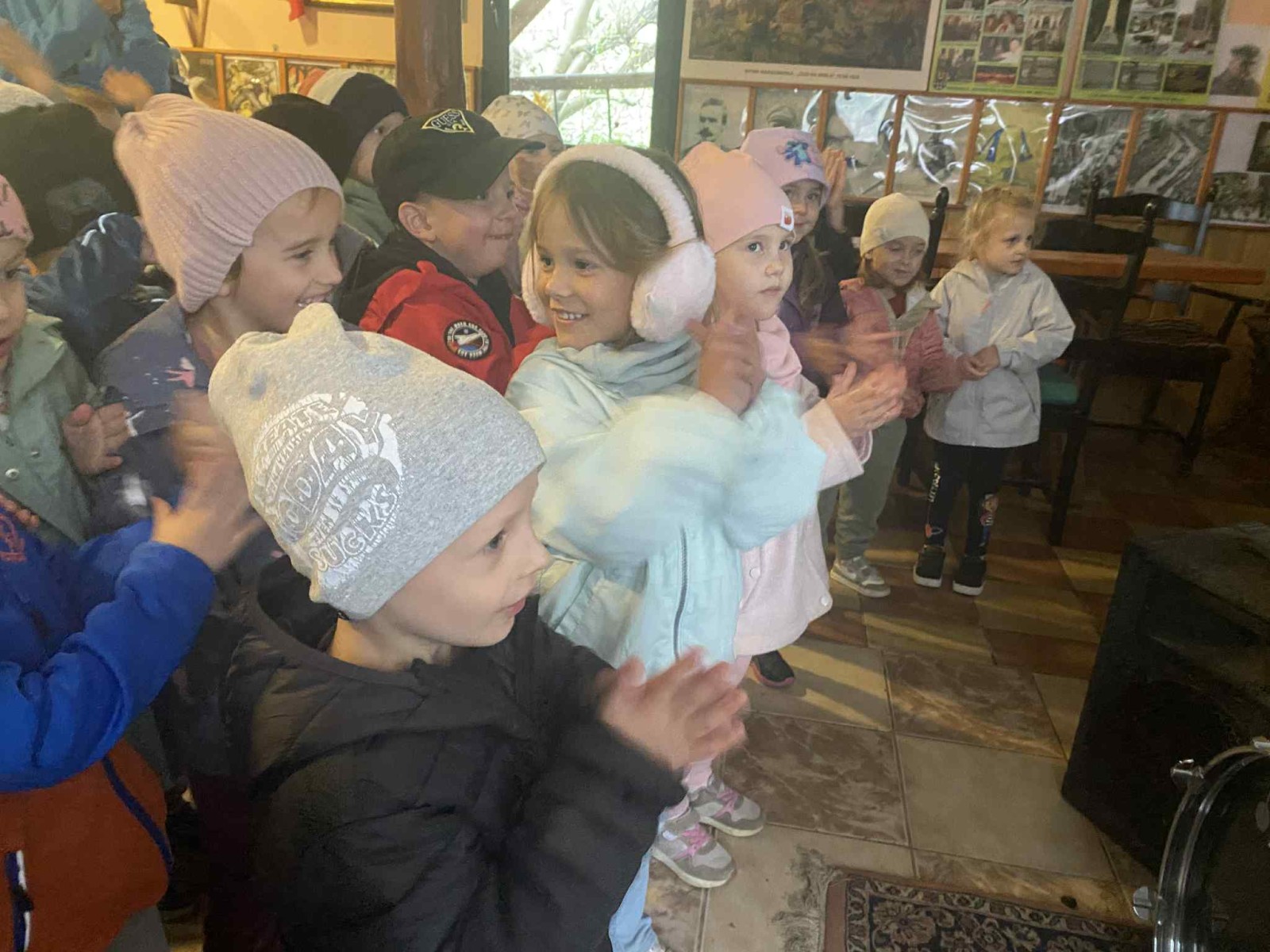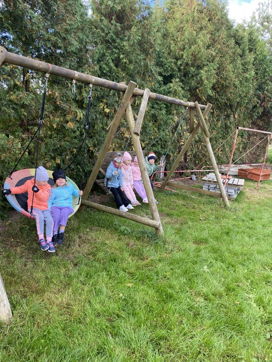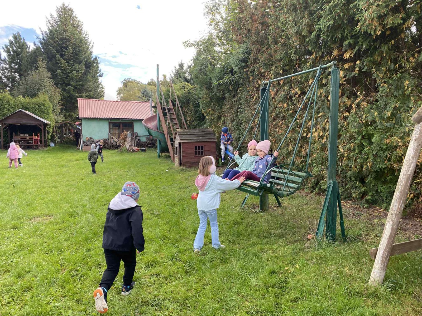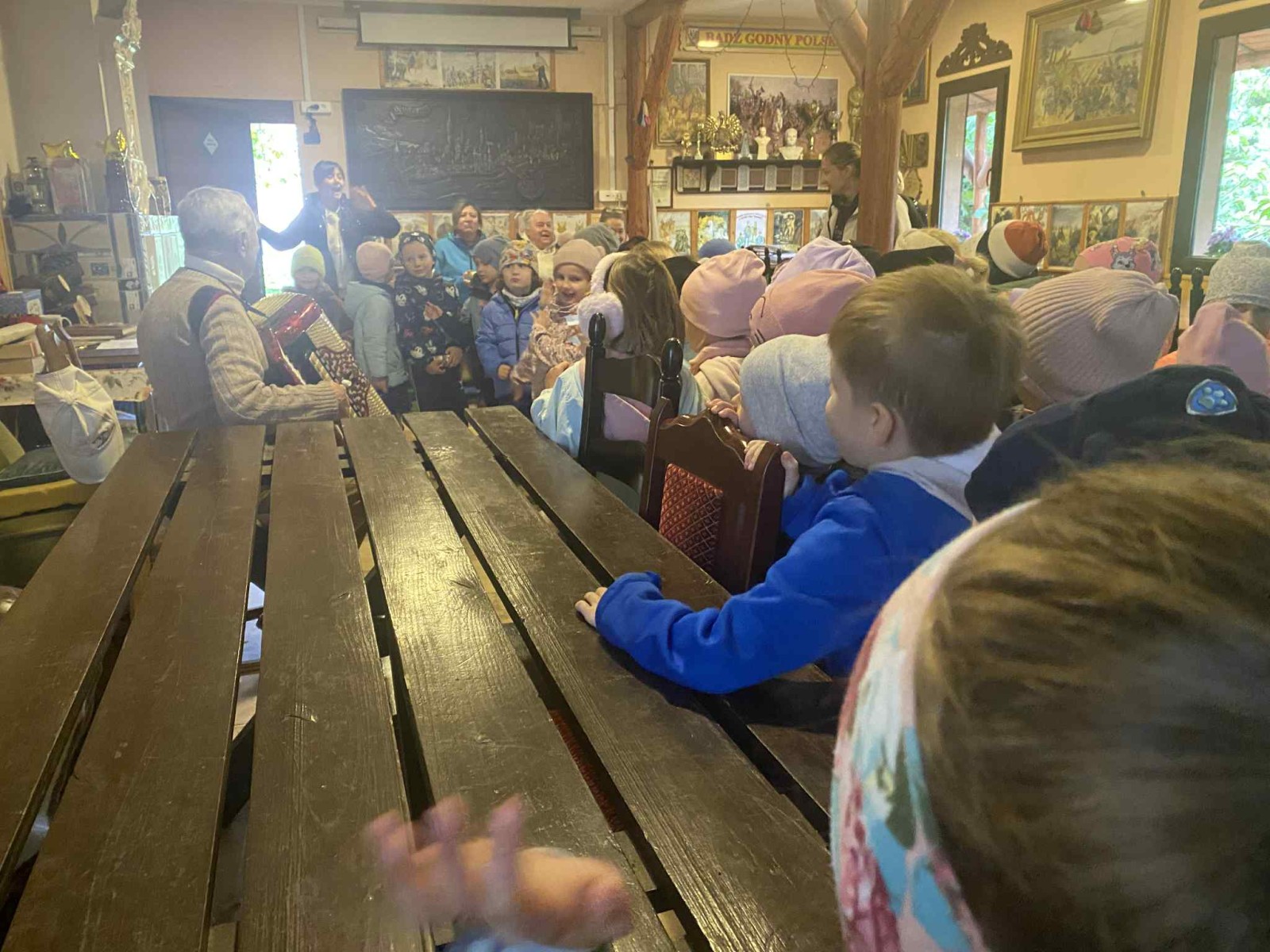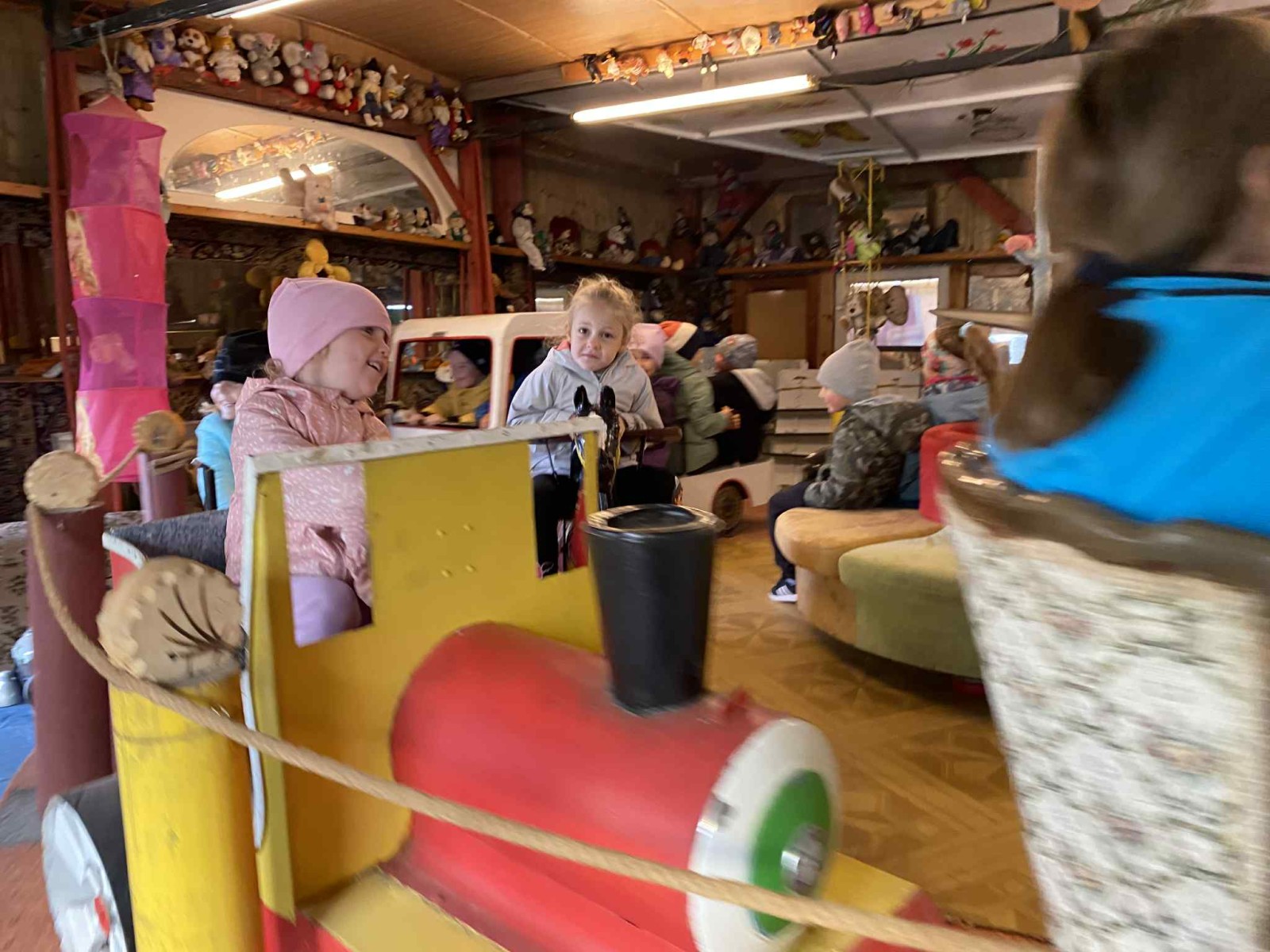 W poniedziałek dzieci z grupy Słoneczka i Zuchy wybrały się na wyjątkową wycieczkę do Małego Muzeum Ludowego w Marcinowie. Już od pierwszych chwil przedszkolaki z ciekawością oglądały dawne przedmioty codziennego użytku, sprzęty domowe, narzędzia rolnicze oraz różne pamiątki, które opowiadały historię życia na wsi sprzed lat. To była wspaniała lekcja tradycji i kultury ludowej, dzięki której mali odkrywcy mogli przekonać się, jak wiele zmieniło się na przestrzeni czasu. Po zwiedzaniu na dzieci czekała równie radosna część dnia - wspólne zabawy na świeżym powietrzu. Największą atrakcją była kolorowa karuzela, która wywoływała mnóstwo uśmiechów i radości oraz łódź wikingów. Dodatkowo dzieci mogły posłuchać gry na perkusji i akordeonie oraz wspólnie zaśpiewać piosenki z repertuaru przedszkolnego. Nie zabrakło też smacznego poczęstunku, wszyscy z apetytem zajadali się kiełbaskami z ogniska, odpoczywając i rozmawiając w przyjaznej atmosferze. Był to czas pełen nowych doświadczeń, wspólnej zabawy i niezapomnianych chwil, które na długo zostaną w pamięci dzieci.