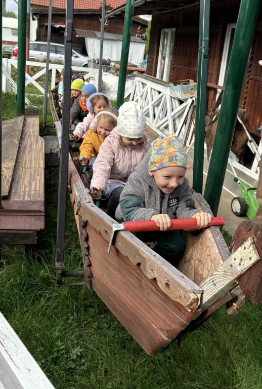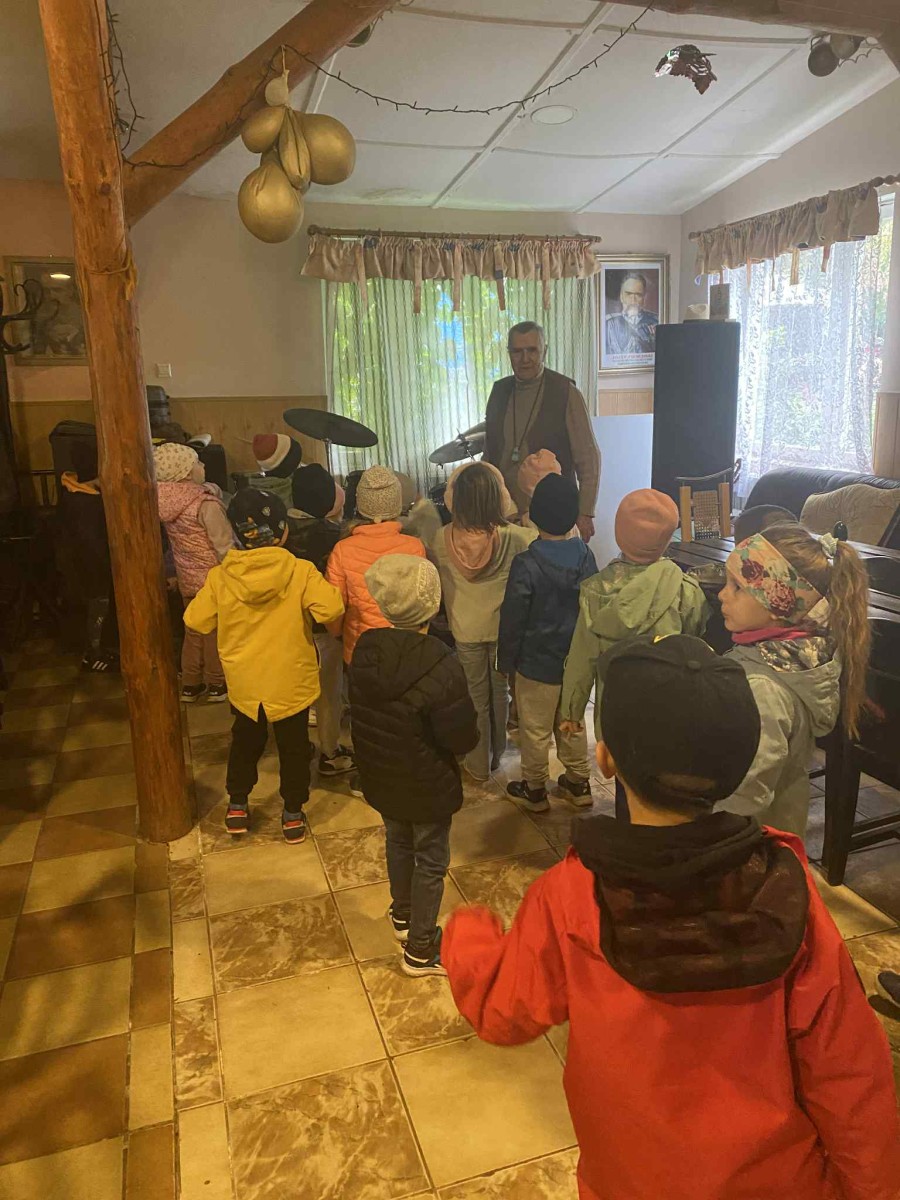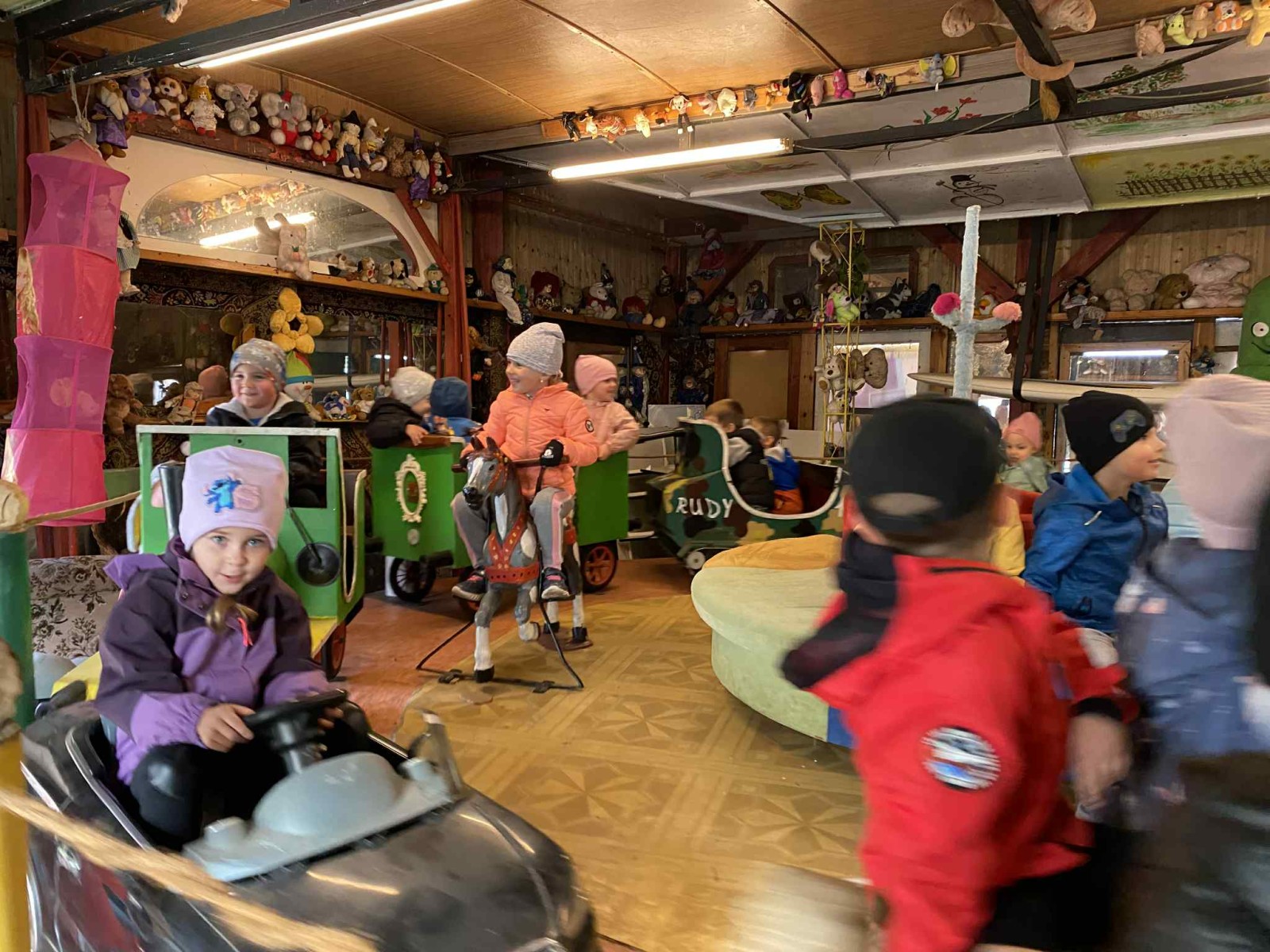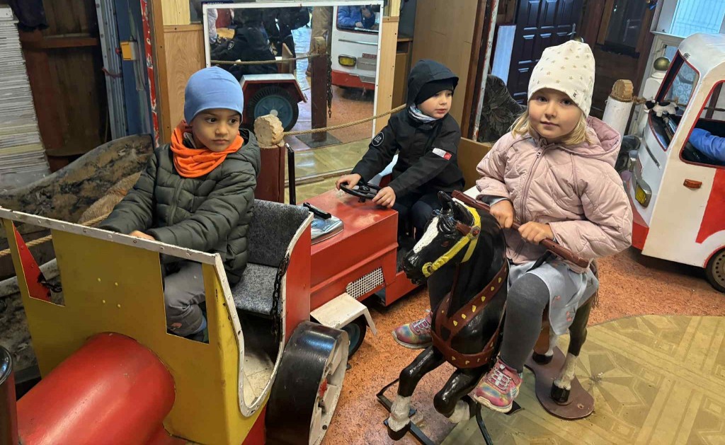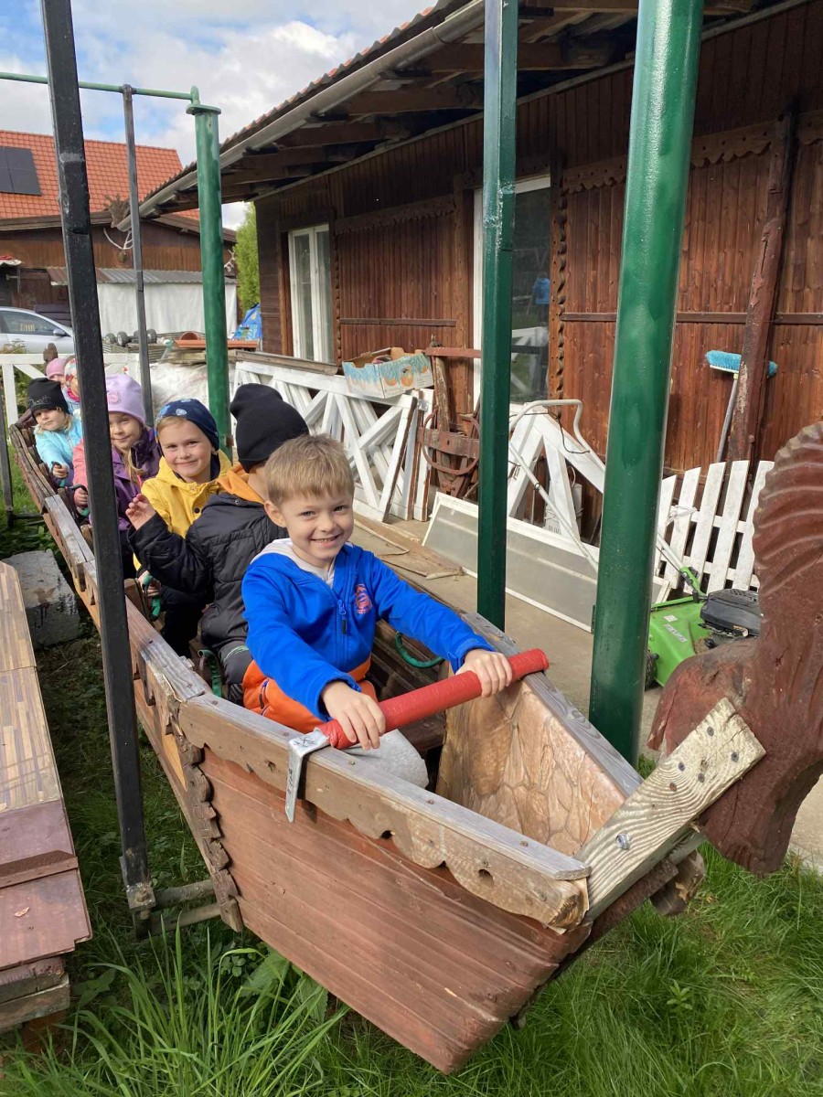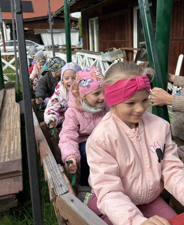 W poniedziałek dzieci z grupy Słoneczka i Zuchy wybrały się na wyjątkową wycieczkę do Małego Muzeum Ludowego w Marcinowie. Już od pierwszych chwil przedszkolaki z ciekawością oglądały dawne przedmioty codziennego użytku, sprzęty domowe, narzędzia rolnicze oraz różne pamiątki, które opowiadały historię życia na wsi sprzed lat. To była wspaniała lekcja tradycji i kultury ludowej, dzięki której mali odkrywcy mogli przekonać się, jak wiele zmieniło się na przestrzeni czasu. Po zwiedzaniu na dzieci czekała równie radosna część dnia - wspólne zabawy na świeżym powietrzu. Największą atrakcją była kolorowa karuzela, która wywoływała mnóstwo uśmiechów i radości oraz łódź wikingów. Dodatkowo dzieci mogły posłuchać gry na perkusji i akordeonie oraz wspólnie zaśpiewać piosenki z repertuaru przedszkolnego. Nie zabrakło też smacznego poczęstunku, wszyscy z apetytem zajadali się kiełbaskami z ogniska, odpoczywając i rozmawiając w przyjaznej atmosferze. Był to czas pełen nowych doświadczeń, wspólnej zabawy i niezapomnianych chwil, które na długo zostaną w pamięci dzieci.