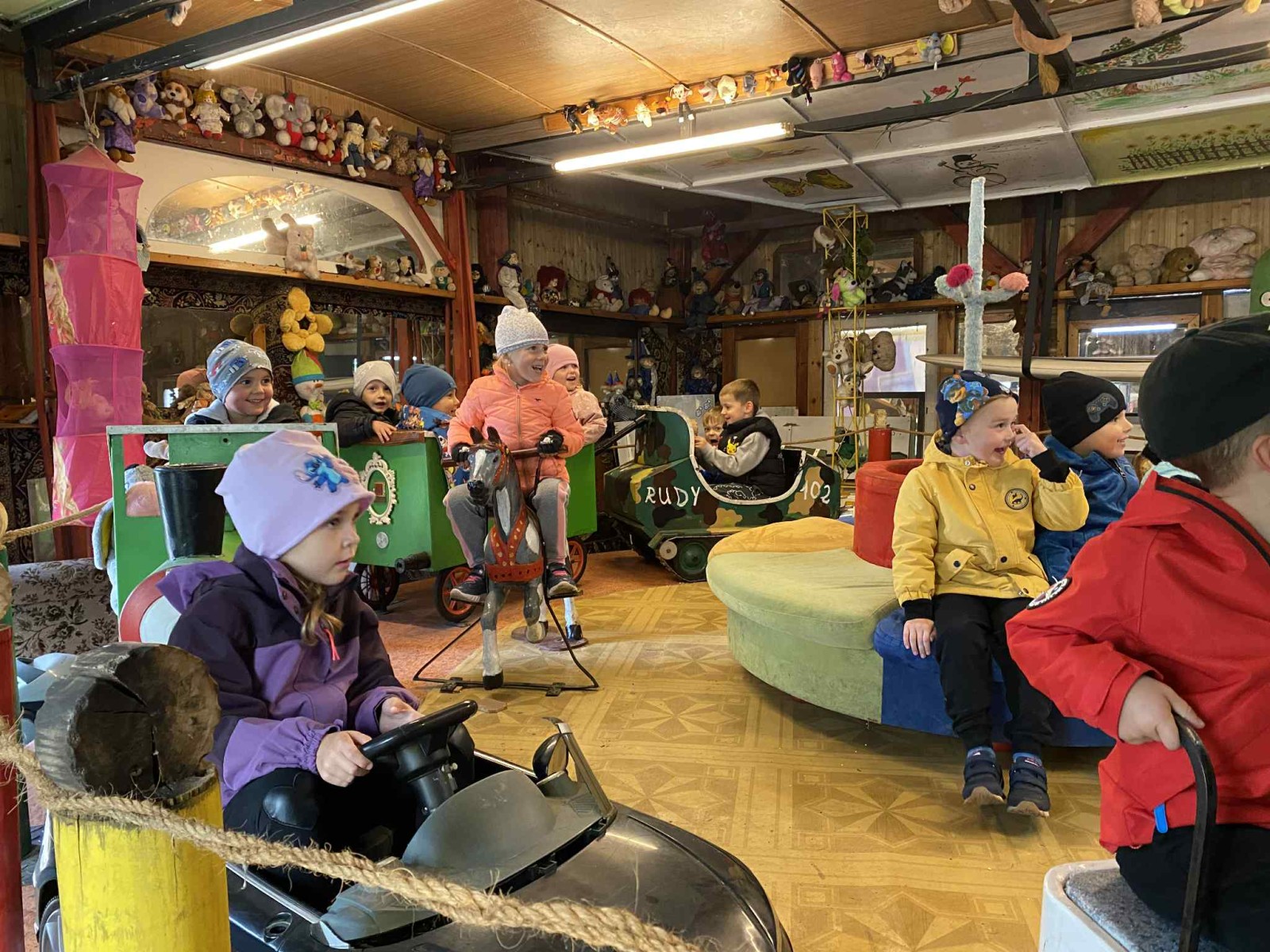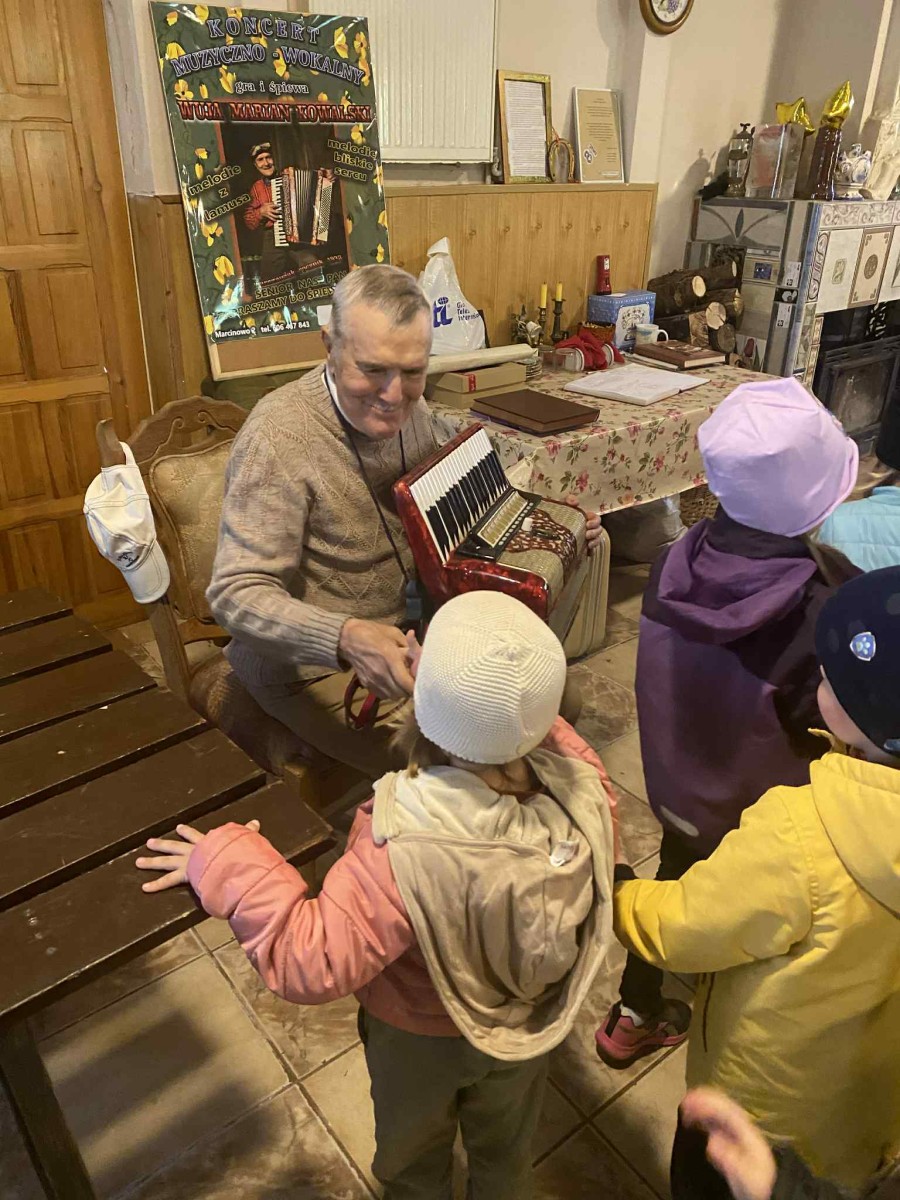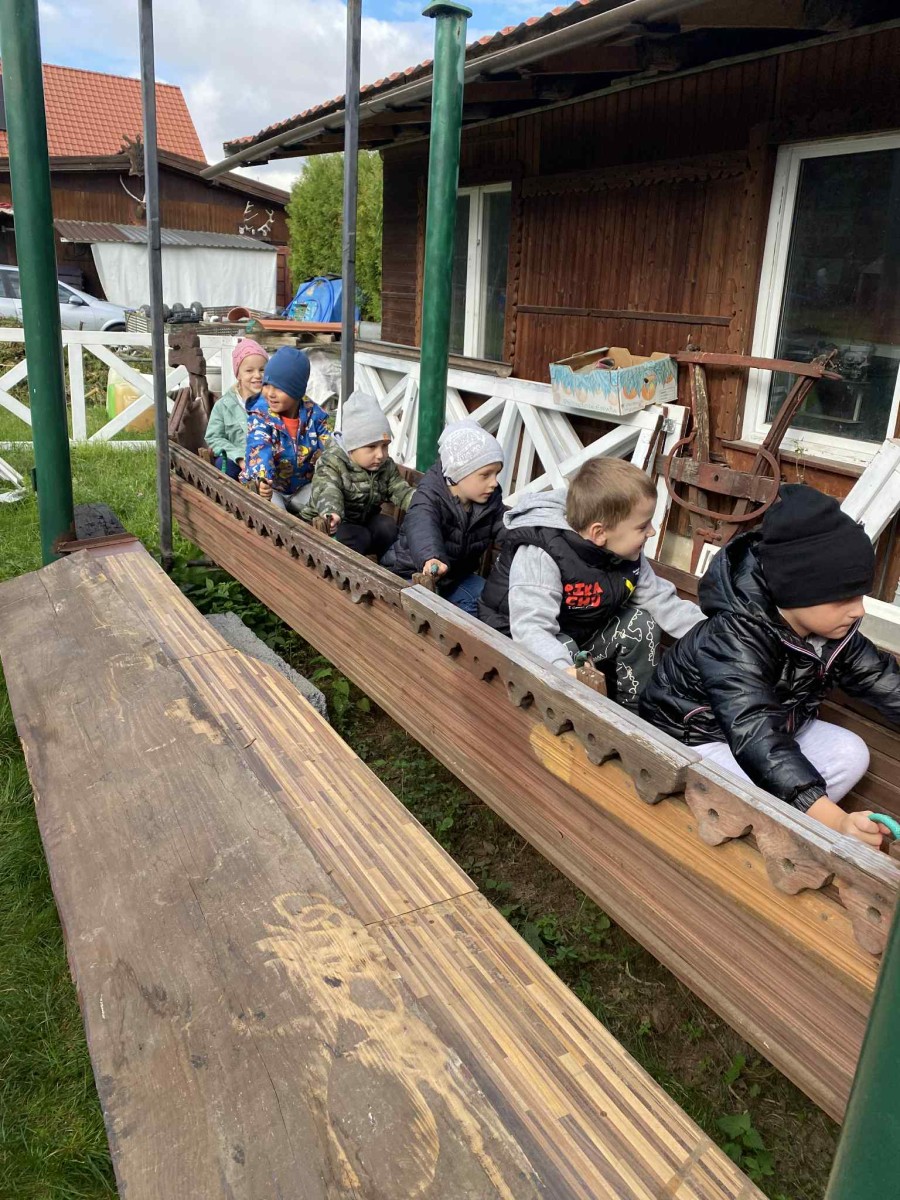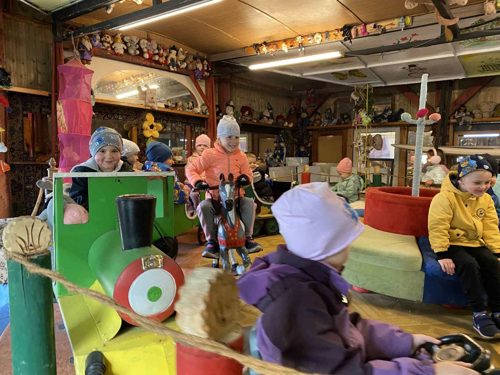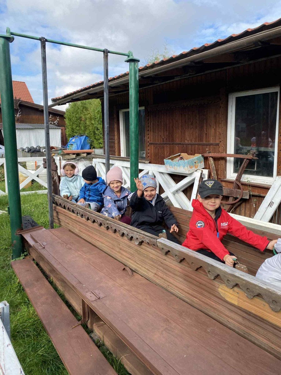 W poniedziałek dzieci z grupy Słoneczka i Zuchy wybrały się na wyjątkową wycieczkę do Małego Muzeum Ludowego w Marcinowie. Już od pierwszych chwil przedszkolaki z ciekawością oglądały dawne przedmioty codziennego użytku, sprzęty domowe, narzędzia rolnicze oraz różne pamiątki, które opowiadały historię życia na wsi sprzed lat. To była wspaniała lekcja tradycji i kultury ludowej, dzięki której mali odkrywcy mogli przekonać się, jak wiele zmieniło się na przestrzeni czasu. Po zwiedzaniu na dzieci czekała równie radosna część dnia - wspólne zabawy na świeżym powietrzu. Największą atrakcją była kolorowa karuzela, która wywoływała mnóstwo uśmiechów i radości oraz łódź wikingów. Dodatkowo dzieci mogły posłuchać gry na perkusji i akordeonie oraz wspólnie zaśpiewać piosenki z repertuaru przedszkolnego. Nie zabrakło też smacznego poczęstunku, wszyscy z apetytem zajadali się kiełbaskami z ogniska, odpoczywając i rozmawiając w przyjaznej atmosferze. Był to czas pełen nowych doświadczeń, wspólnej zabawy i niezapomnianych chwil, które na długo zostaną w pamięci dzieci.