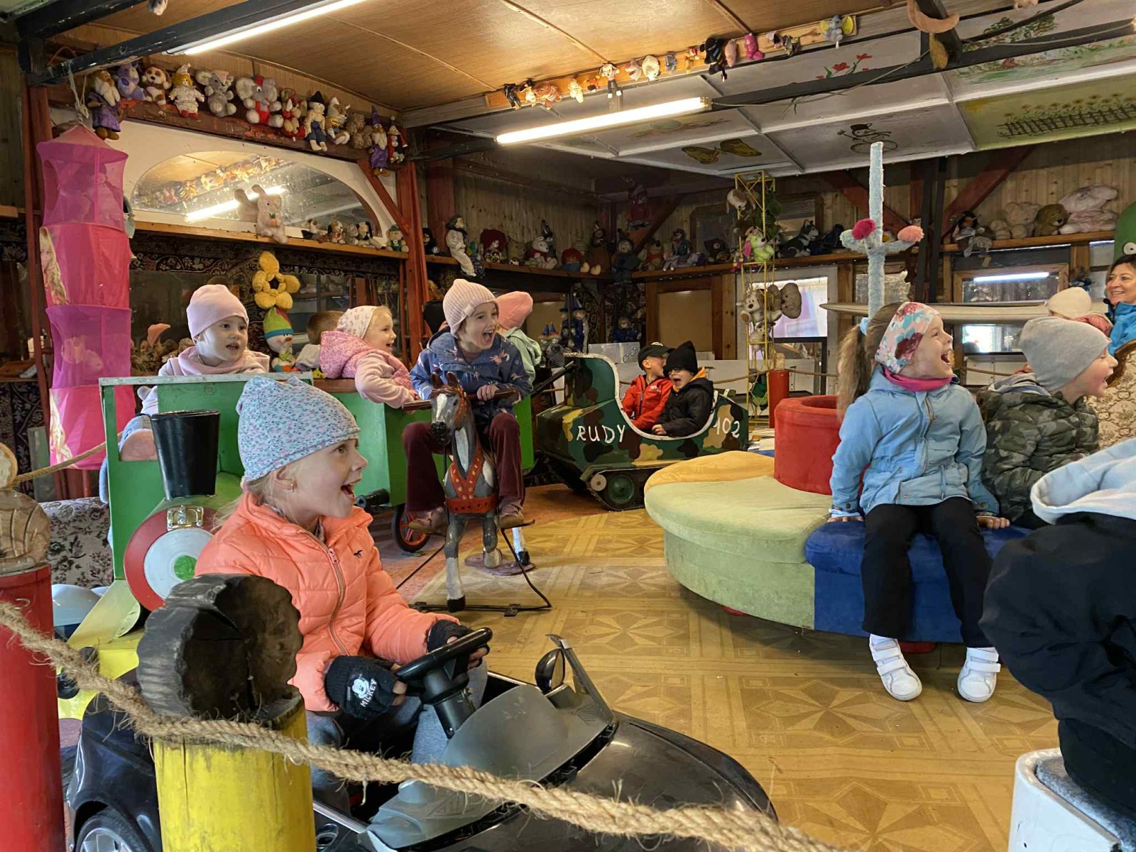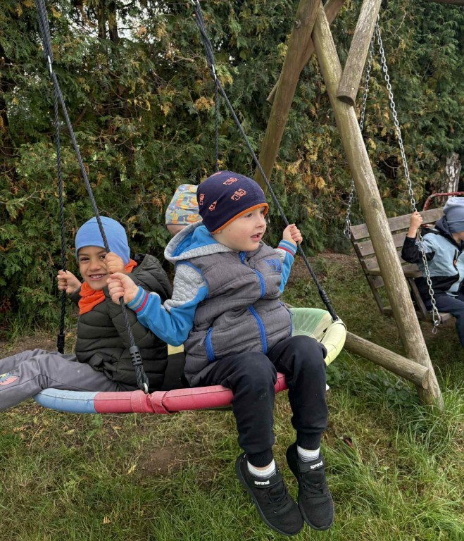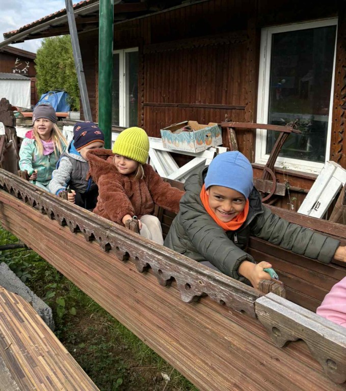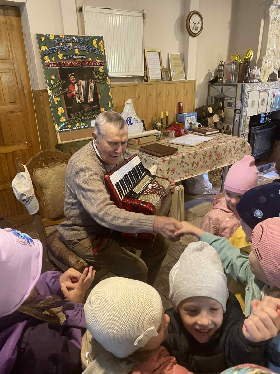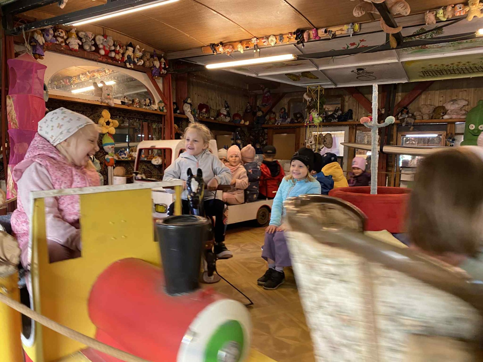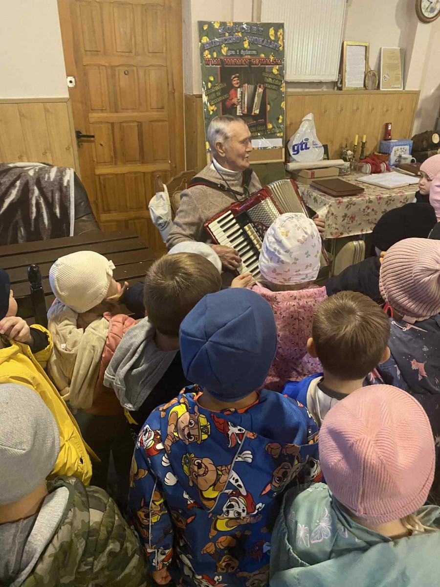 W poniedziałek dzieci z grupy Słoneczka i Zuchy wybrały się na wyjątkową wycieczkę do Małego Muzeum Ludowego w Marcinowie. Już od pierwszych chwil przedszkolaki z ciekawością oglądały dawne przedmioty codziennego użytku, sprzęty domowe, narzędzia rolnicze oraz różne pamiątki, które opowiadały historię życia na wsi sprzed lat. To była wspaniała lekcja tradycji i kultury ludowej, dzięki której mali odkrywcy mogli przekonać się, jak wiele zmieniło się na przestrzeni czasu. Po zwiedzaniu na dzieci czekała równie radosna część dnia - wspólne zabawy na świeżym powietrzu. Największą atrakcją była kolorowa karuzela, która wywoływała mnóstwo uśmiechów i radości oraz łódź wikingów. Dodatkowo dzieci mogły posłuchać gry na perkusji i akordeonie oraz wspólnie zaśpiewać piosenki z repertuaru przedszkolnego. Nie zabrakło też smacznego poczęstunku, wszyscy z apetytem zajadali się kiełbaskami z ogniska, odpoczywając i rozmawiając w przyjaznej atmosferze. Był to czas pełen nowych doświadczeń, wspólnej zabawy i niezapomnianych chwil, które na długo zostaną w pamięci dzieci.