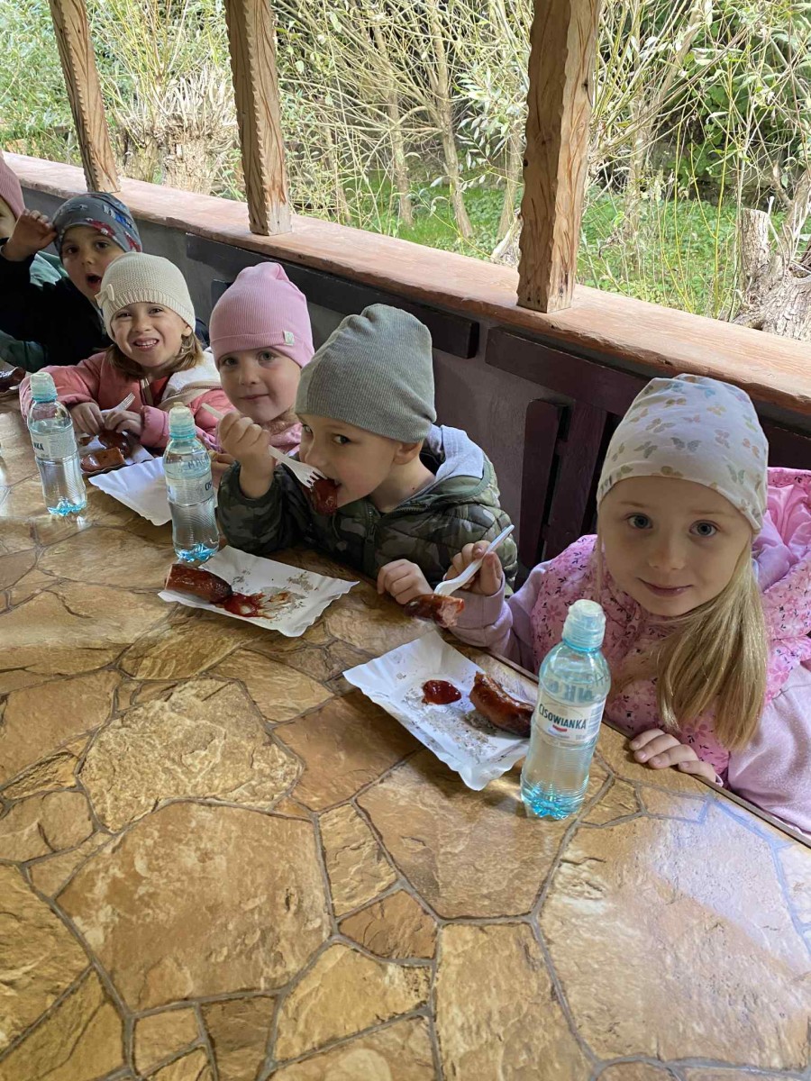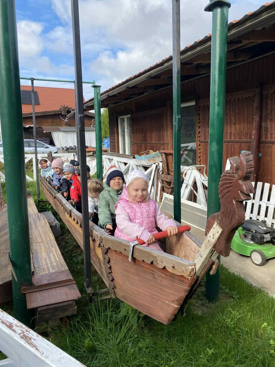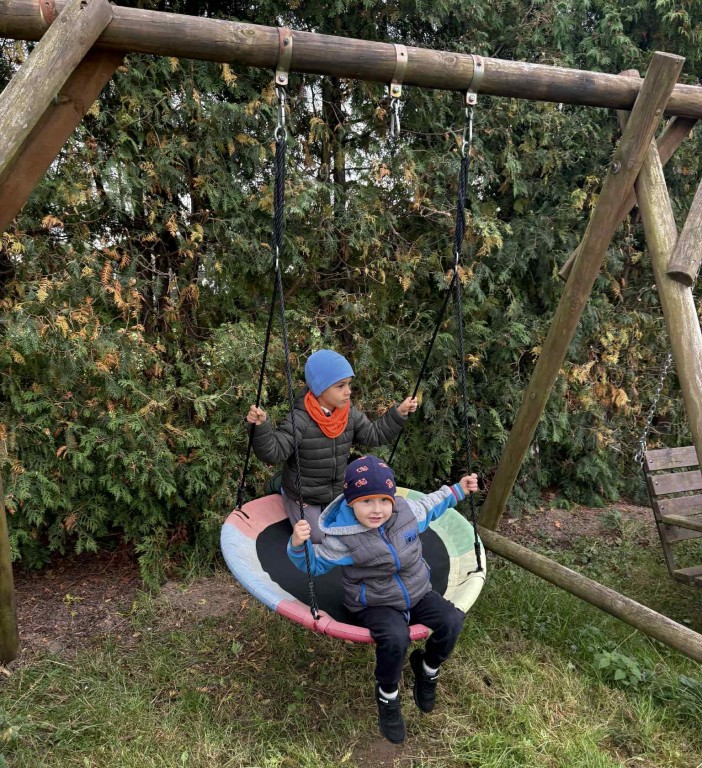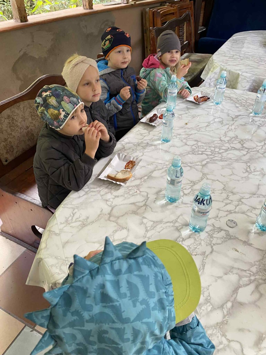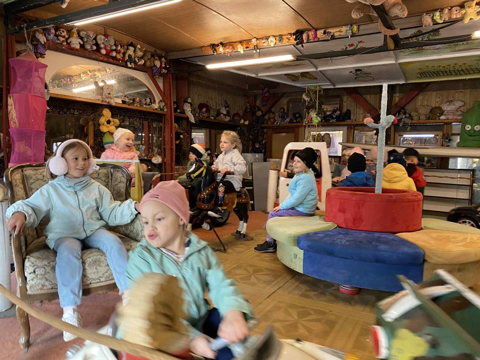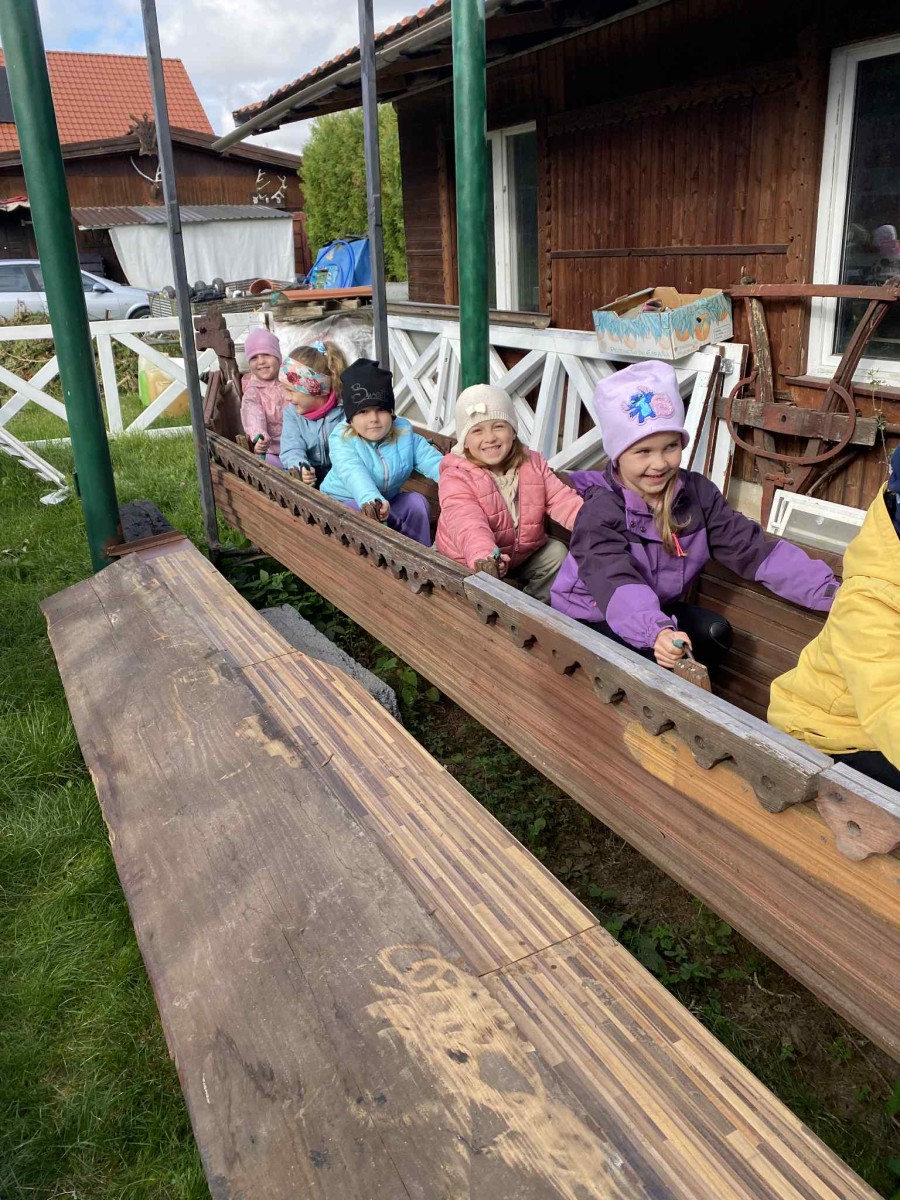 W poniedziałek dzieci z grupy Słoneczka i Zuchy wybrały się na wyjątkową wycieczkę do Małego Muzeum Ludowego w Marcinowie. Już od pierwszych chwil przedszkolaki z ciekawością oglądały dawne przedmioty codziennego użytku, sprzęty domowe, narzędzia rolnicze oraz różne pamiątki, które opowiadały historię życia na wsi sprzed lat. To była wspaniała lekcja tradycji i kultury ludowej, dzięki której mali odkrywcy mogli przekonać się, jak wiele zmieniło się na przestrzeni czasu. Po zwiedzaniu na dzieci czekała równie radosna część dnia - wspólne zabawy na świeżym powietrzu. Największą atrakcją była kolorowa karuzela, która wywoływała mnóstwo uśmiechów i radości oraz łódź wikingów. Dodatkowo dzieci mogły posłuchać gry na perkusji i akordeonie oraz wspólnie zaśpiewać piosenki z repertuaru przedszkolnego. Nie zabrakło też smacznego poczęstunku, wszyscy z apetytem zajadali się kiełbaskami z ogniska, odpoczywając i rozmawiając w przyjaznej atmosferze. Był to czas pełen nowych doświadczeń, wspólnej zabawy i niezapomnianych chwil, które na długo zostaną w pamięci dzieci.
