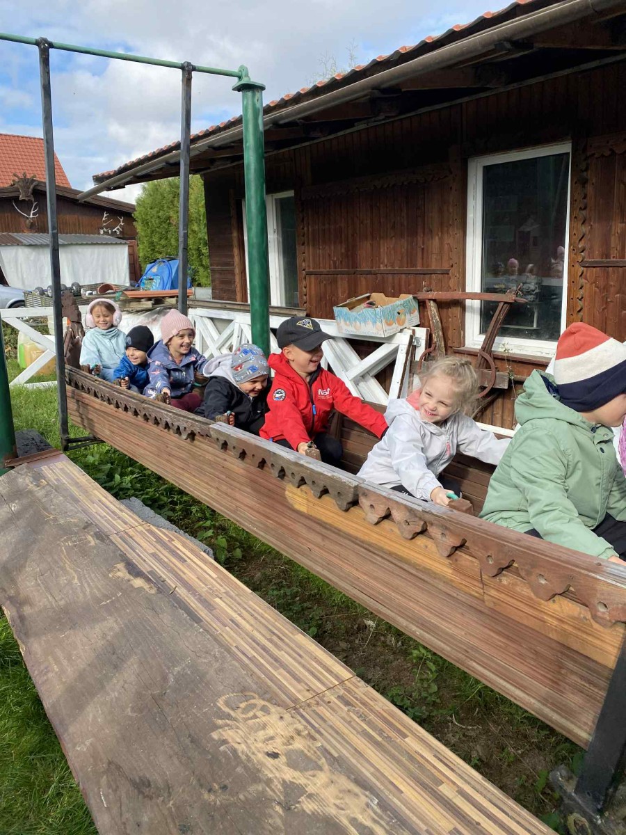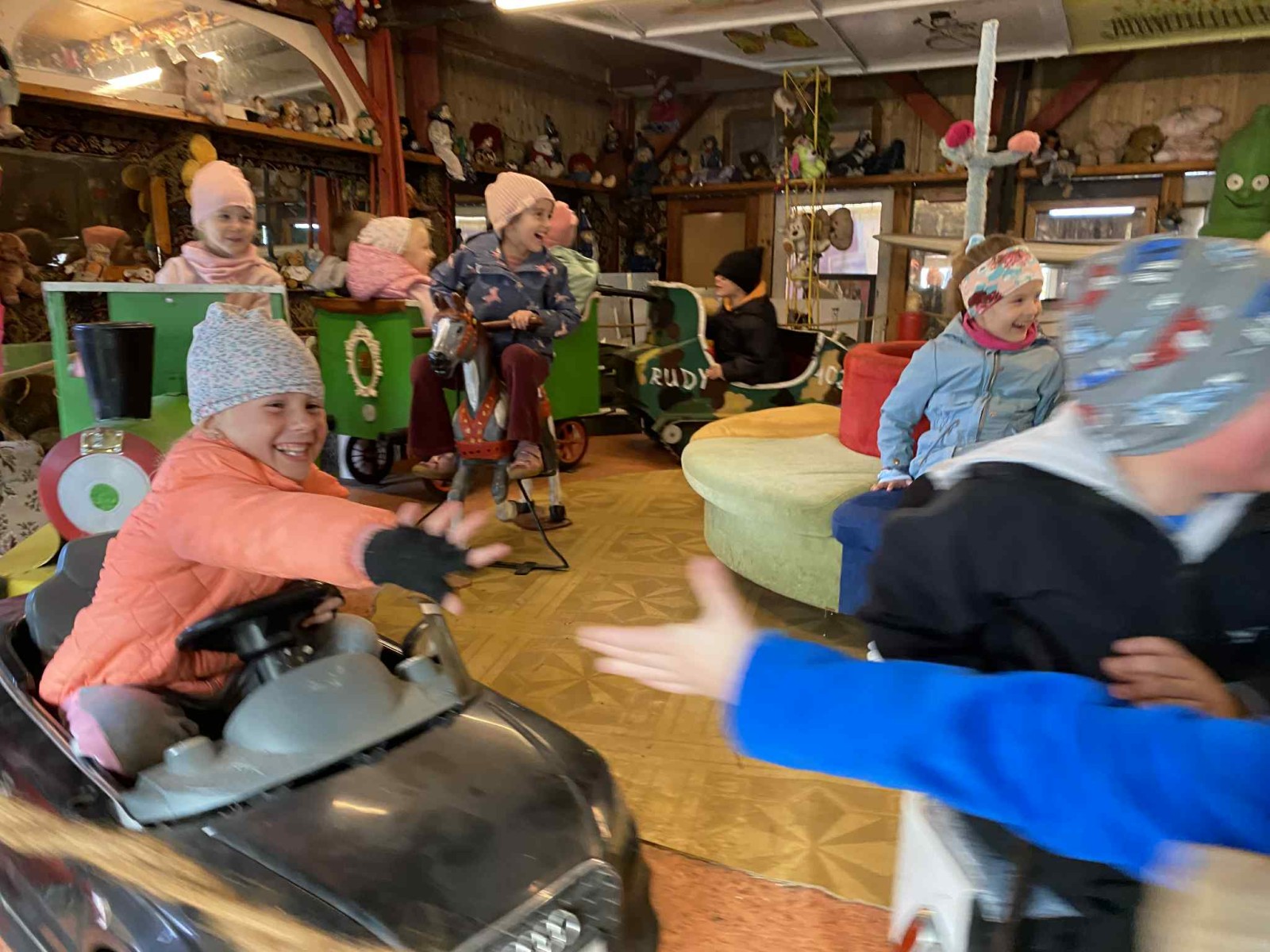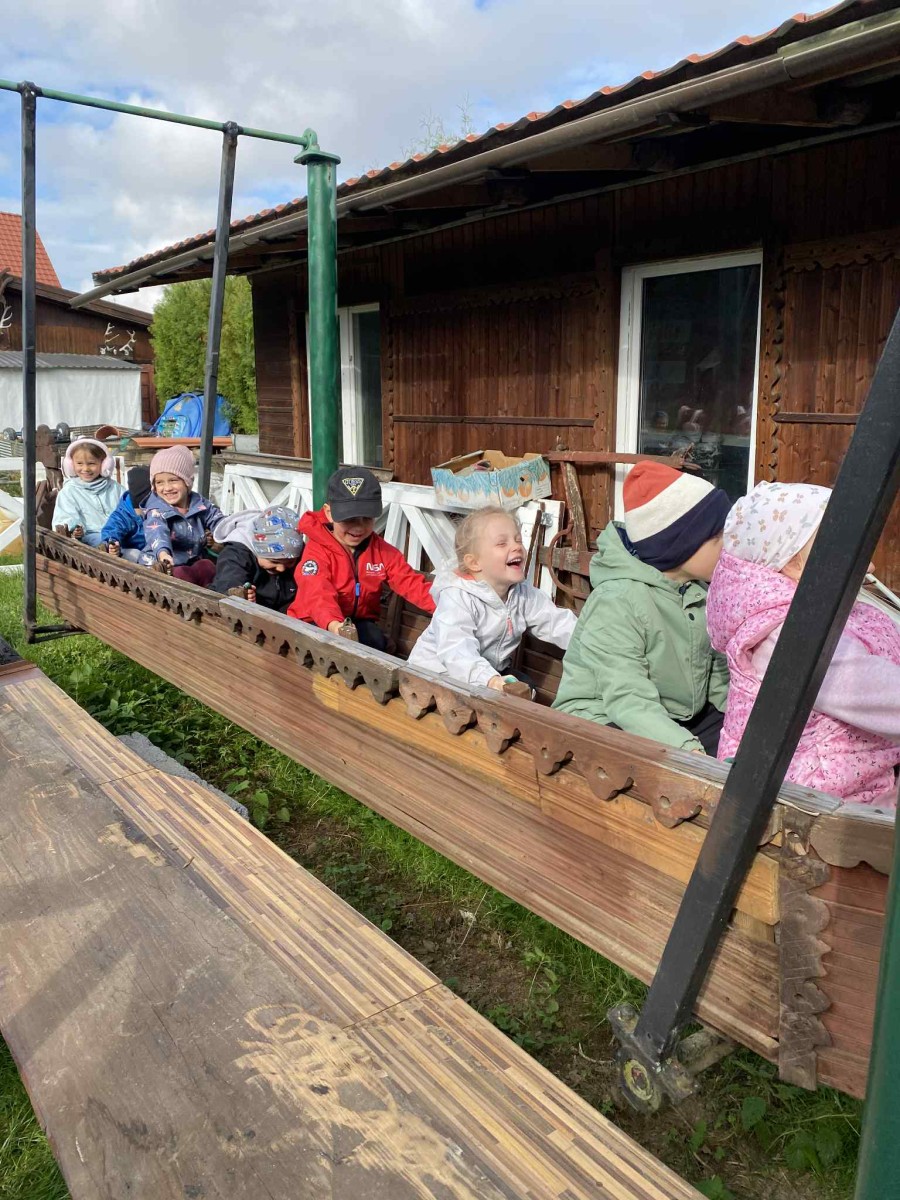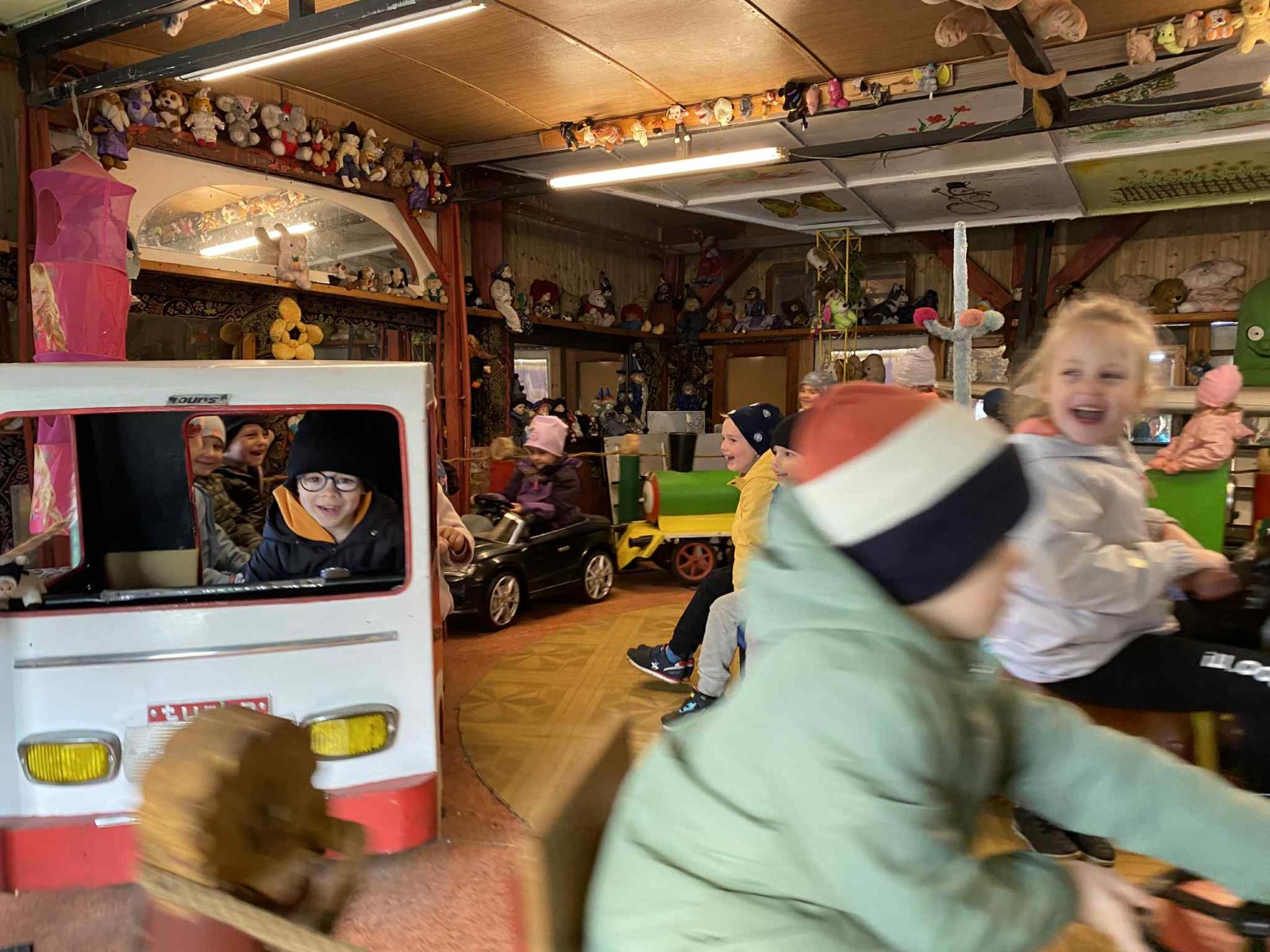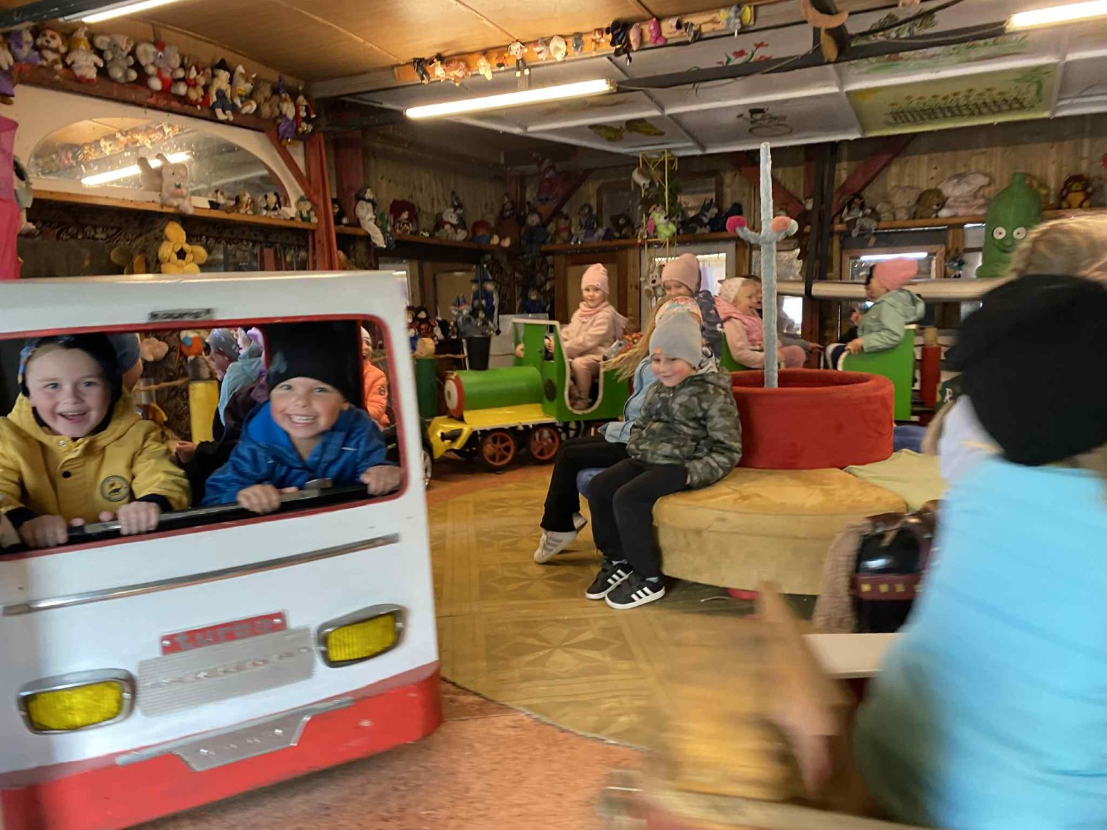 W poniedziałek dzieci z grupy Słoneczka i Zuchy wybrały się na wyjątkową wycieczkę do Małego Muzeum Ludowego w Marcinowie. Już od pierwszych chwil przedszkolaki z ciekawością oglądały dawne przedmioty codziennego użytku, sprzęty domowe, narzędzia rolnicze oraz różne pamiątki, które opowiadały historię życia na wsi sprzed lat. To była wspaniała lekcja tradycji i kultury ludowej, dzięki której mali odkrywcy mogli przekonać się, jak wiele zmieniło się na przestrzeni czasu. Po zwiedzaniu na dzieci czekała równie radosna część dnia - wspólne zabawy na świeżym powietrzu. Największą atrakcją była kolorowa karuzela, która wywoływała mnóstwo uśmiechów i radości oraz łódź wikingów. Dodatkowo dzieci mogły posłuchać gry na perkusji i akordeonie oraz wspólnie zaśpiewać piosenki z repertuaru przedszkolnego. Nie zabrakło też smacznego poczęstunku, wszyscy z apetytem zajadali się kiełbaskami z ogniska, odpoczywając i rozmawiając w przyjaznej atmosferze. Był to czas pełen nowych doświadczeń, wspólnej zabawy i niezapomnianych chwil, które na długo zostaną w pamięci dzieci.