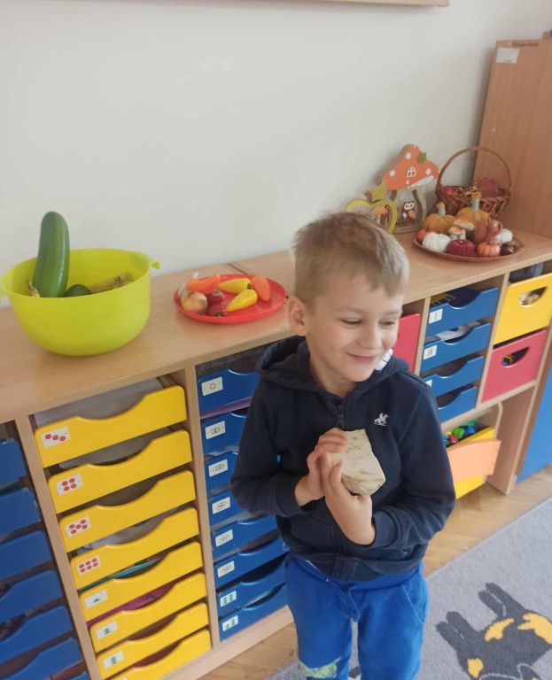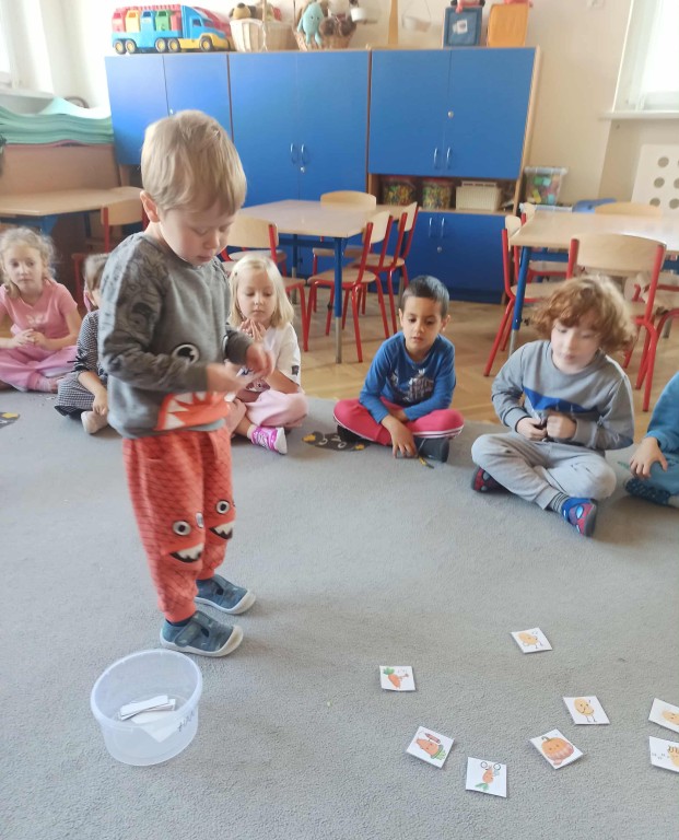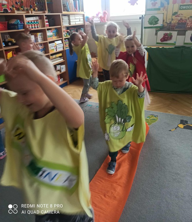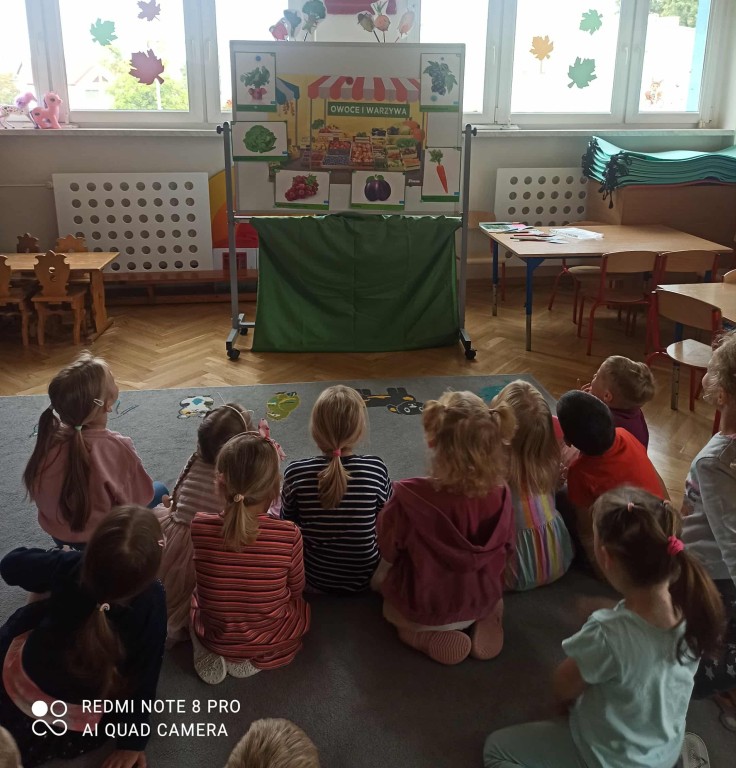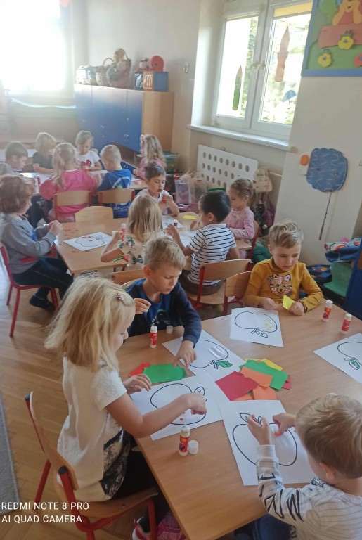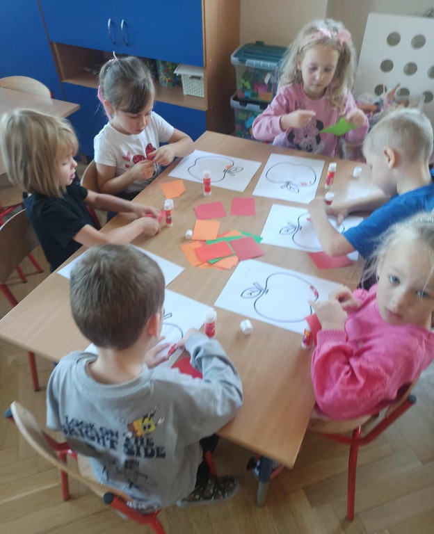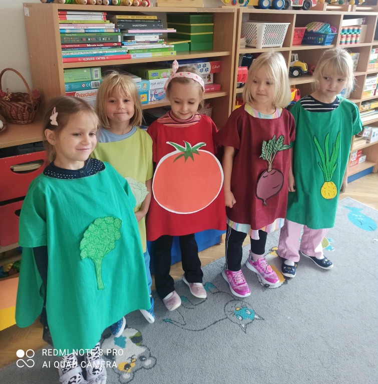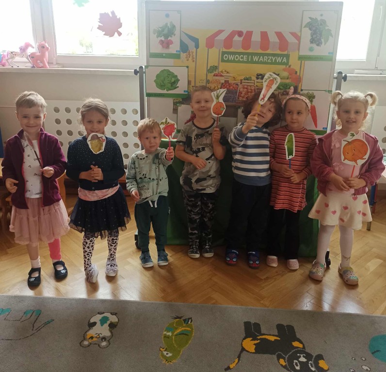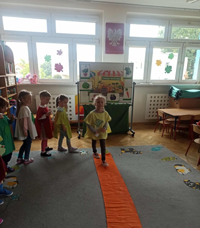 W ubiegłym tygodniu dzieci z grupy Zuchy wyruszyły w pełną i kolorową podróż po świecie warzyw i owoców. Dzieci poznały jak ważne są one w codziennej diecie. Podczas zajęć bawiliśmy się przy owocowych piosenkach, tańczyliśmy, śpiewaliśmy. Zorganizowaliśmy także warzywny pokaz mody. Wybraliśmy się do pobliskiego warzywaniaka, gdzie dzieci mogły z bliska obejrzeć i nazwać owoce i warzywa, a także samodzielnie wybrać produkty do naszego warzywno - owocowego kącika. Nie zabrakło też gier i zabaw dydaktycznych, dzięki którym Zuchy utrwalały swoją wiedzę o zdrowym odżywianiu, jedną z atrakcji był także mini teatrzyk pt. ,,Nowinki z warzywaniaka Witaminki". Na zakończenie tygodnia dzieci wykonały pracę plastyczną przedstawiającą soczyste jabłka. To był tydzień pełen uśmechu i dobrej zabawy, prawdziwa witaminowa przygoda Zuchów!
