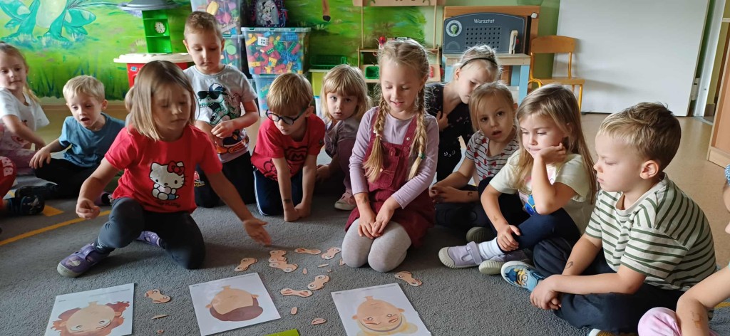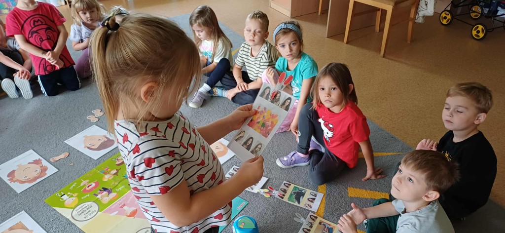 W grupie Słoneczka odbyły się zajęcia wzmacniające odporność psychiczną dzieci realizowane w ramach projektu UE ,,Oleśnickie Bystrzaki". Celem zajęć było uświadomienie dzieciom potrzeby dbałości, nie tylko o zdrowie fizyczne, ale także psychiczne. Dzieci rozpoznawały i nazywały emocje przedstawione na ilustracjach, opowiadały w jakich sytuacjach społecznych można spodziewać się wystąpienia prezentowanych uczuć. Przedszkolaki dowiedziały się, że wszystkie emocje są ważne i można je przeżywać. Dzieci wiedzą też, do kogo mogą się udać, gdy są smutne lub potrzebują pomocy.