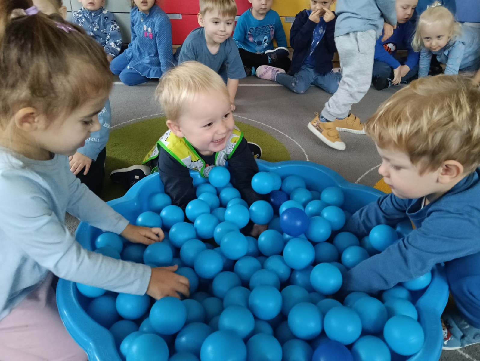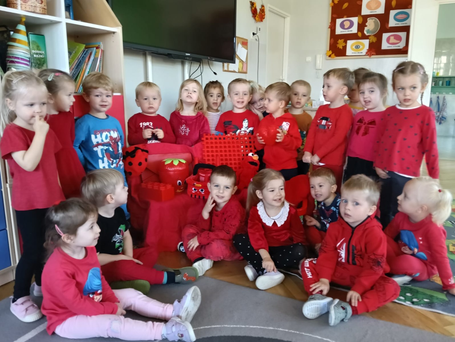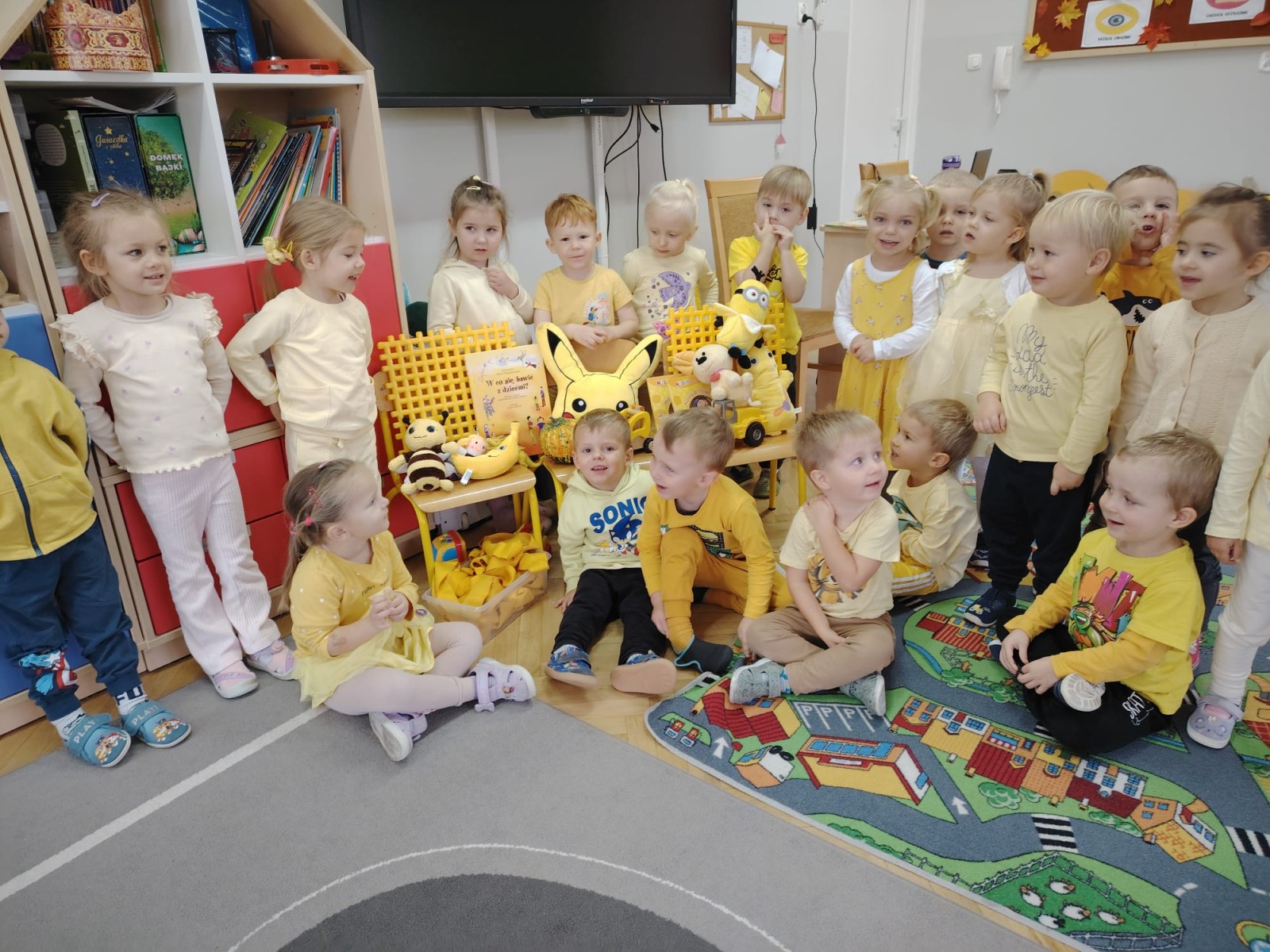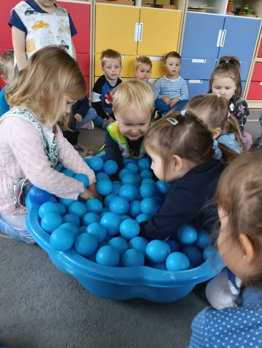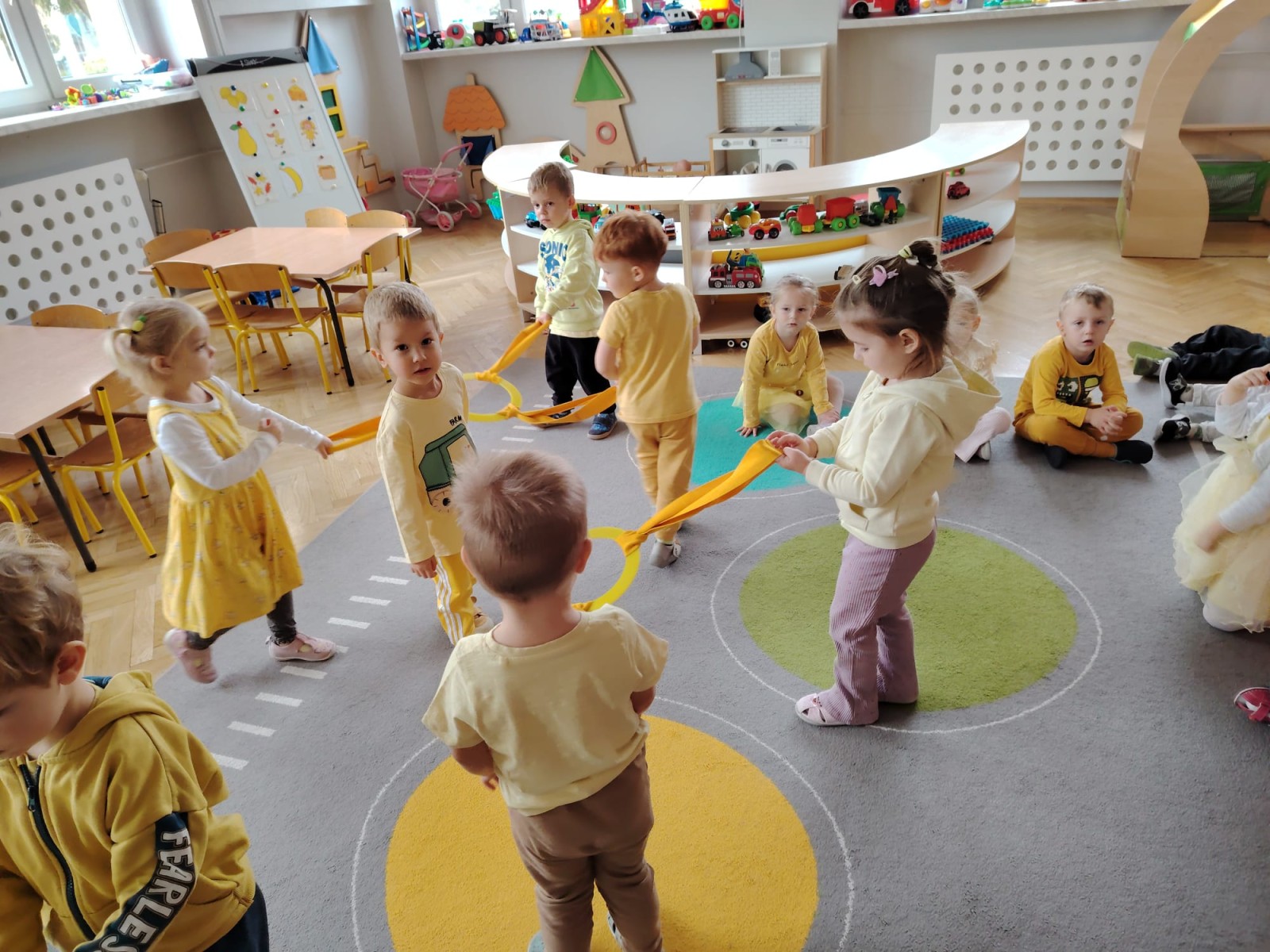 Ten tydzień w naszym przedszkolu był niezwykle kolorowy i intensywny. Krasnale świetnie się spisały i każdego dnia ubierały się w kolor odpowiedni dla danego dnia. W poniedziałek najmłodsze przeczkolaczki porozmawiały o przyjaźni, zrobiły własnoręcznie czerwone biedroneczki owijając kasztany plasteliną i zatańczyły ze świecącymi serduszkami. We wtorek obchodziliśmy dzień wody. Krasnale szukały niebieskiej rybki i kaczuszki, które ukryły się w basenie z kulkami, a także uczestniczyły w zabawach rytmicznych z wykorzystaniem rurek. Pomarańczowa środa była dla nas dniem ruchu. Dzieci uczestniczyły w wielu zabawach z wykorzystaniem pachołków. Dzięki czwartkowym zajęciom dzieci zapamiętały, że nasza Ziemia sie kręci, a także że trzeba o nią dbać, przede wszystkim nie śmiecić, przy okazji odkryły, że worki na śmieci mogą nam się przydać nawet do zabawy. Żółte zabawy królowały u krasnali w piątek. Był to dzień Słońca i pomimo, że nie ma go zbyt wiele na dworze, to zawitało ono do naszej sali.