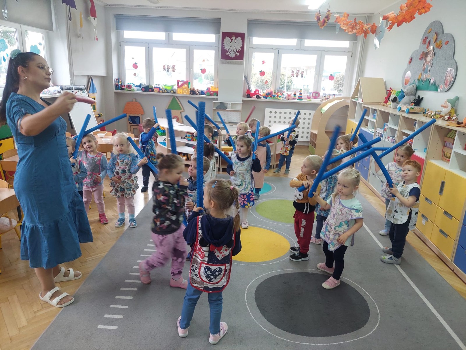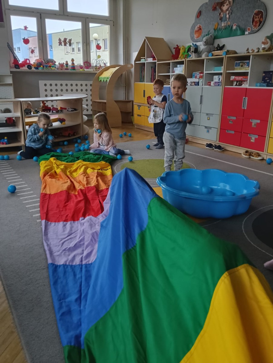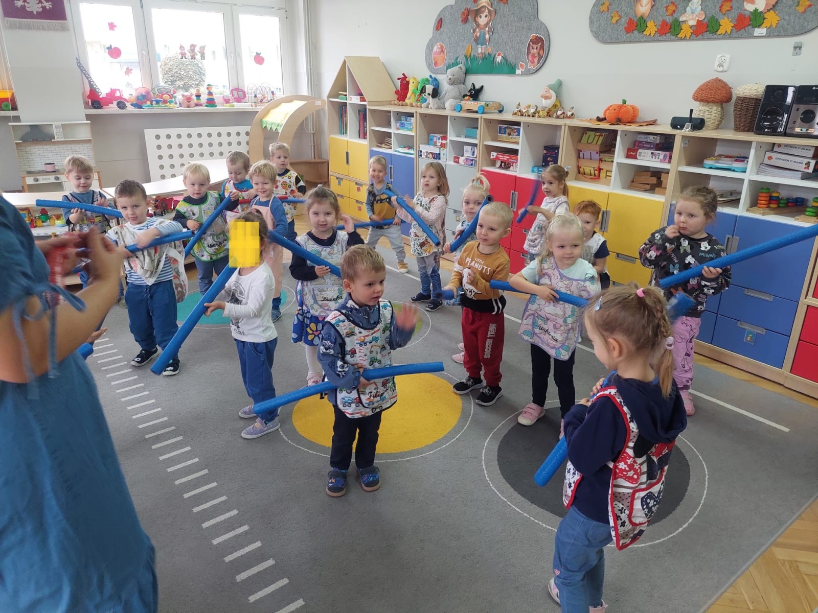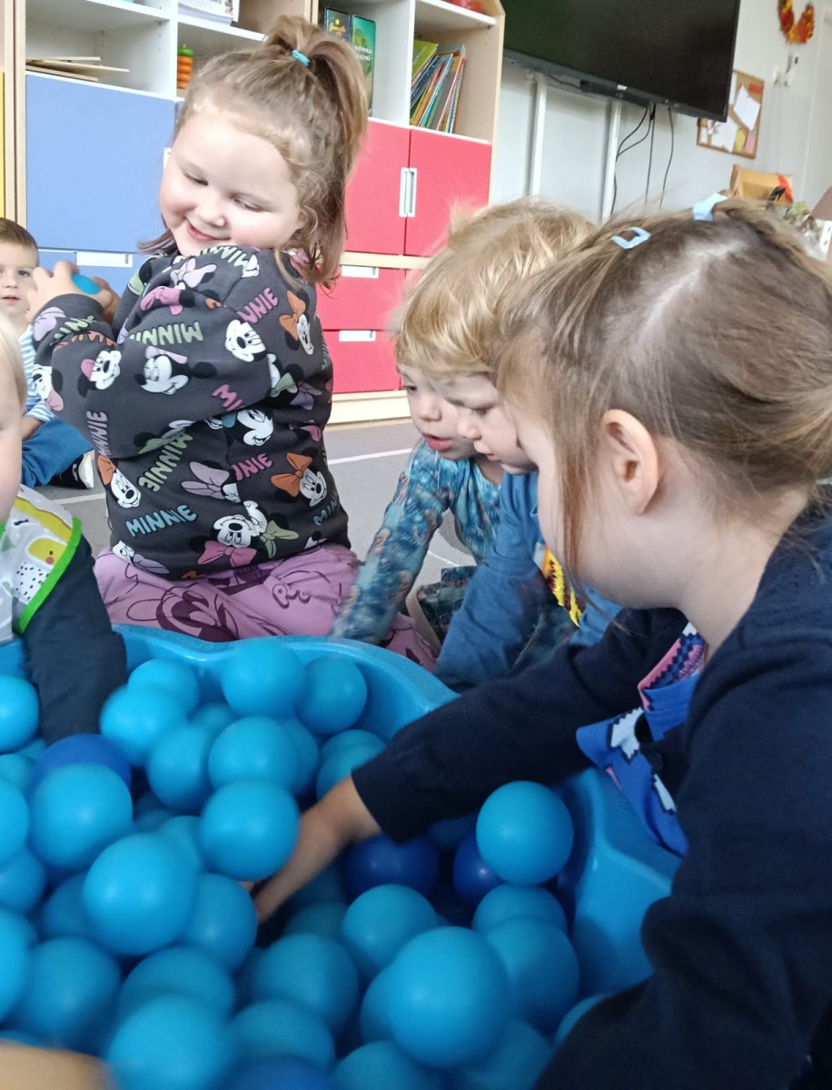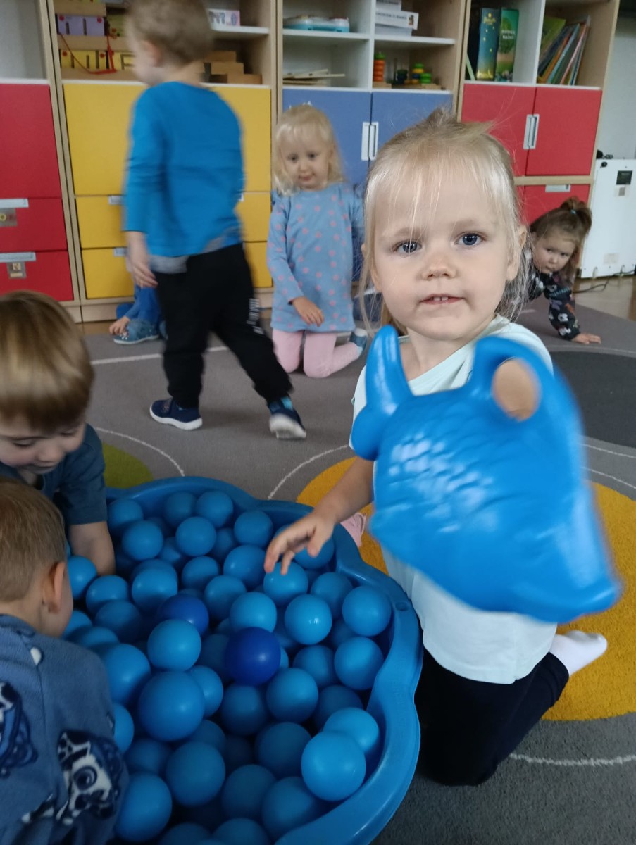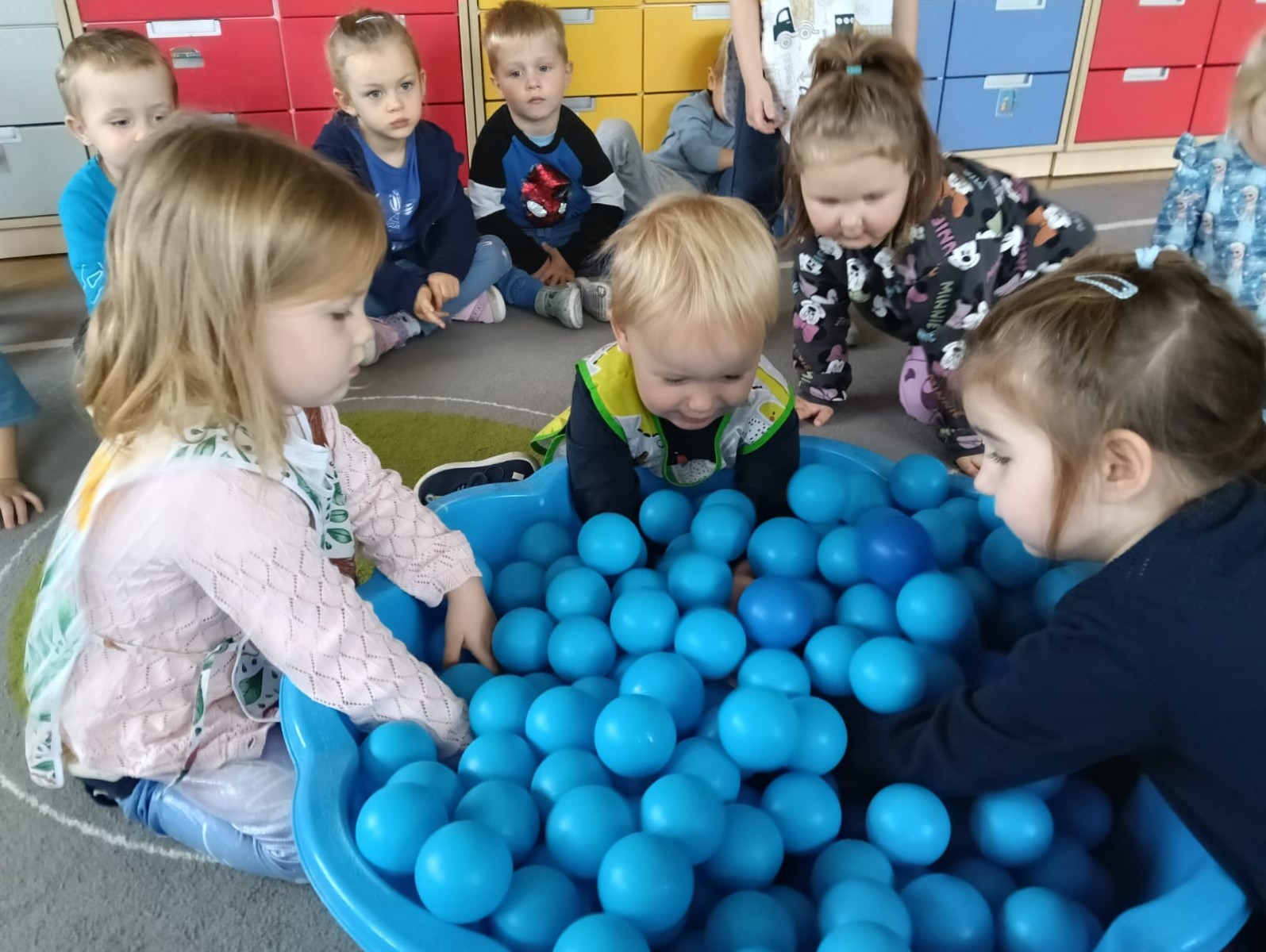 Ten tydzień w naszym przedszkolu był niezwykle kolorowy i intensywny. Krasnale świetnie się spisały i każdego dnia ubierały się w kolor odpowiedni dla danego dnia. W poniedziałek najmłodsze przeczkolaczki porozmawiały o przyjaźni, zrobiły własnoręcznie czerwone biedroneczki owijając kasztany plasteliną i zatańczyły ze świecącymi serduszkami. We wtorek obchodziliśmy dzień wody. Krasnale szukały niebieskiej rybki i kaczuszki, które ukryły się w basenie z kulkami, a także uczestniczyły w zabawach rytmicznych z wykorzystaniem rurek. Pomarańczowa środa była dla nas dniem ruchu. Dzieci uczestniczyły w wielu zabawach z wykorzystaniem pachołków. Dzięki czwartkowym zajęciom dzieci zapamiętały, że nasza Ziemia sie kręci, a także że trzeba o nią dbać, przede wszystkim nie śmiecić, przy okazji odkryły, że worki na śmieci mogą nam się przydać nawet do zabawy. Żółte zabawy królowały u krasnali w piątek. Był to dzień Słońca i pomimo, że nie ma go zbyt wiele na dworze, to zawitało ono do naszej sali.