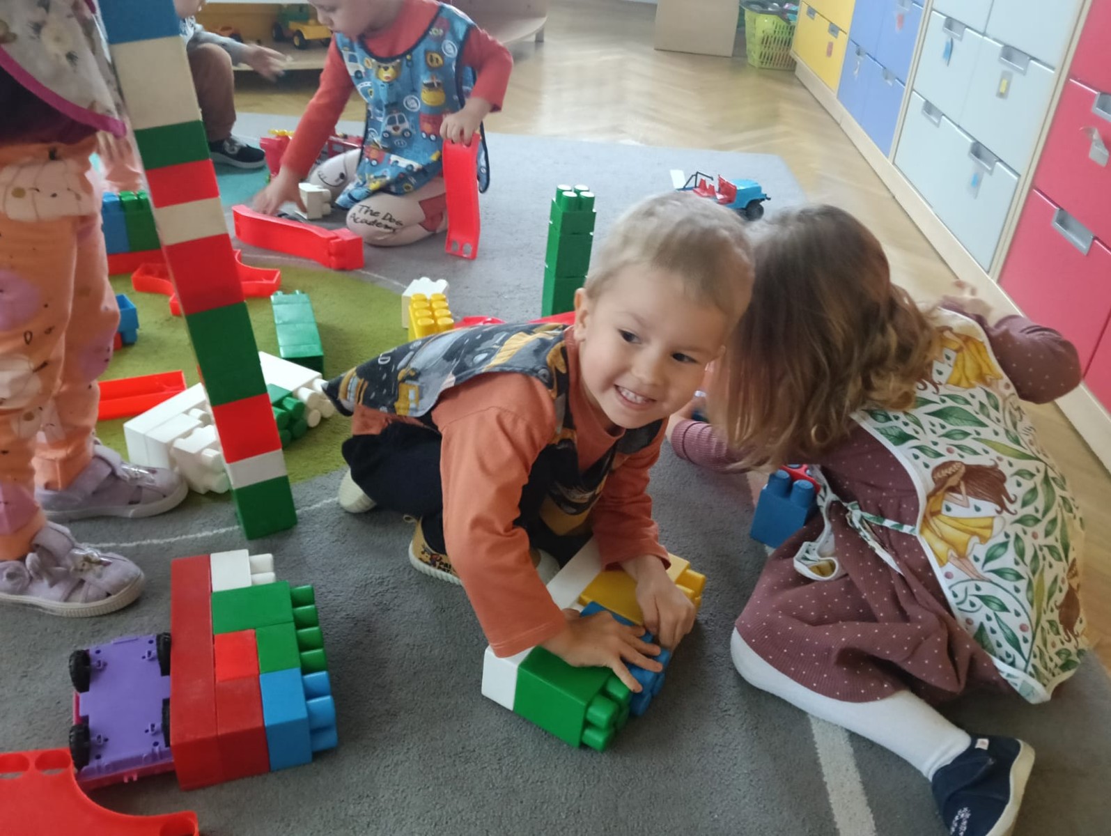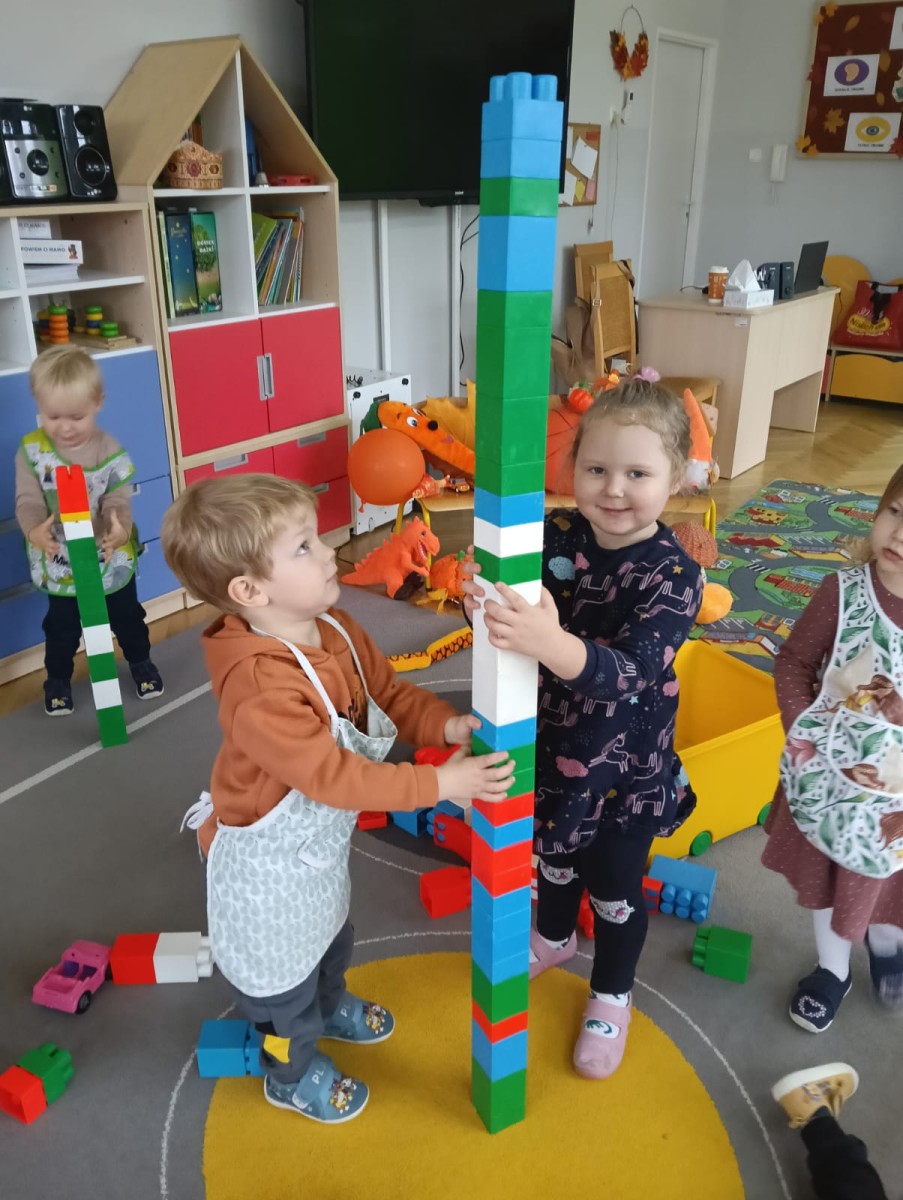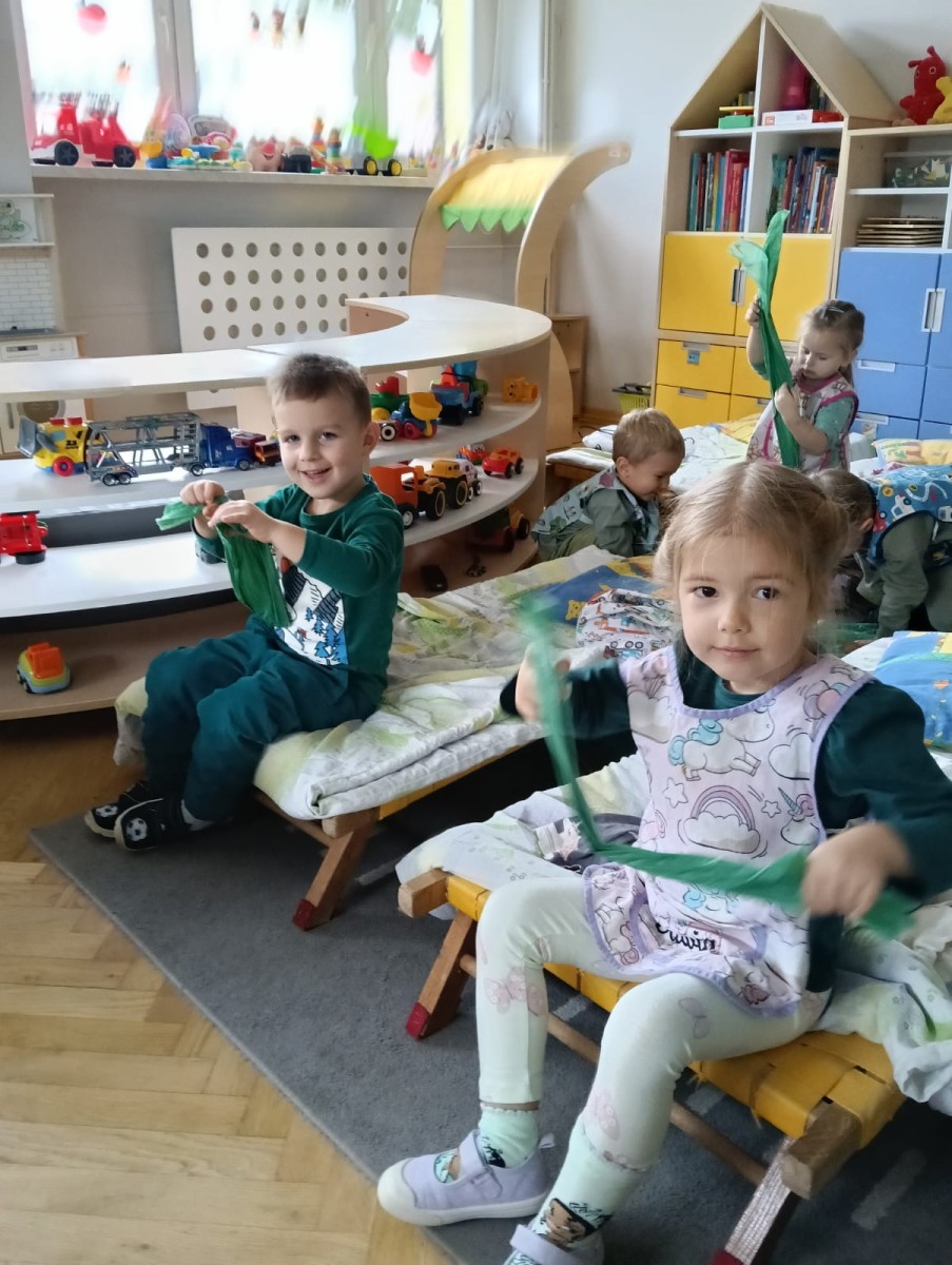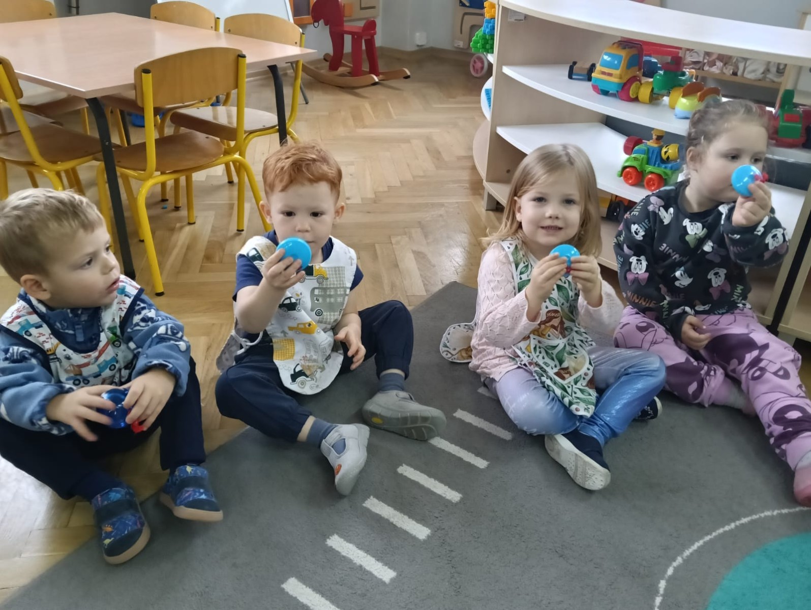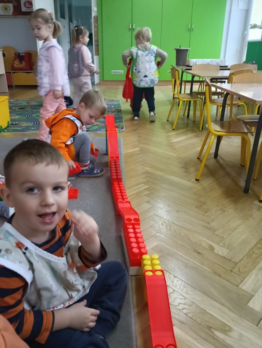 Ten tydzień w naszym przedszkolu był niezwykle kolorowy i intensywny. Krasnale świetnie się spisały i każdego dnia ubierały się w kolor odpowiedni dla danego dnia. W poniedziałek najmłodsze przeczkolaczki porozmawiały o przyjaźni, zrobiły własnoręcznie czerwone biedroneczki owijając kasztany plasteliną i zatańczyły ze świecącymi serduszkami. We wtorek obchodziliśmy dzień wody. Krasnale szukały niebieskiej rybki i kaczuszki, które ukryły się w basenie z kulkami, a także uczestniczyły w zabawach rytmicznych z wykorzystaniem rurek. Pomarańczowa środa była dla nas dniem ruchu. Dzieci uczestniczyły w wielu zabawach z wykorzystaniem pachołków. Dzięki czwartkowym zajęciom dzieci zapamiętały, że nasza Ziemia sie kręci, a także że trzeba o nią dbać, przede wszystkim nie śmiecić, przy okazji odkryły, że worki na śmieci mogą nam się przydać nawet do zabawy. Żółte zabawy królowały u krasnali w piątek. Był to dzień Słońca i pomimo, że nie ma go zbyt wiele na dworze, to zawitało ono do naszej sali.