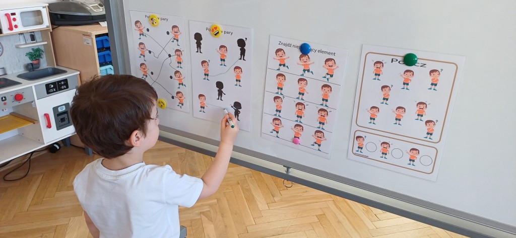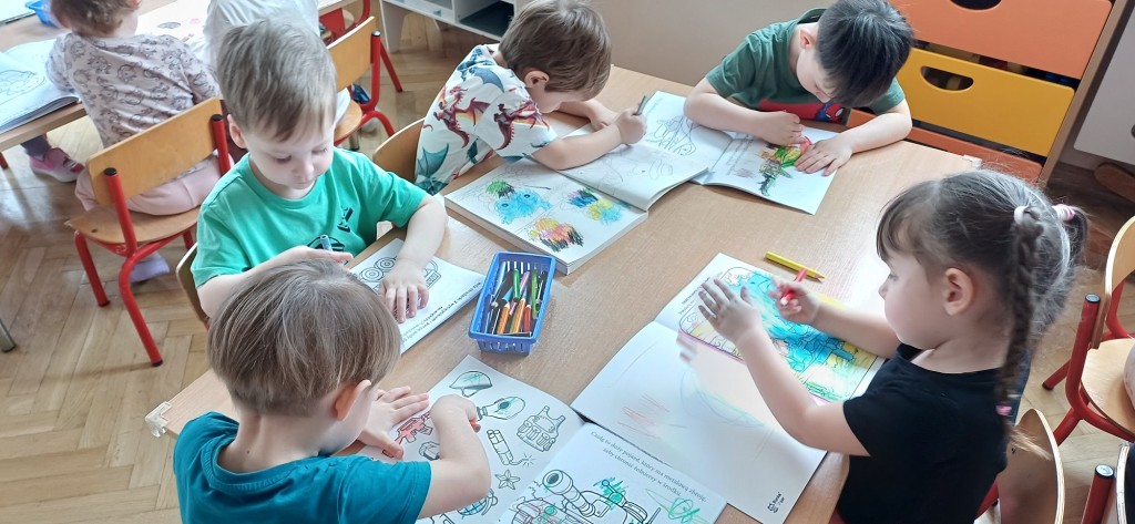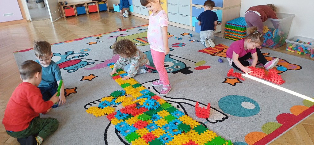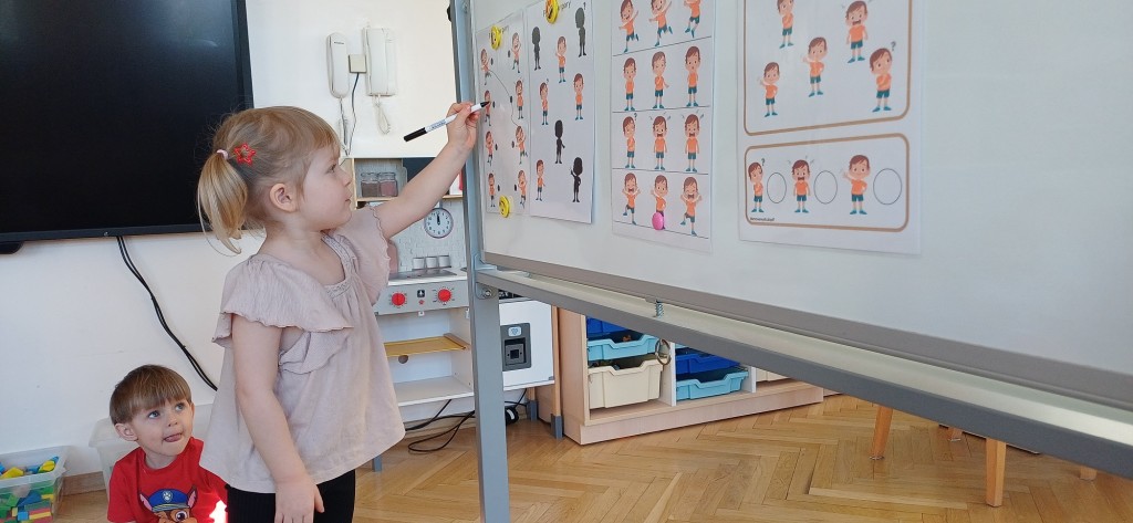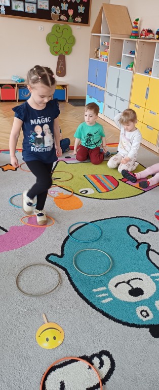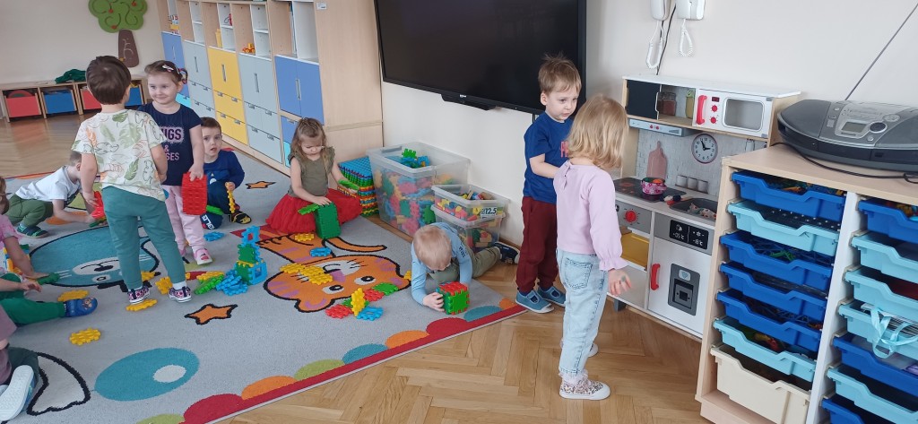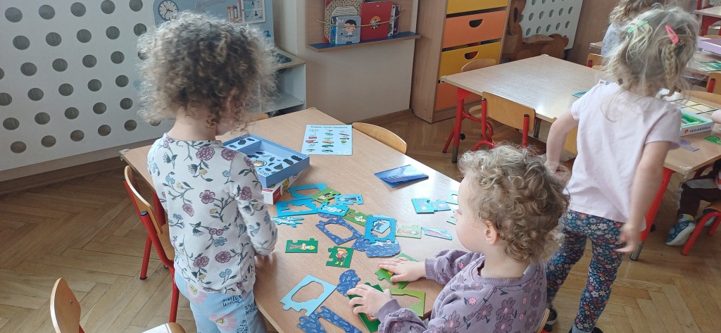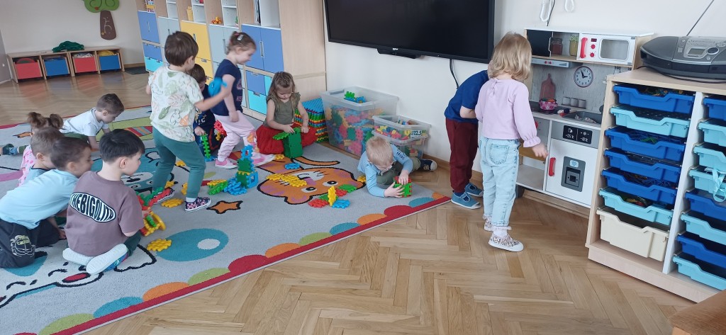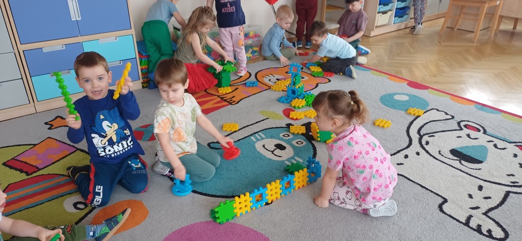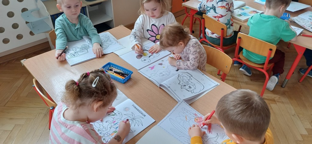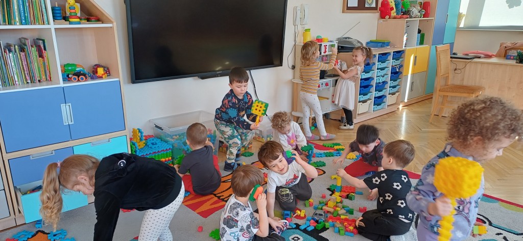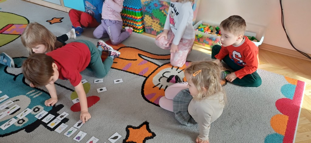 Dzieci z grupy „Smerfy” poznały zwiastuny wiosny oraz wykonały prace plastyczne „Kolorowy tulipan” i „Bocian”. Brały udział w zabawie muzyczno-ruchowej związanej z bocianem. Podczas zajęć rozwijających kompetencje emocjonalno-społeczne rozwiązywały zadania, ćwicząc percepcję wzrokową oraz spostrzegawczość. Przedszkolaki wzięły również udział w powitaniu wiosny – maszerowały ze swoimi kwiatami podczas wiosennego spaceru oraz uczestniczyły w tradycyjnym paleniu Marzanny.