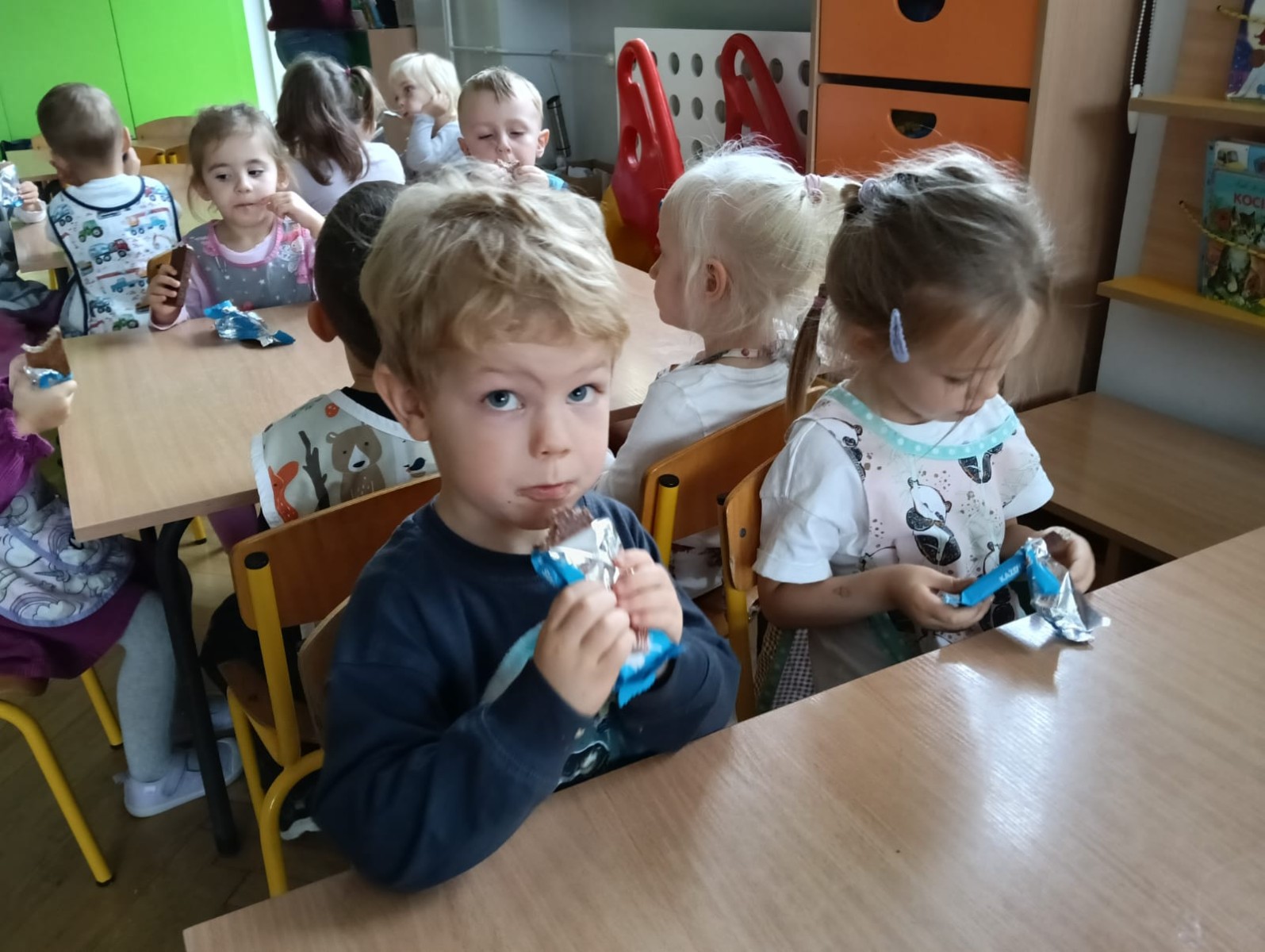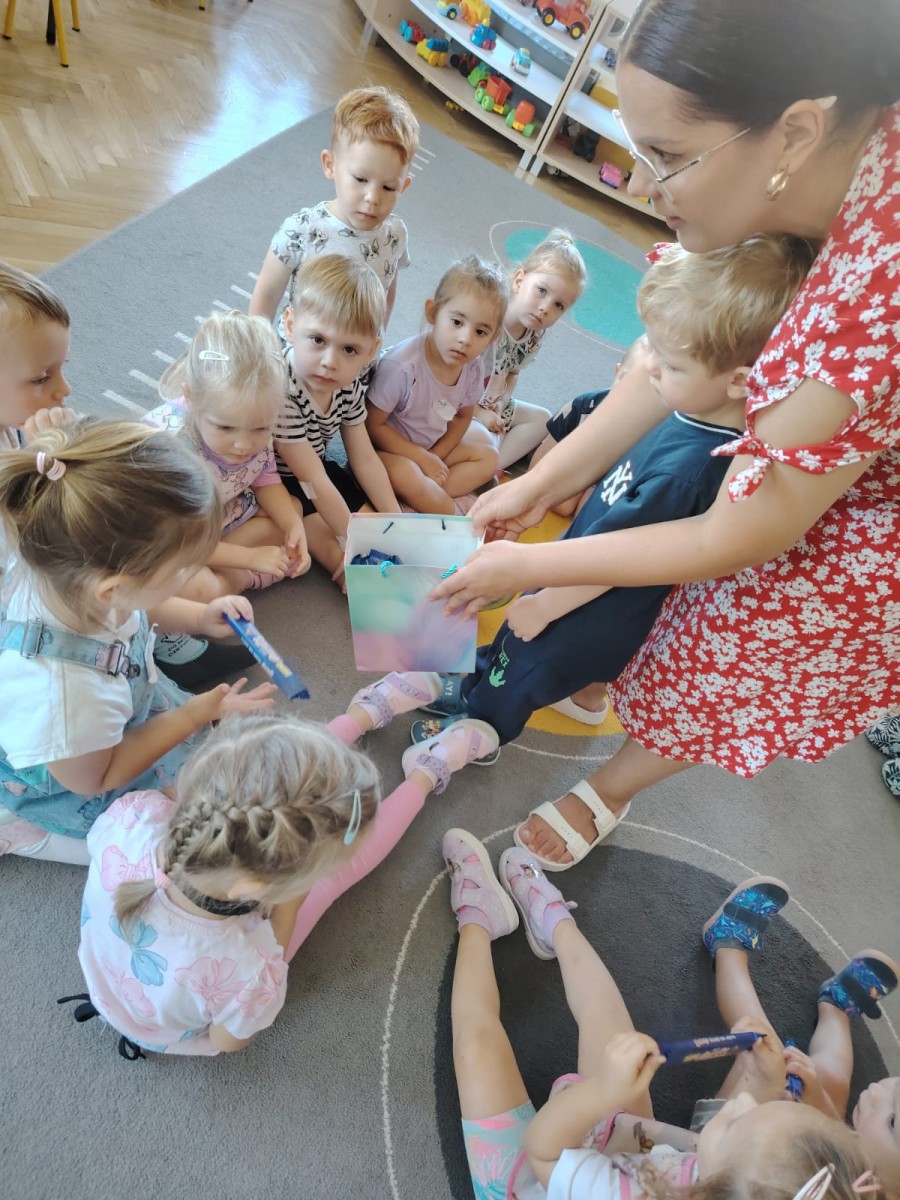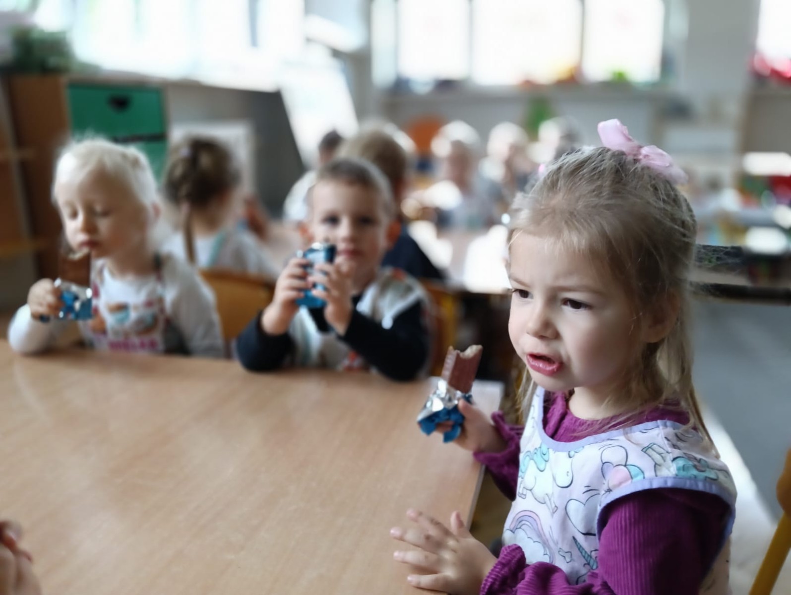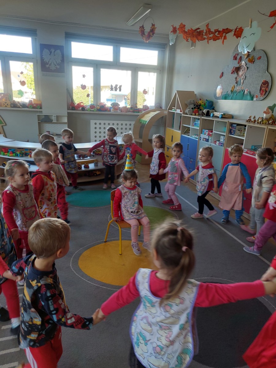 Do grupy Krasnale uczęszczają dzieci w wieku 3 lat, grupa liczy obecnie 25 dzieci.